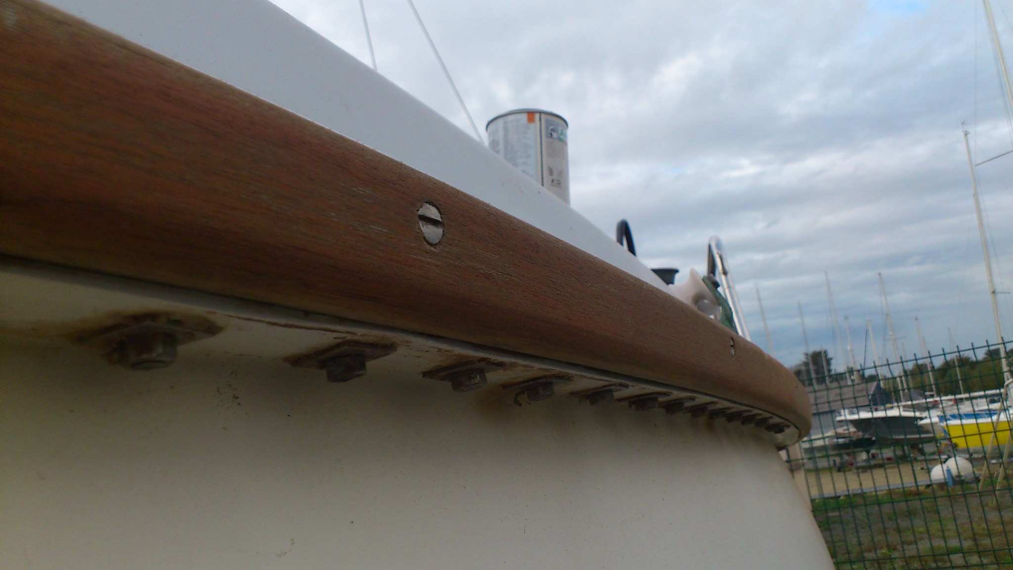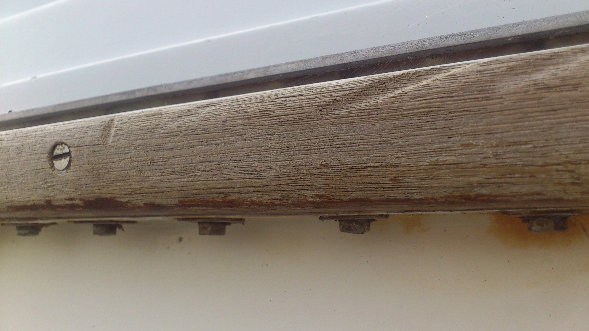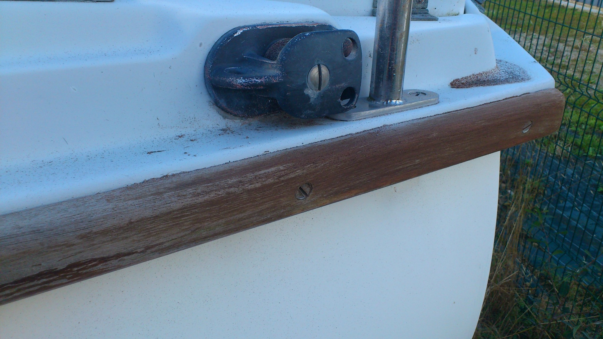 Autre surprise : la vitesse à laquelle le papier de verre s’use, j’avais prévu 3 papiers gros grain, en me disant « c’est que des tasseaux », au bout d’une mètre, mon premier papier de verre ne ponçait plus rien du tout… Et j’ai 14m de listons, plus les mains courantes, plus la porte à poncer… Je suis du coup allé acheter du papier au gars du chantier : 0.40€ le disque.