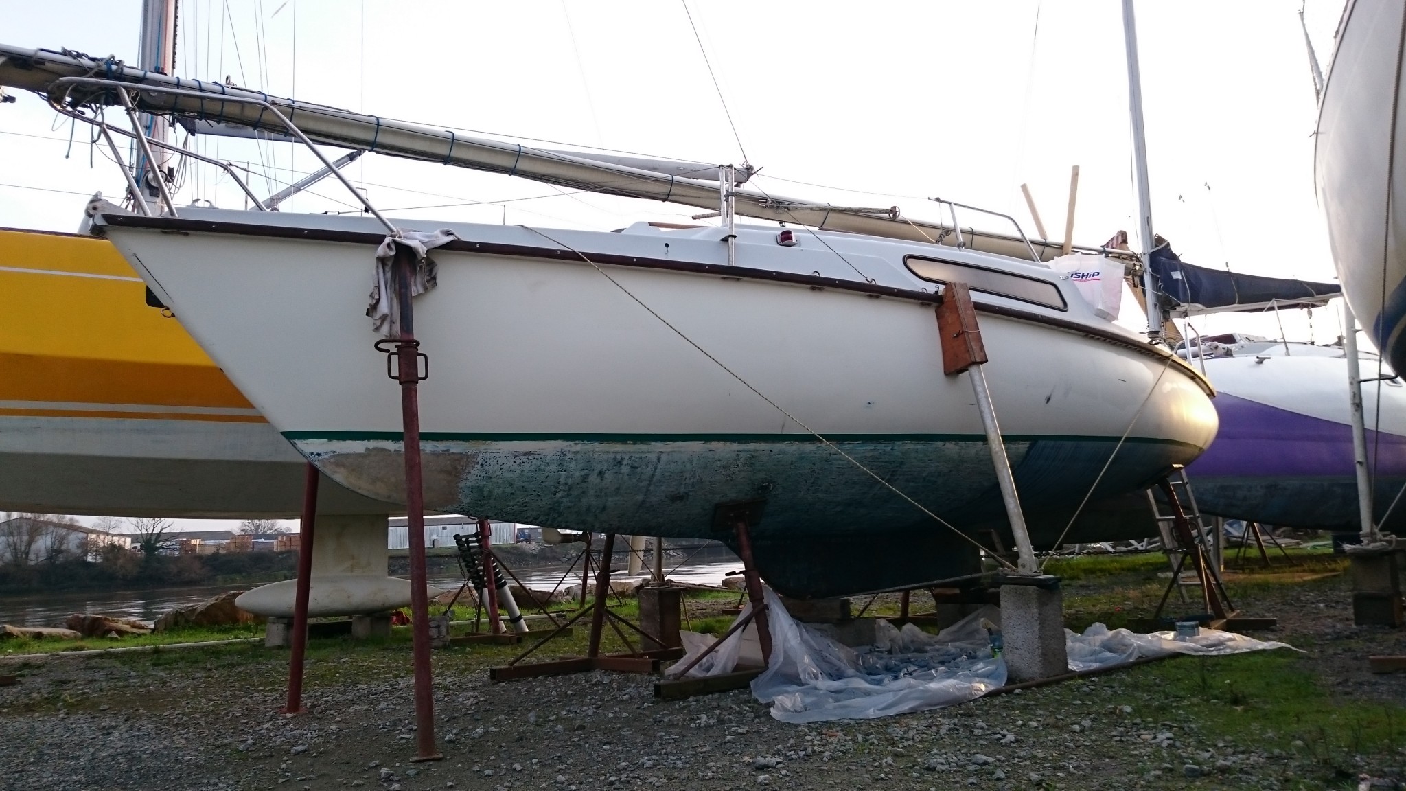 Une après midi donc plié en quatre ou cinq ou six. Courte rencontre aussi avec un voisin d’emplacement, homme très cool et tout en perspicacité : « Alors, on gratte ? ». Et l’occasion de discuter du bateau avec les gars du chantier qui confirment mes intentions sur les suites à donner.