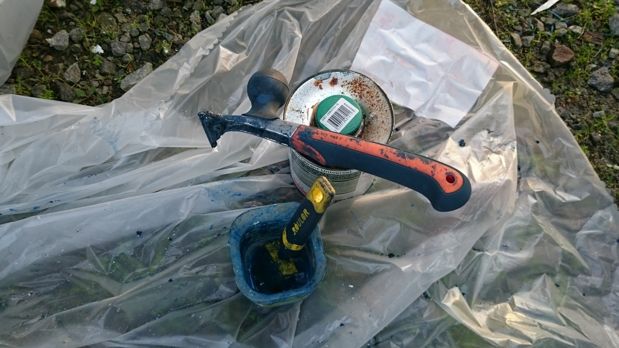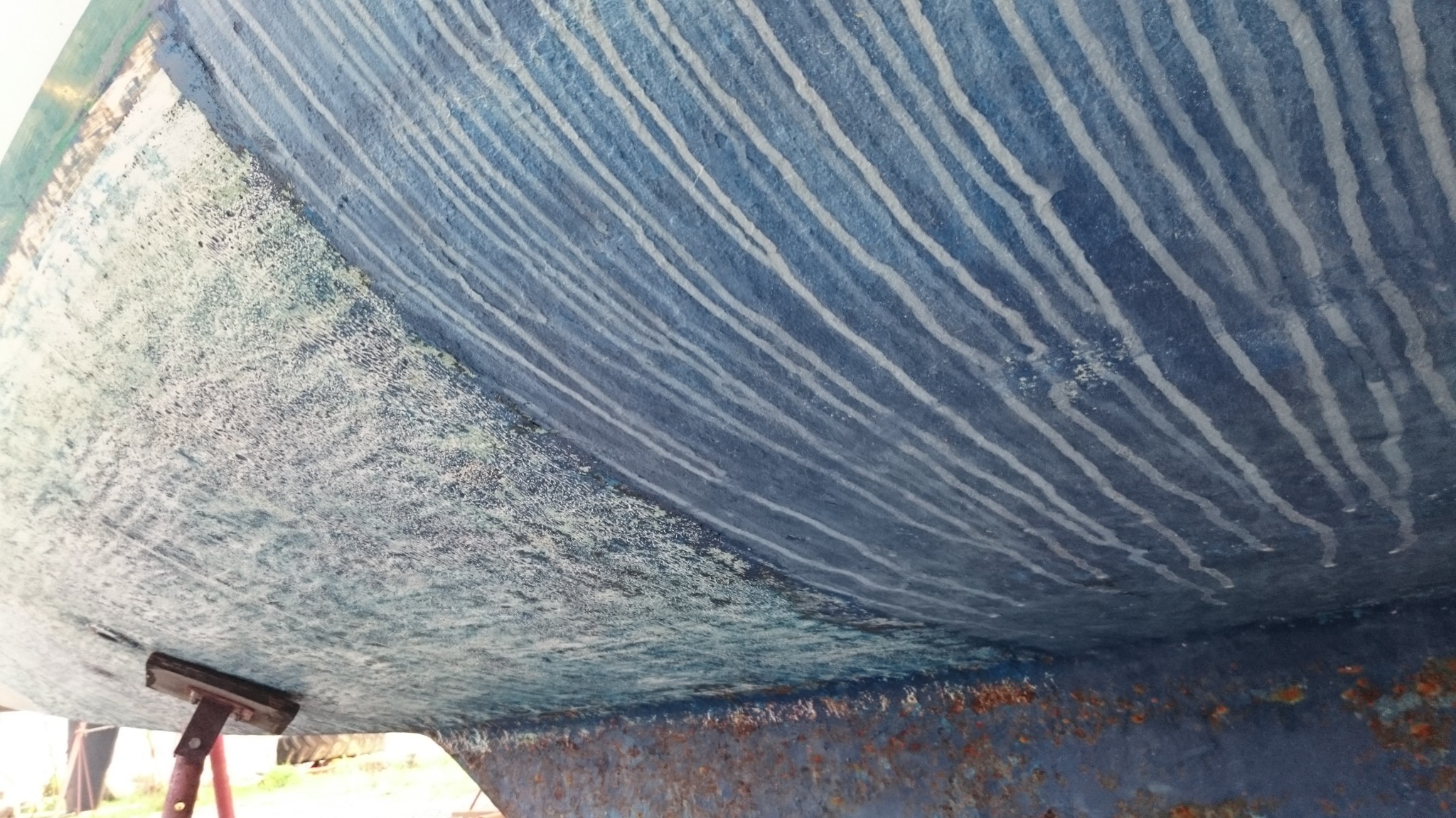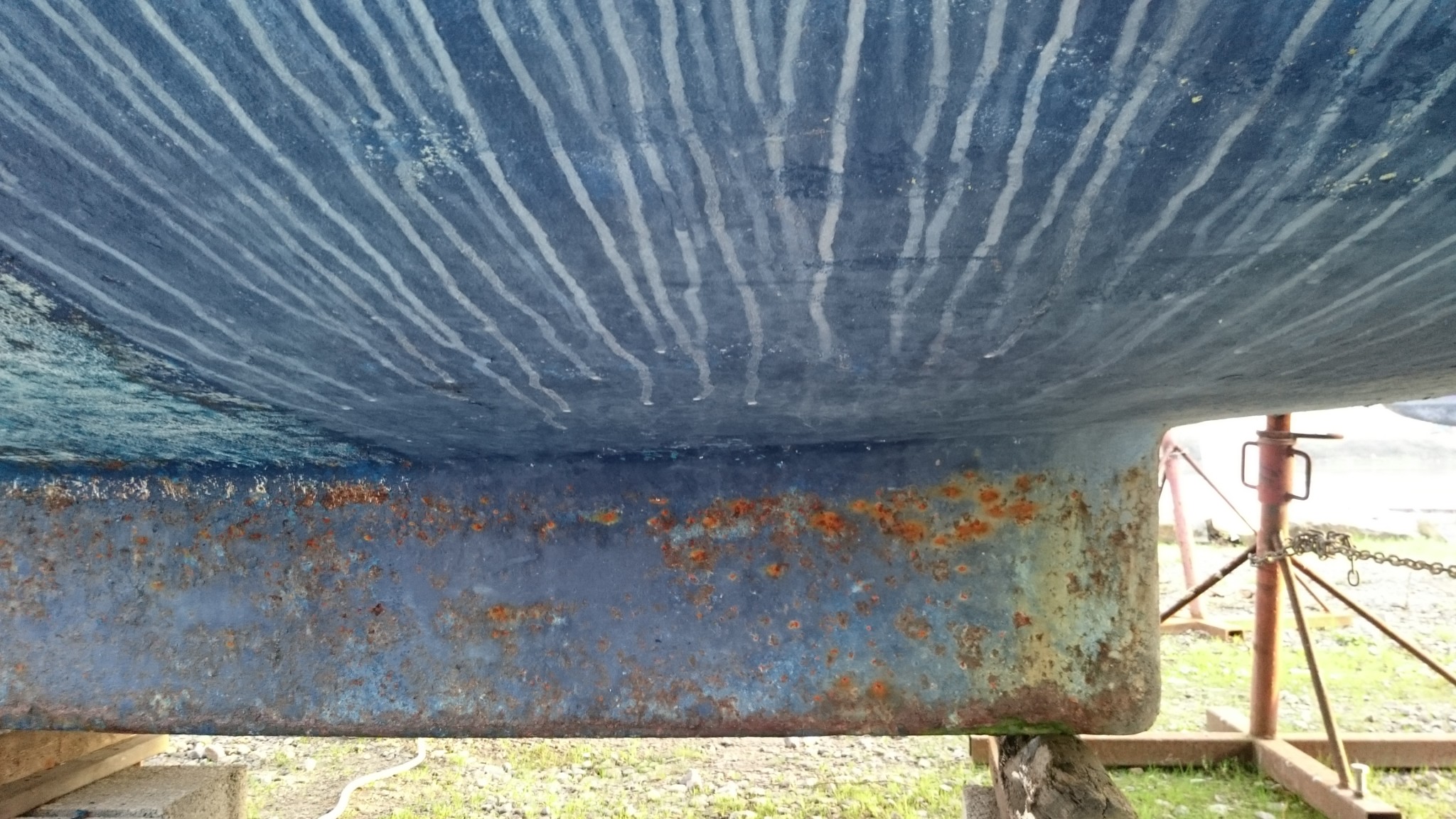 Je m’en doutais, je l’avais lu, gratter à ce niveau est beaucoup moins simple qu’à l’avant du bateau, je ne me doutais juste pas d’à quel point c’était pénible. Quant au saumon, j’ai essayé avec le grattoir, mais c’est tellement pas plat qu’il n’accroche à peu près nulle part. J’essaierai avec une brosse circulaire sans doute pour lui.