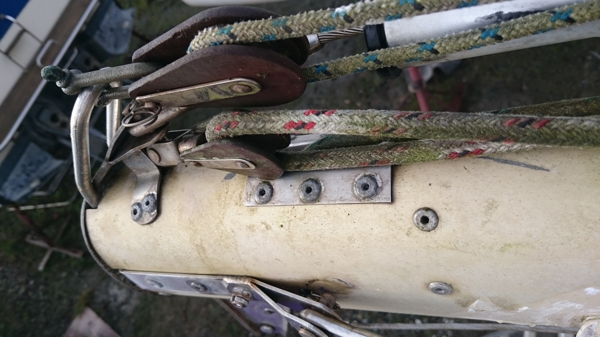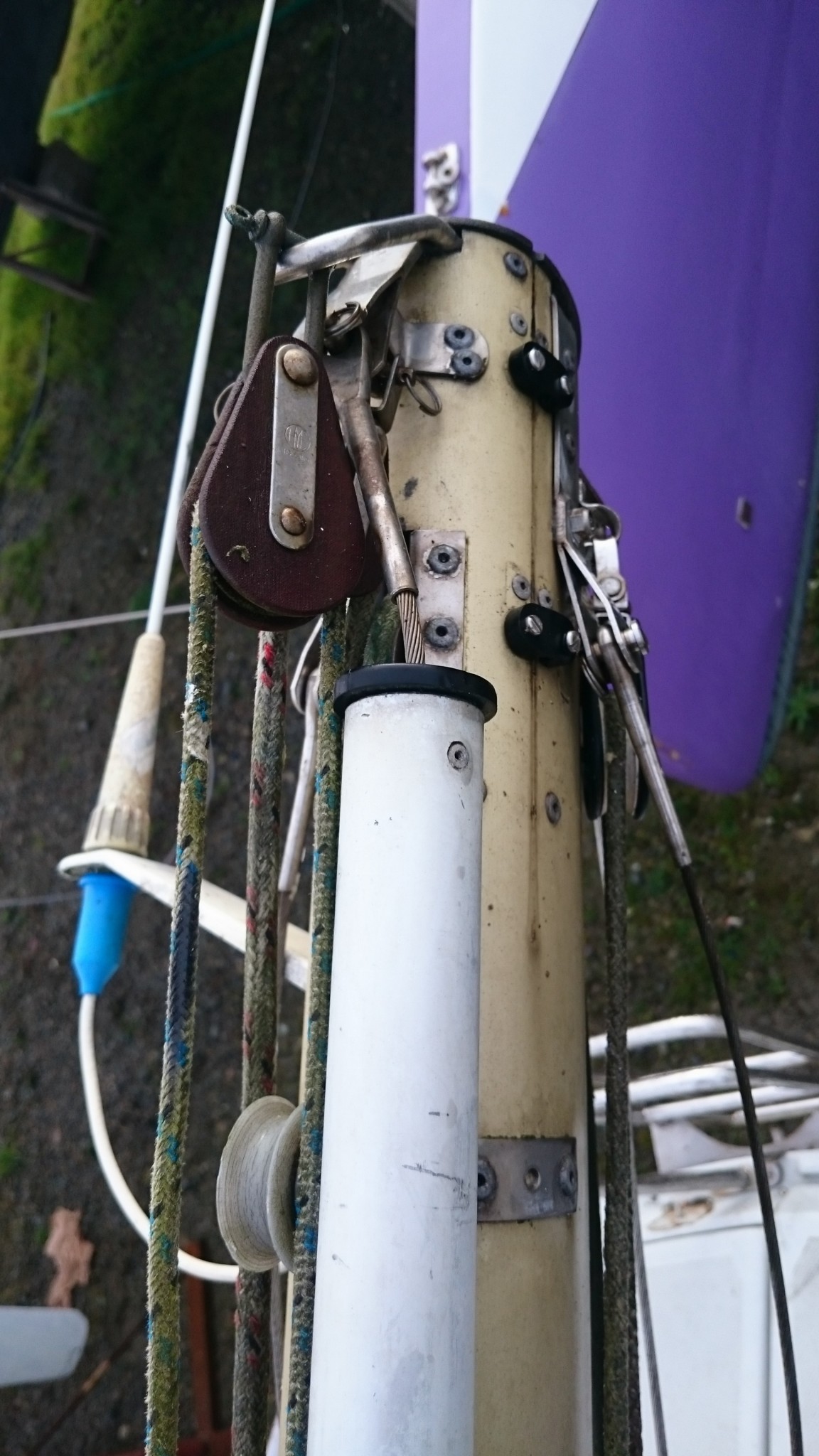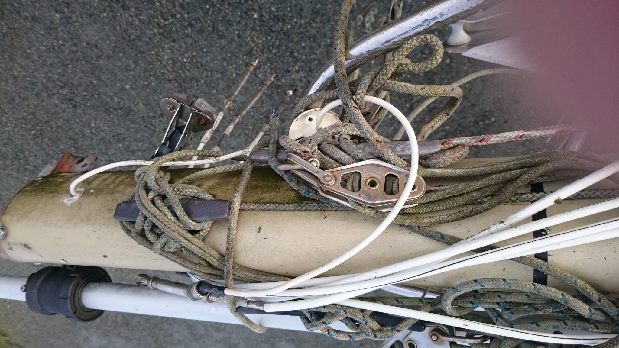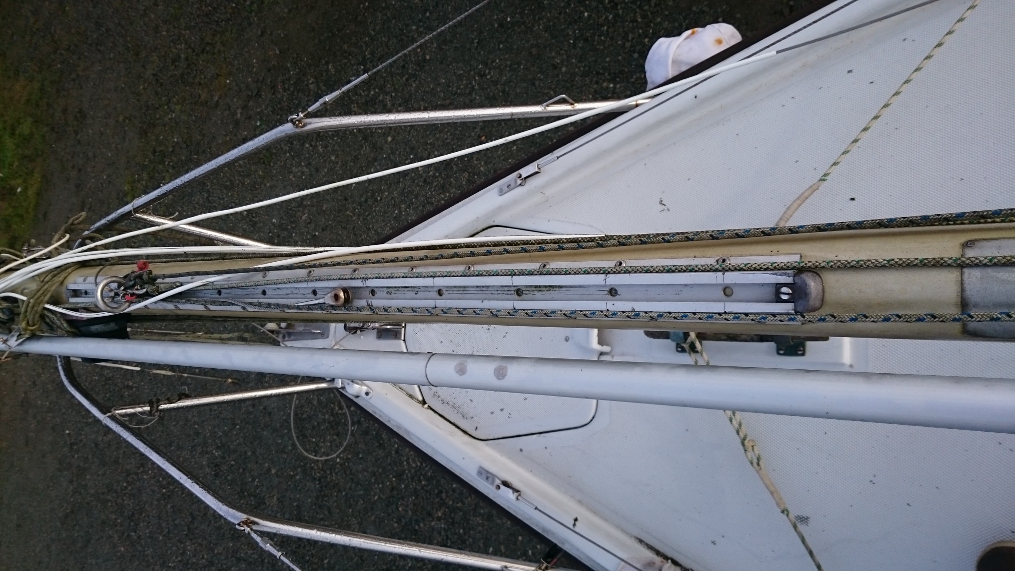 J’en ai aussi profité pour cartographier l’ensemble du mat, il me manquait toujours une photo quand je cherchais un truc à la maison le concernant, je pense que cette fois ci, j’ai des photos de tout (si ça peut servir, je les publie ici). Et j’ai aussi trouvé sur EdelVoilier un plan du mât super cool mais qui ressemble pas totalement au mien.