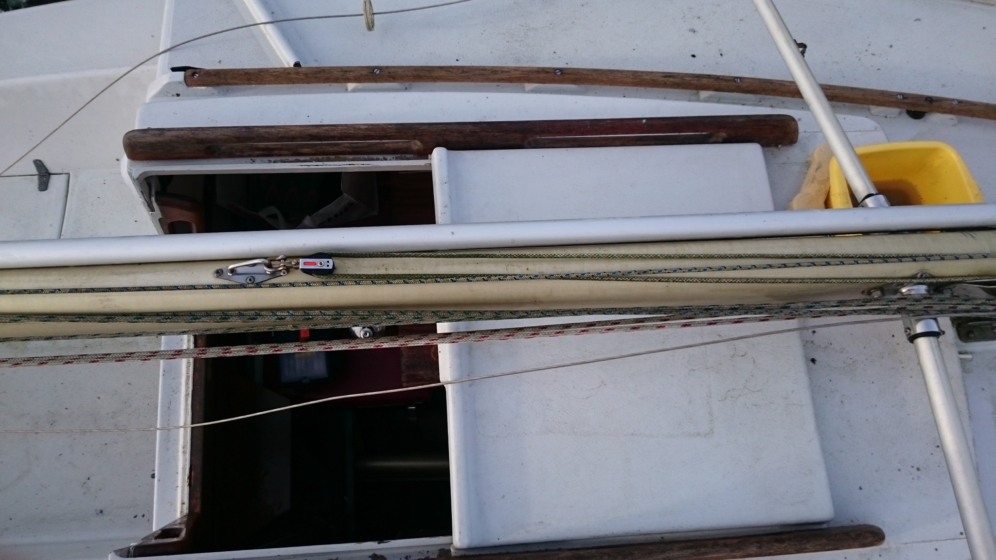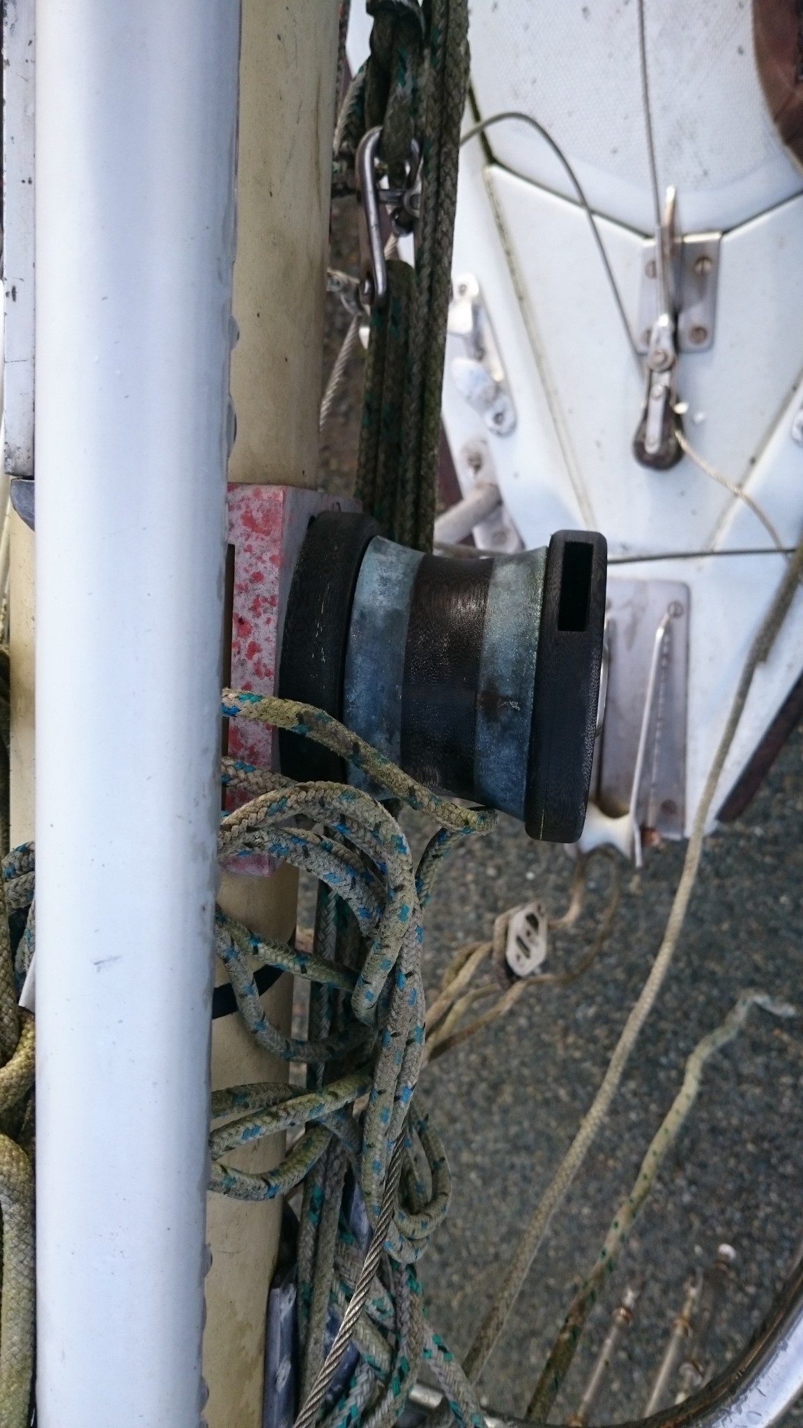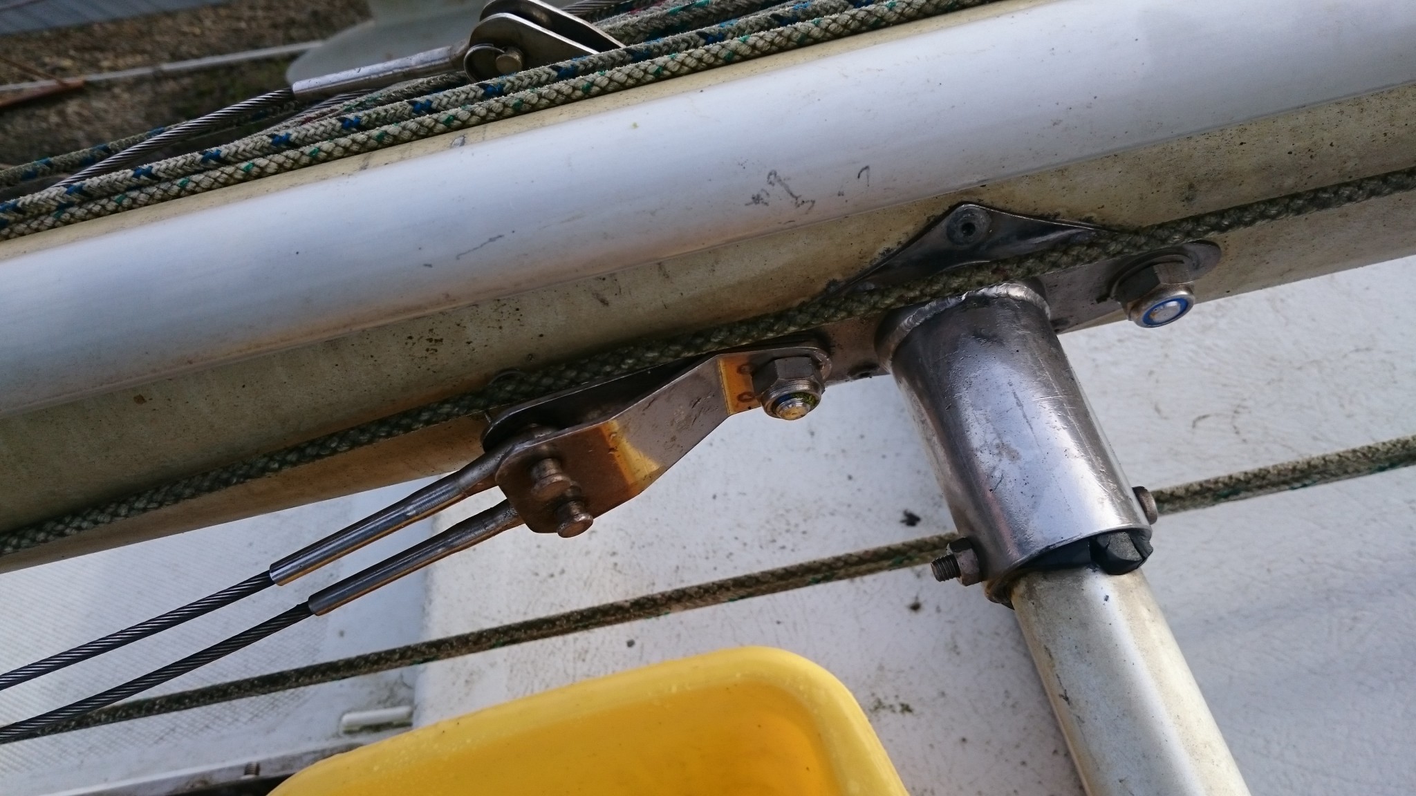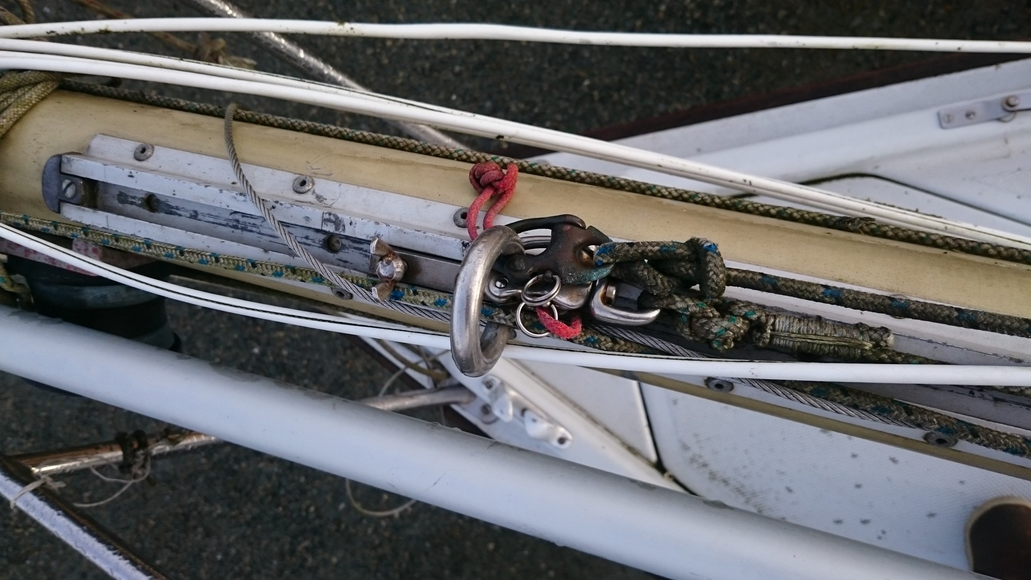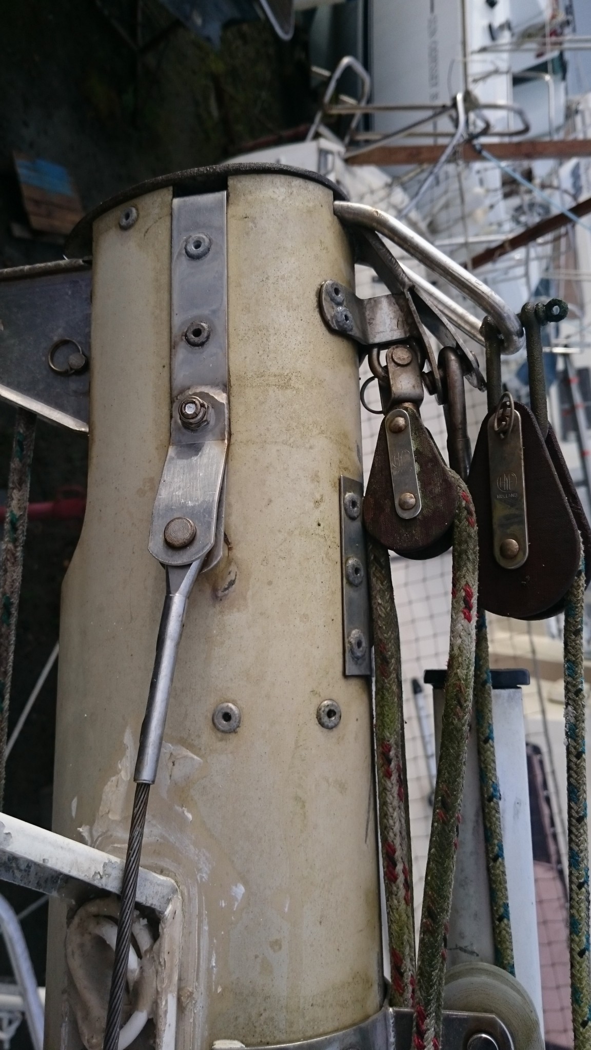J’en ai aussi profité pour cartographier l’ensemble du mat, il me manquait toujours une photo quand je cherchais un truc à la maison le concernant, je pense que cette fois ci, j’ai des photos de tout (si ça peut servir, je les publie ici). Et j’ai aussi trouvé sur EdelVoilier un plan du mât super cool mais qui ressemble pas totalement au mien.