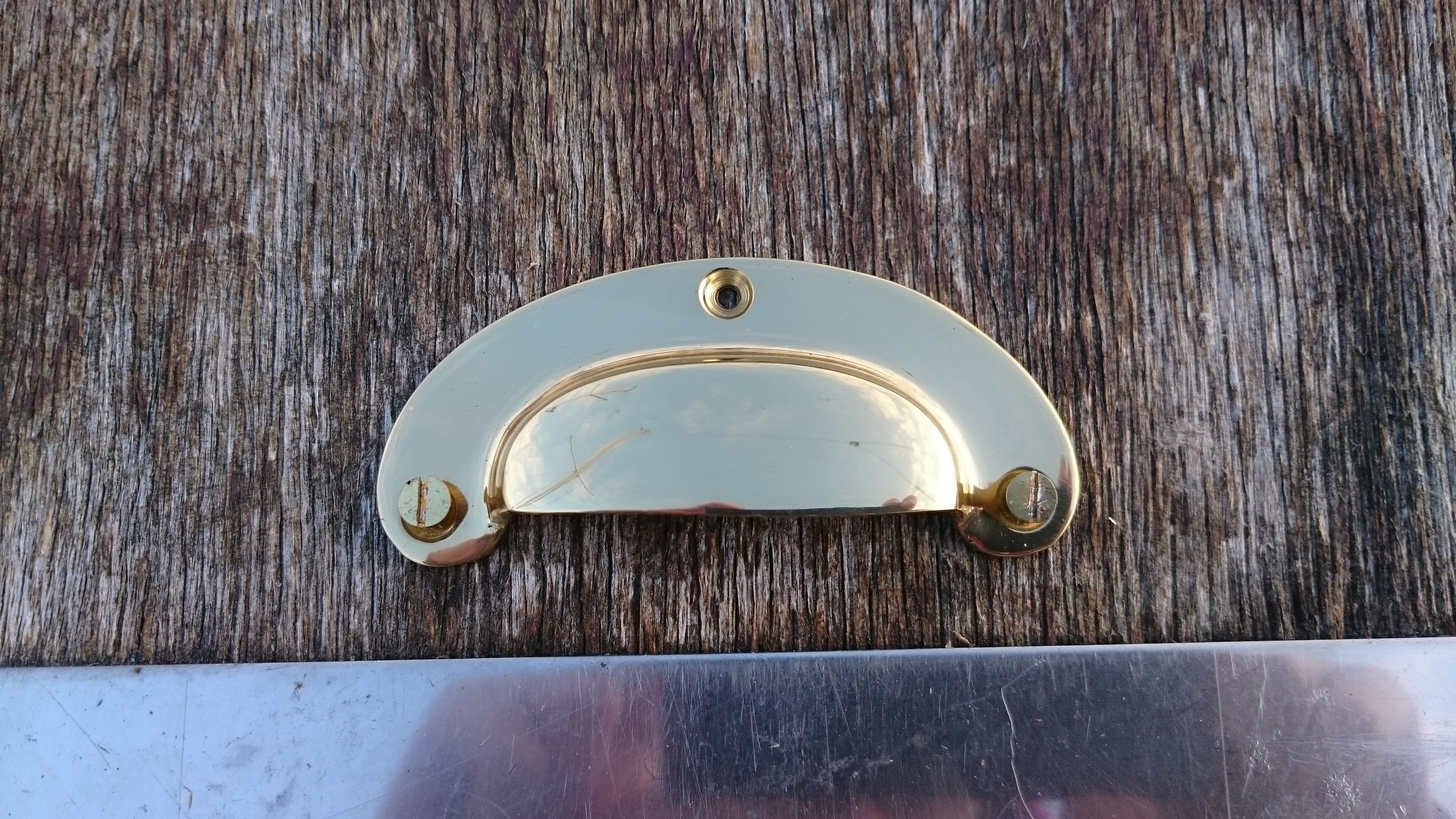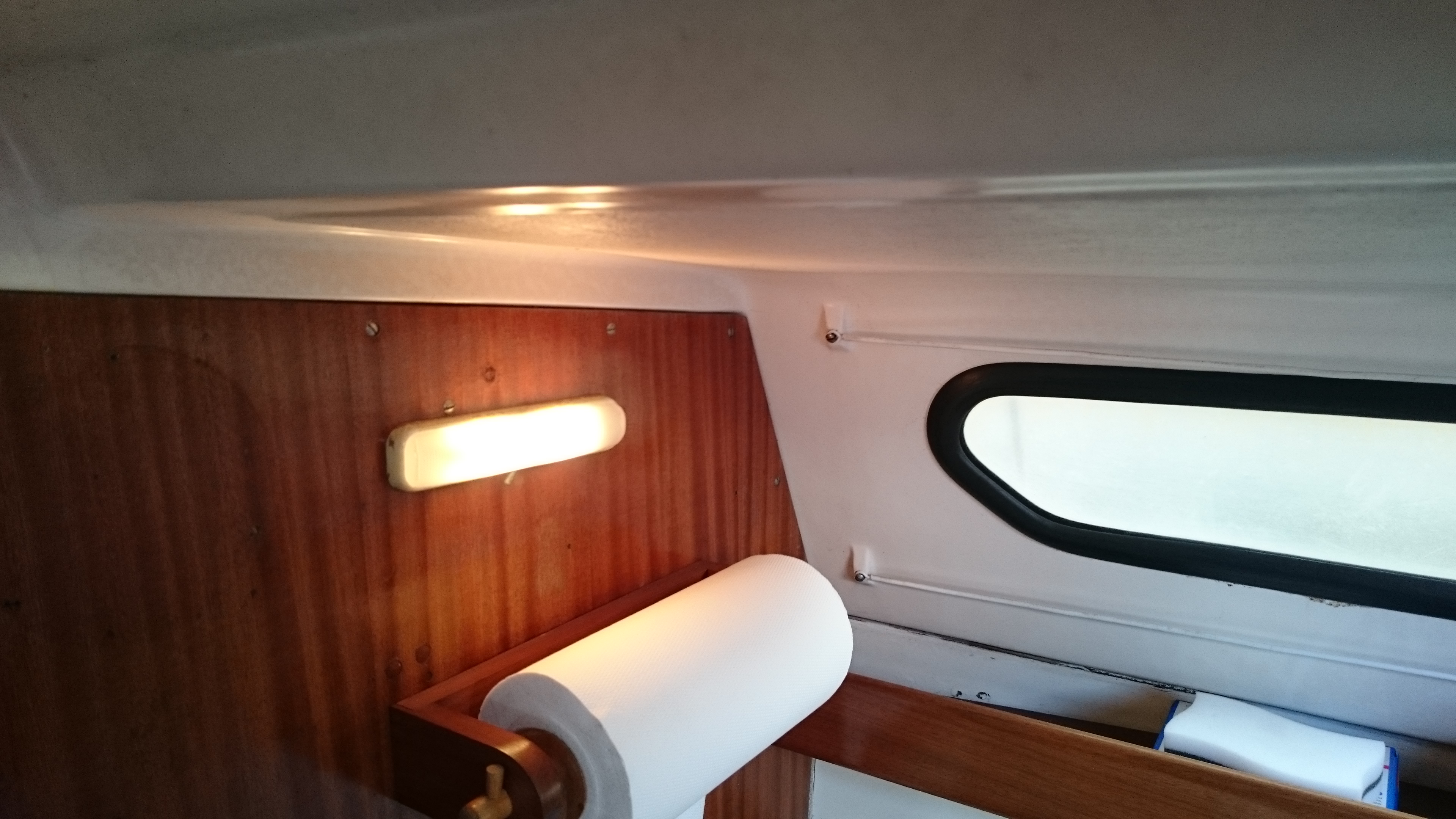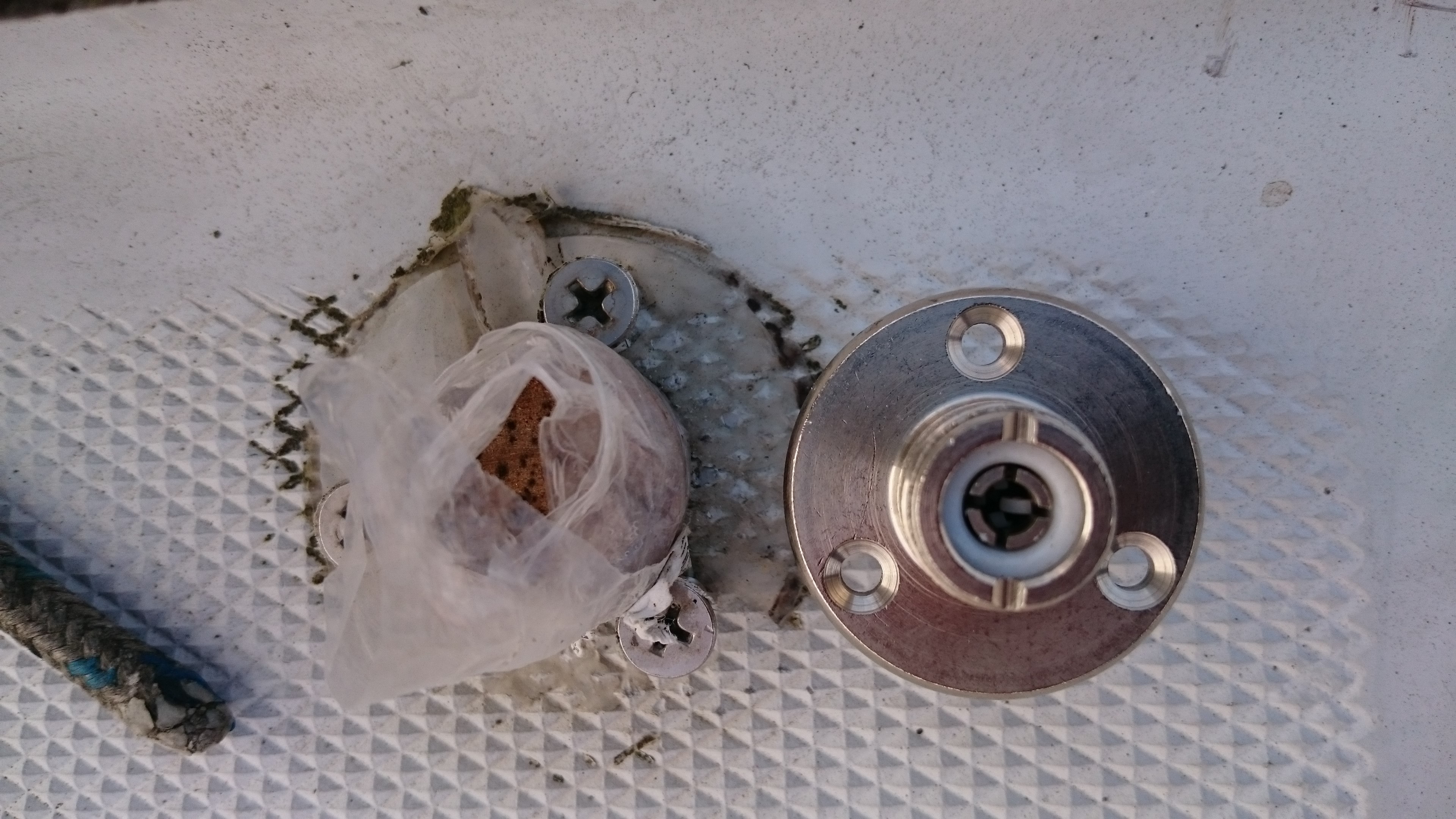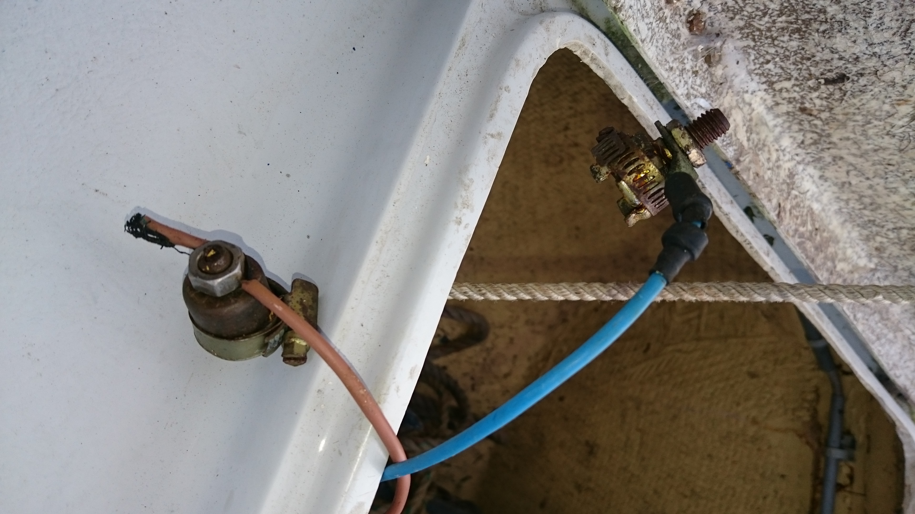 Bon faudra quand même changer les cosses, parce que bon, ça tient en place grace à Newton. Et puis, un passe-pont pour le cable VHF, bien plus petit que celui d’avant, je pense qu’il va falloir faire un peu de rebouchage, et aussi une poignée pour la porte qui ne venait qu’avec l’aide d’un tournevis les jours de pluie.