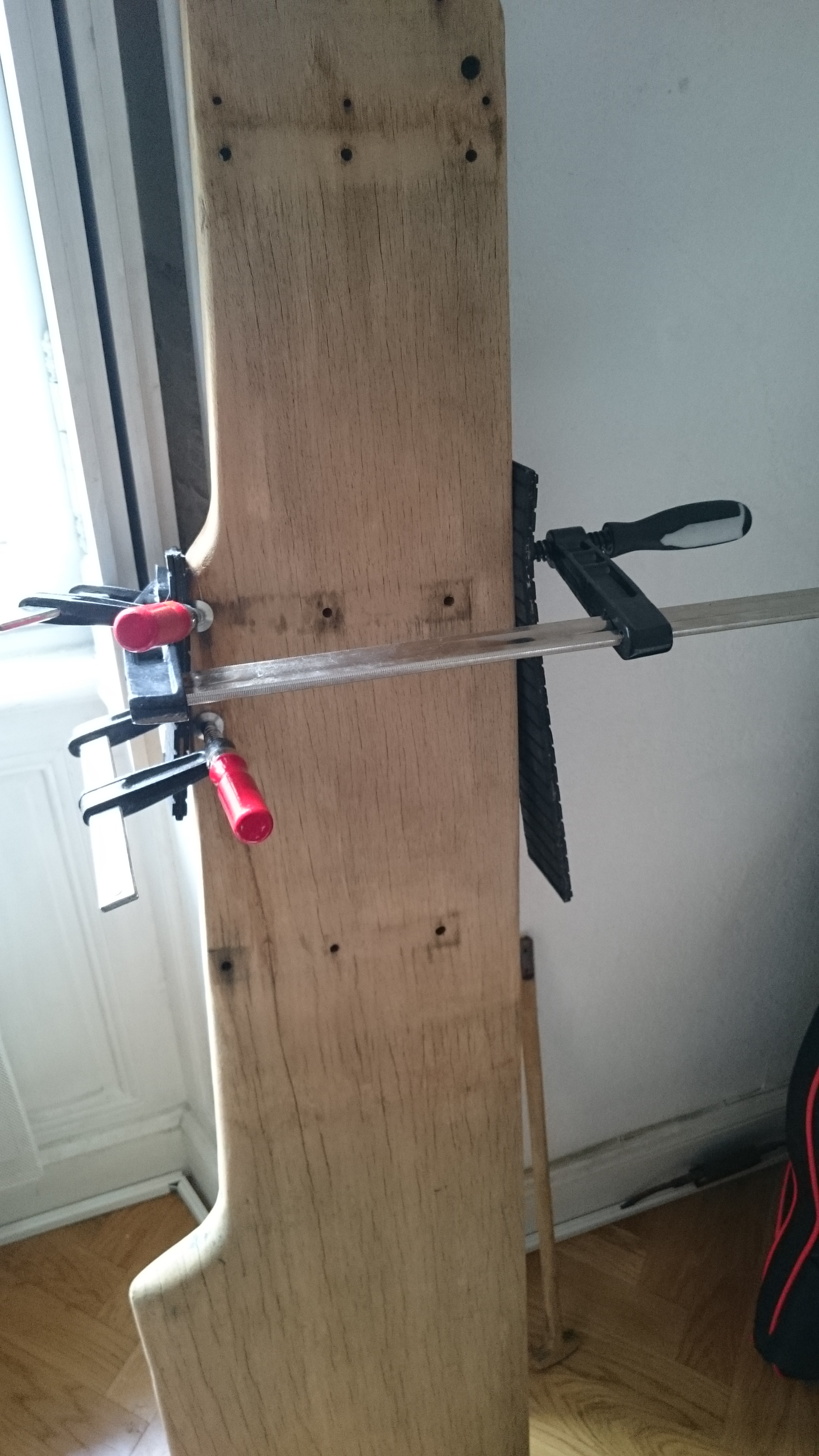 Hier j’ai ramené les voiles à la maison, mais ça fera très certainement l’objet d’un autre billet. J’ai aussi recollé cette semaine la félure dans le safran, ça sèche et je me prépare à reboucher les fissures à la pâte à bois.