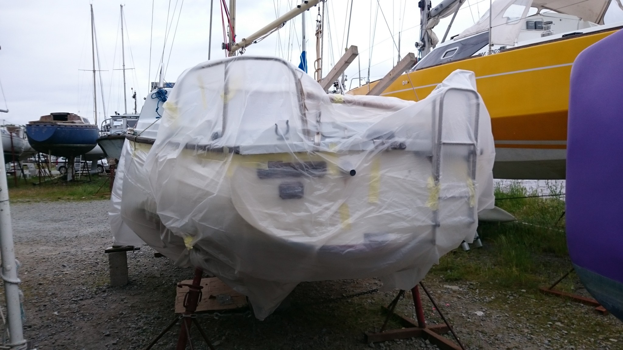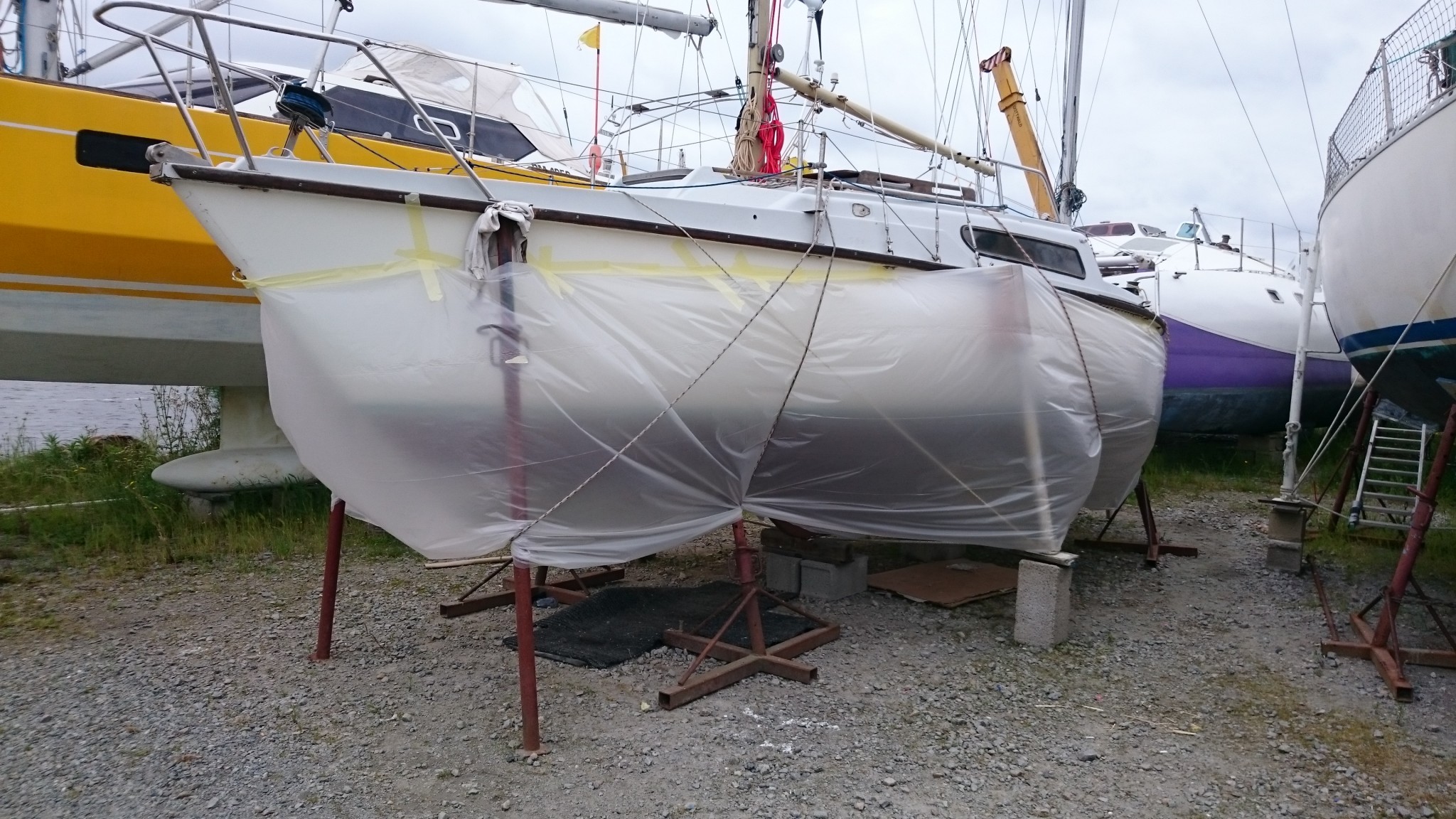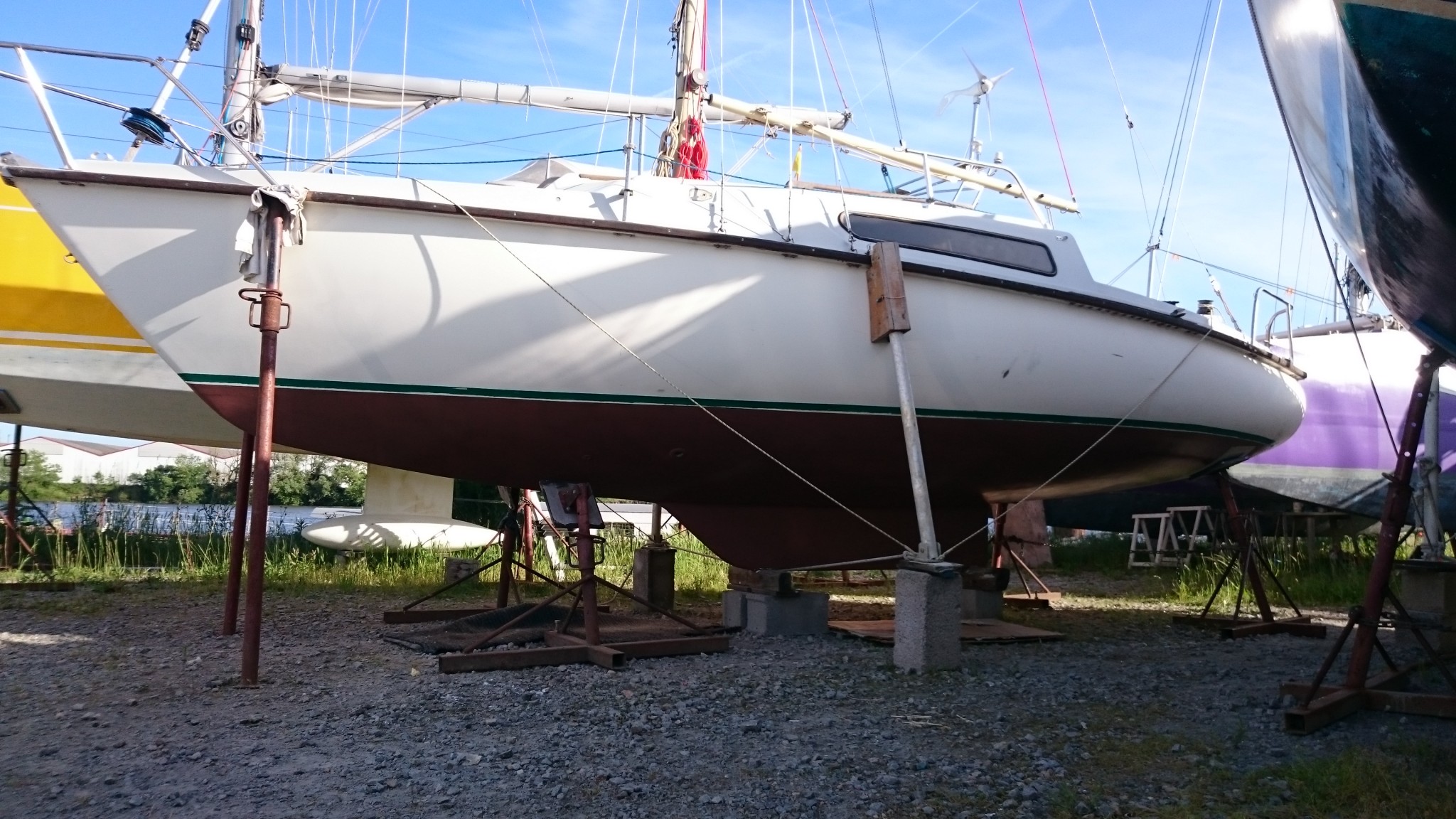 Le lundi, la météo s’annonce finalement pas si clémente avec un peu de pluie en soirée : aller-retour express le midi pour mettre une belle jupe au bateau en espérant que le coppercoat sèchera correctement malgré les températures pas si hautes et un peu plus d’humidité que prévu. Bon, j’aurai fait ce qu’il fallait.