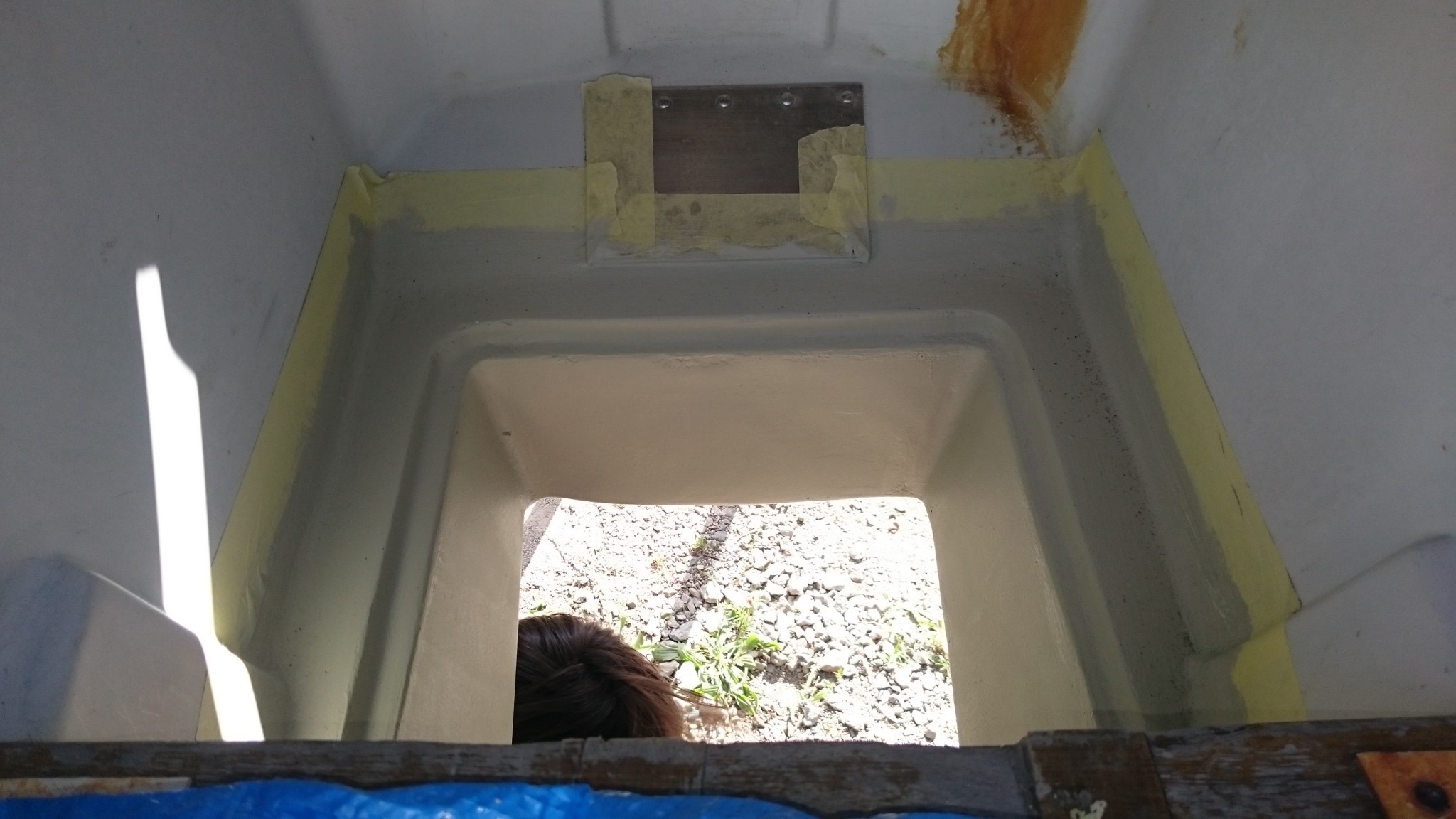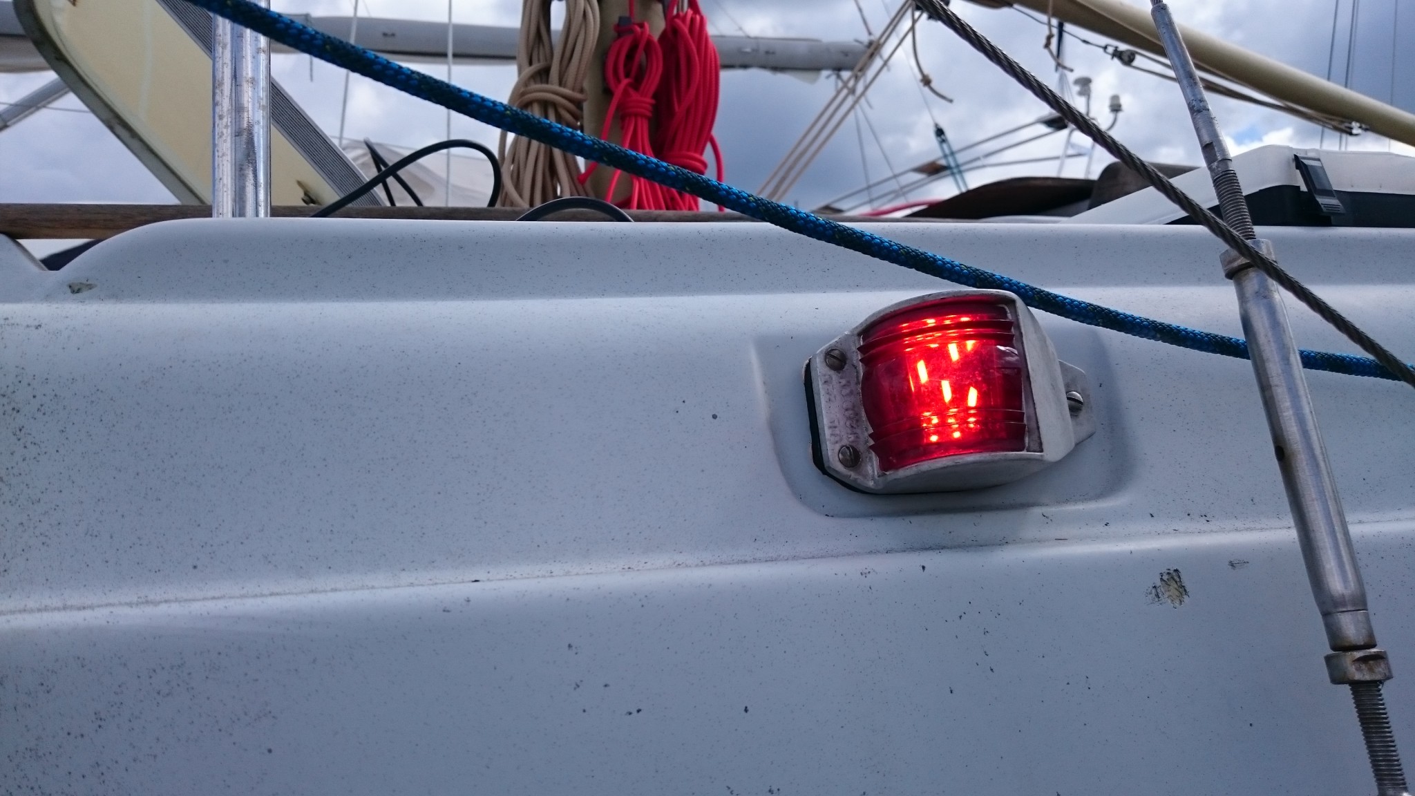 Je me demandais le samedi si le chantier avait changé les bers de place, et c’est le cas ! Super ! On va pouvoir traiter ces petites zones et demander un grutage pour début juin. Aujourd’hui donc on se prépare à ça : un peu de ponçage, mais du ponçage vraiment pas simple dans le puits de moteur que j’avais gardé pour la fin, c’est plein d’angles et à la cale à poncer je n’ai pas le courage de revenir jusqu’à le fibre partout. Et puis quelques projets annexes dont la repose des feux de nav passés au Led depuis.