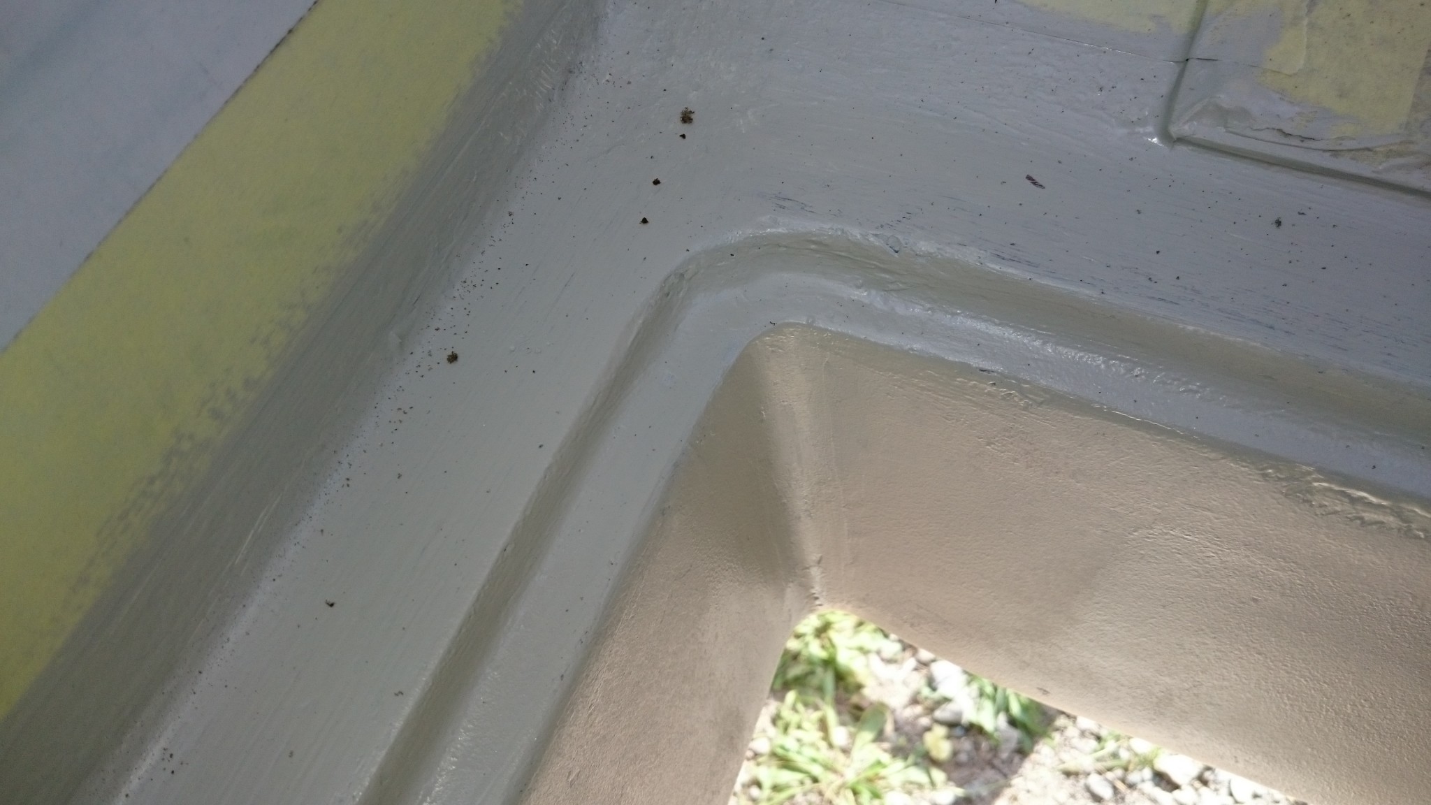 Petit aparté : la jupe avait été fixée avec de la bande de masquage Tesa (la jaune, autant balancer, tellement le produit mérite qu’on le boude), c’est vraiment un produit moisi, qui s’arrache de façon irrégulière, et laisse volontiers des paquets de colle tout du long. J’avais pris de la bande de masquage 3M pour le début des travaux, et bien m’en a pris, c’est infiniment meilleur, ne laisse pas de trace, se découpe proprement et ne se déchire pas comme ça.