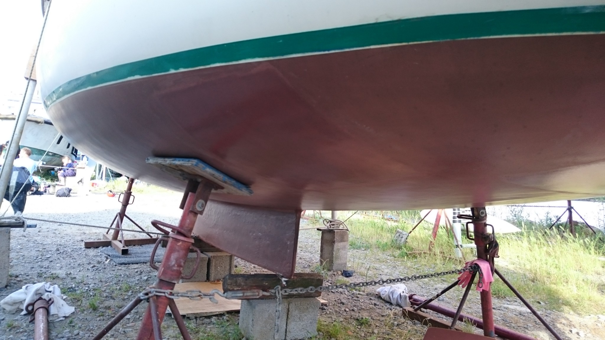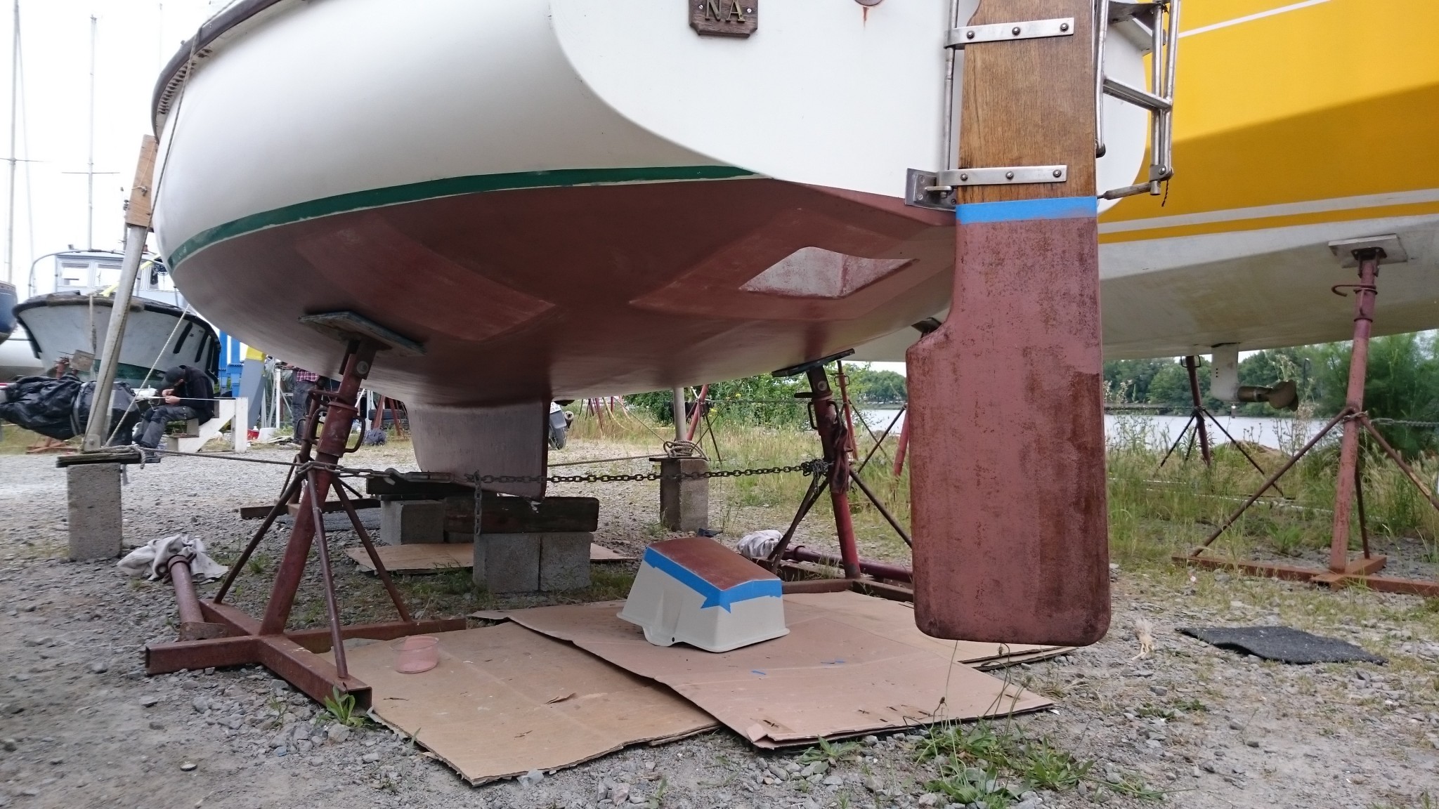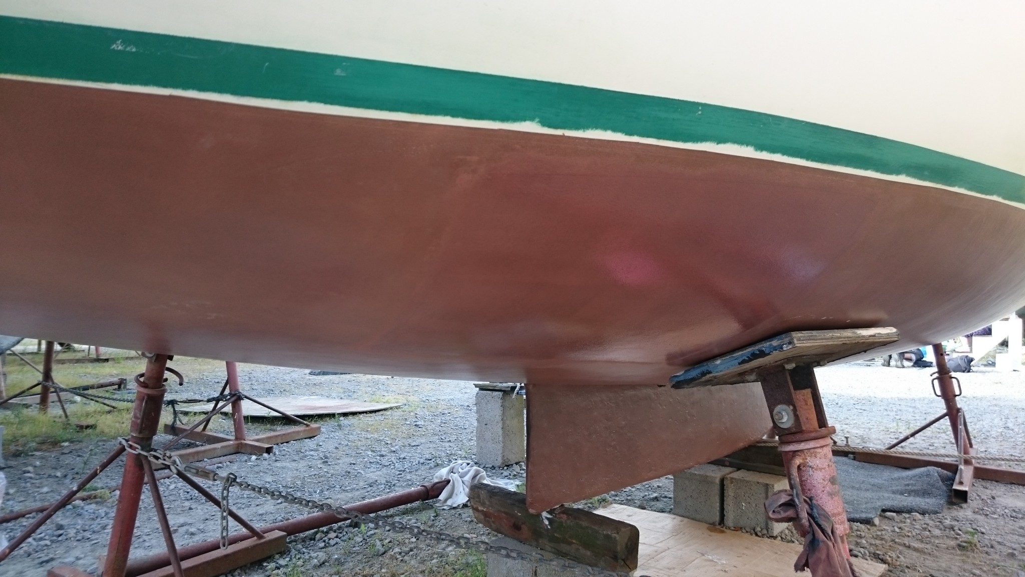 Le samedi, beau temps, je m’occupe de passer le coppercoat sur les quelques zones qui en étaient encore dépourvues.