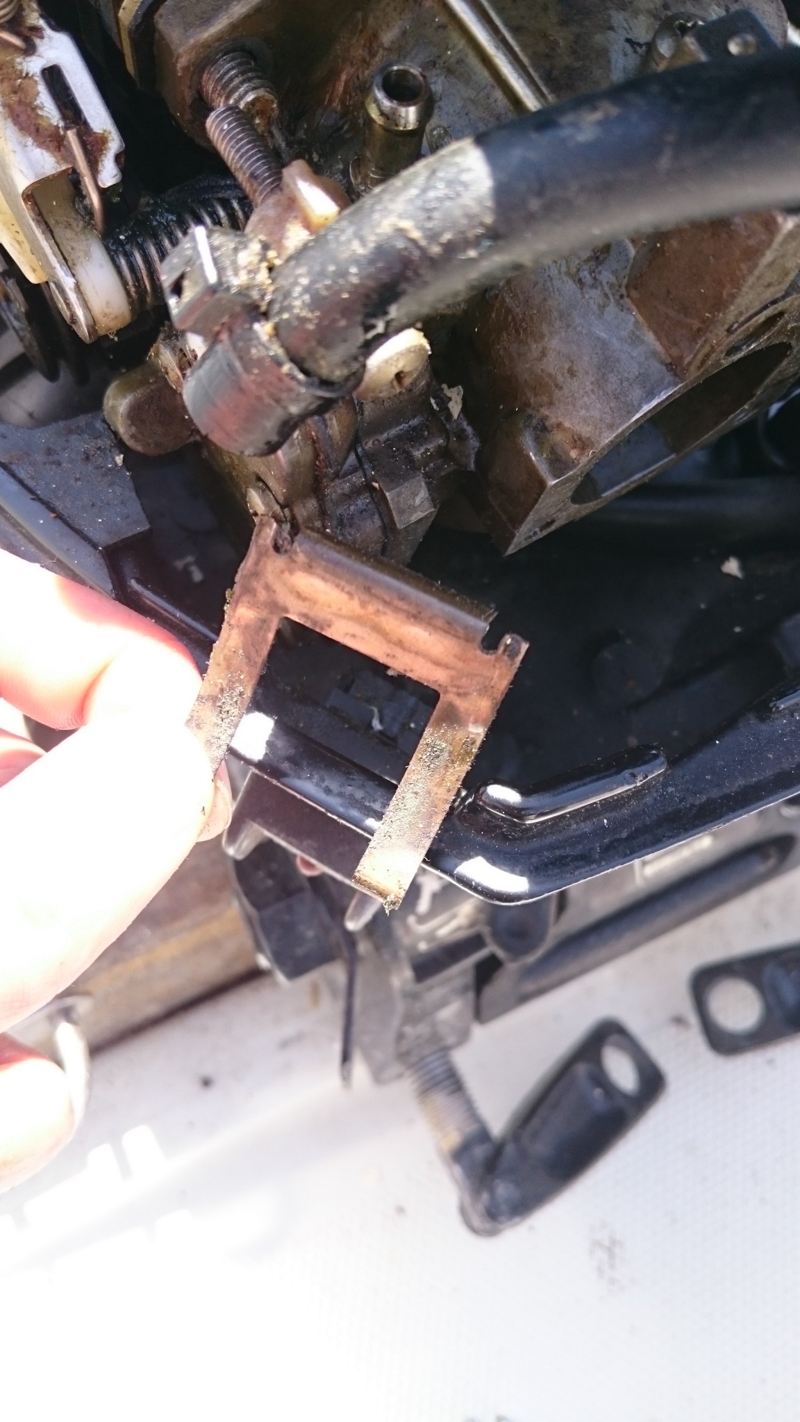 Manque de pot, pas de réseau sur le port, mais quelques souvenirs de ce que montrait la vidéo. Après quelques bonnes prises de tête (tout rentre au chausse pied là dedans), j’ai d’un côté le carbu en main et de l’autre le moteur sur sa chaise.