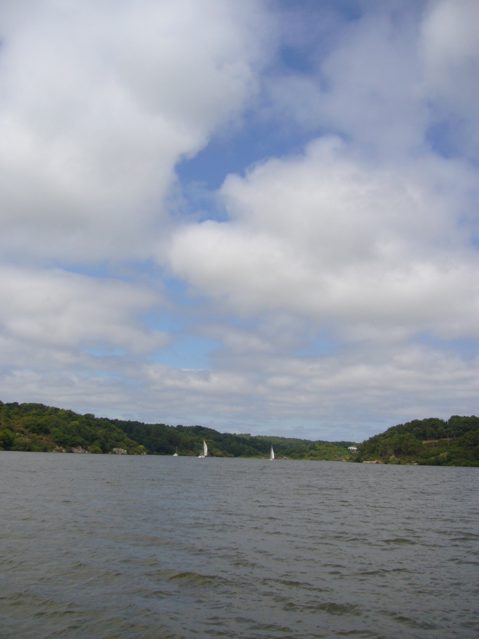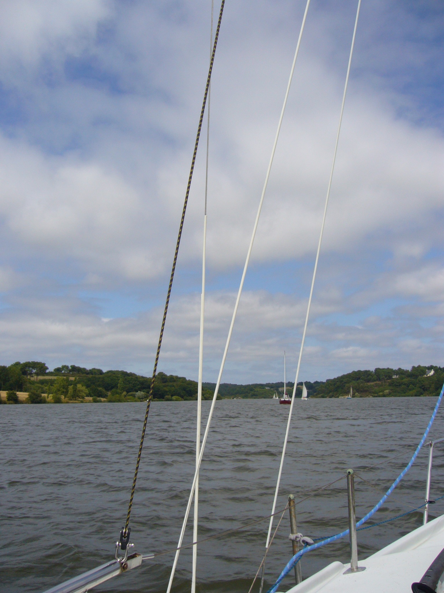 Le lendemain, un couple d’ami nous rejoint, le moteur démarre au quart de tour et nous laisse partir pour aller les chercher de l’autre côté du port. J’étais parti pour passer l’écluse, avait préparé ma route pour l’après midi, mais vu l’inquiétude générale, ce sera finalement un petit tour sur la Vilaine, avec un petit vent d’ouest : vent arrière au départ, près au retour, assisté du moteur. Moteur qui après avoir passé la Roche Bernard a décidé de ne plus délivrer que la moitié de sa puissance. Pour le reste, on a passé une excellente journée sur l’eau.