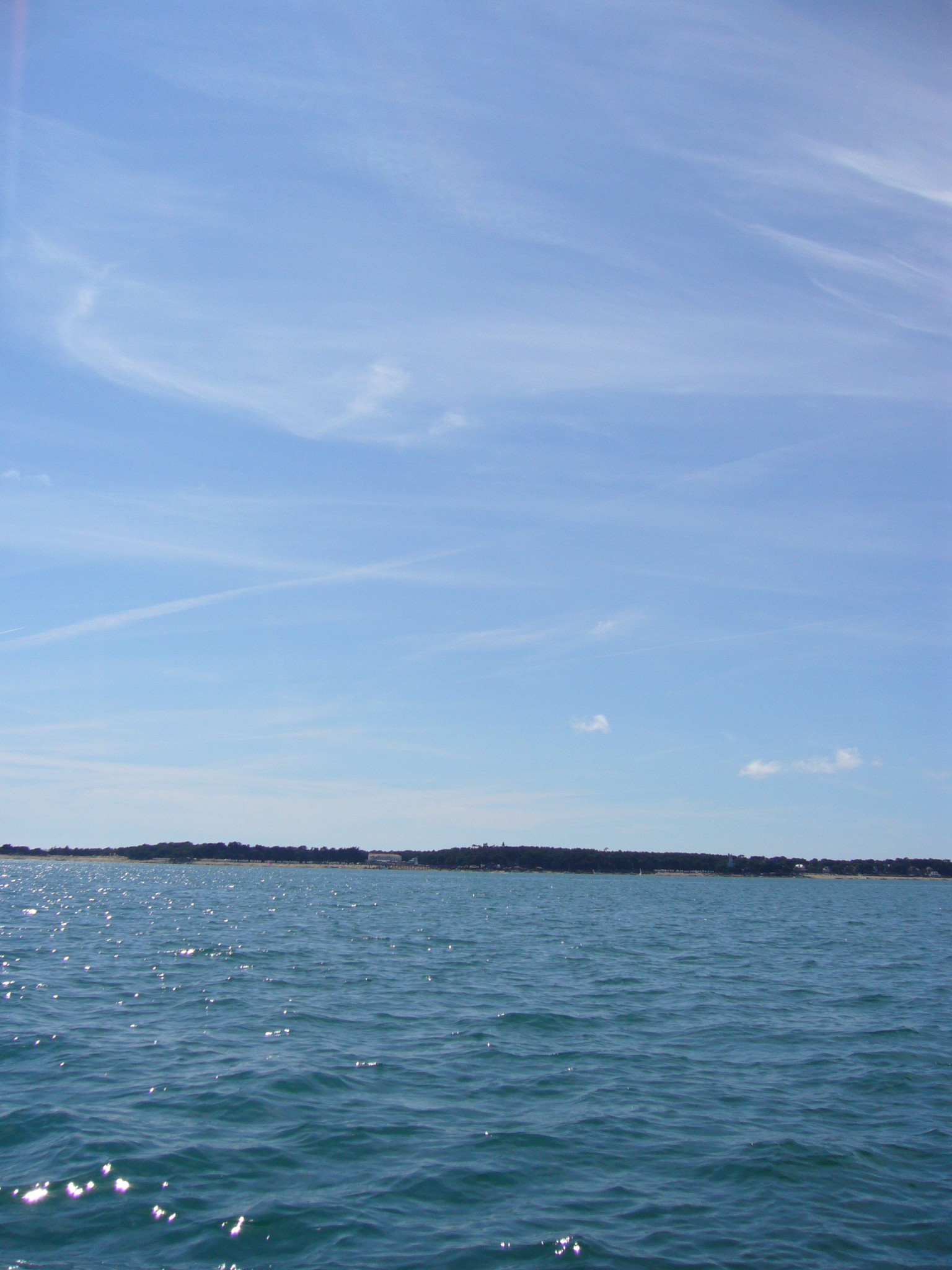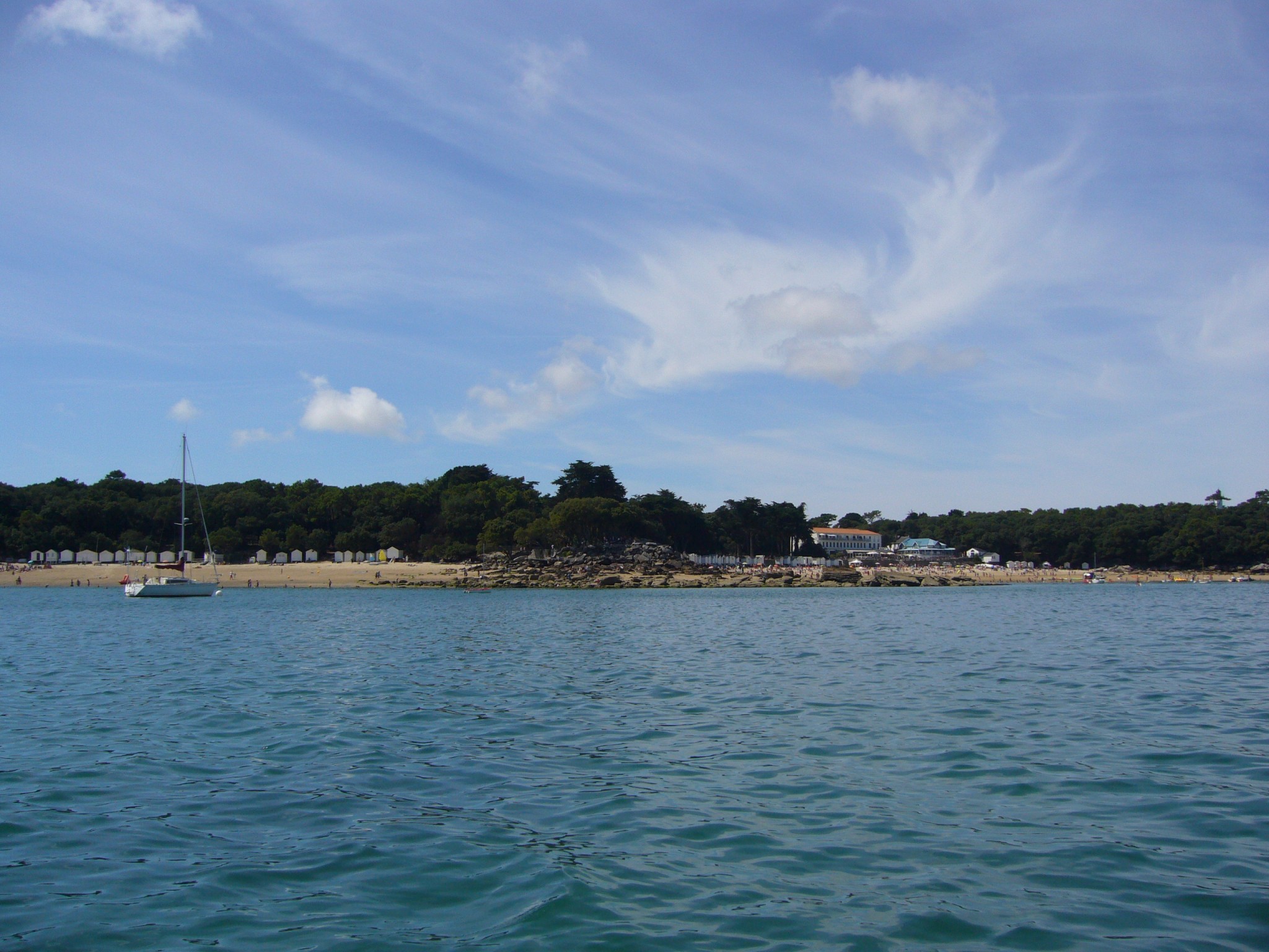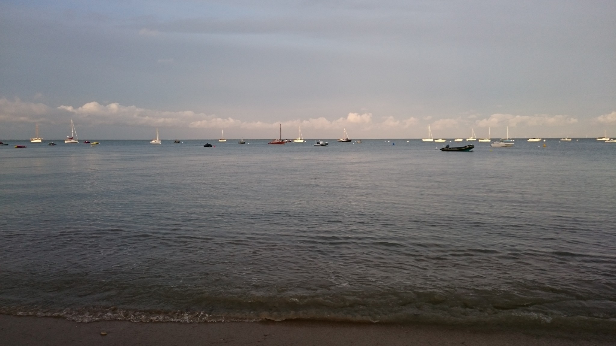 Le samedi avant le départ un ami me rendait visite, la météo n’était pas fameuse, néanmoins, sur la plage on se dit qu’on irait bien faire un tour sur le bateau, tout petit vent et mer d’huile. Le temps de retourner chercher l’annexe, la situation a changé radicalement, creux d’un mètre (bon, sans doute pas tout à fait, mais depuis l’annexe, c’était impressionnant), et un grain qui selon nos amis restés sur la plage nous aura fait disparaître derrière un rideau blanc, et un bateau bien difficile à rejoindre. Finalement, ce sera juste un aller-retour humide, infiniment déçu, mes vacances s’achèveront sur cette note de pas assez (mais n’est-ce pas le lot commun des vacances réussies)…