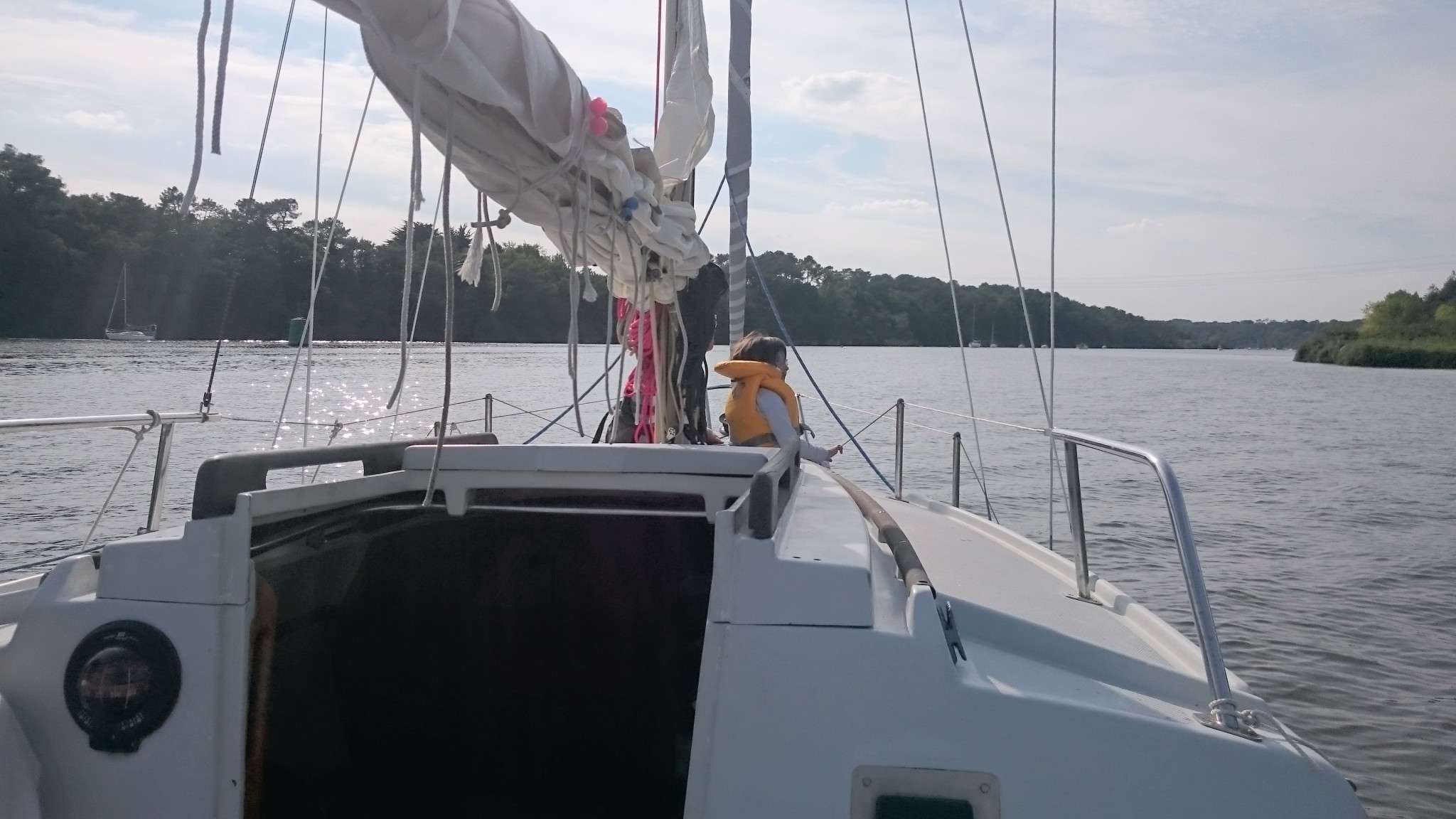 Ce mercredi, on fait un petit tour sur l’eau avec une amie japonaise de mon épouse. Rien de très ambitieux, un petit aller-retour vers La Roche Bernard avec pour objectif de s’y arrêter et d’y prendre un petit goûter, en s’évitant si possible les bords de près sur la Vilaine.