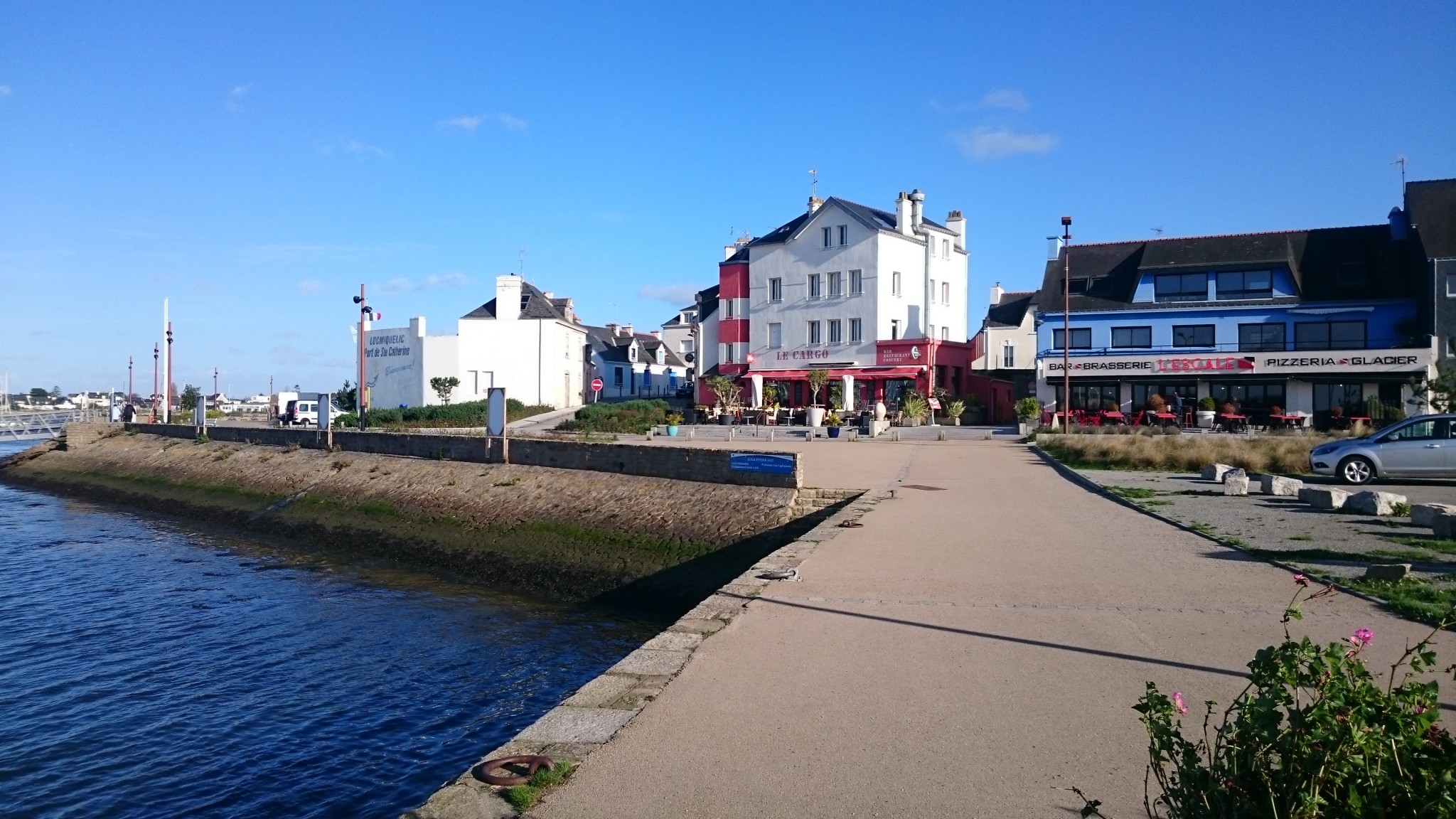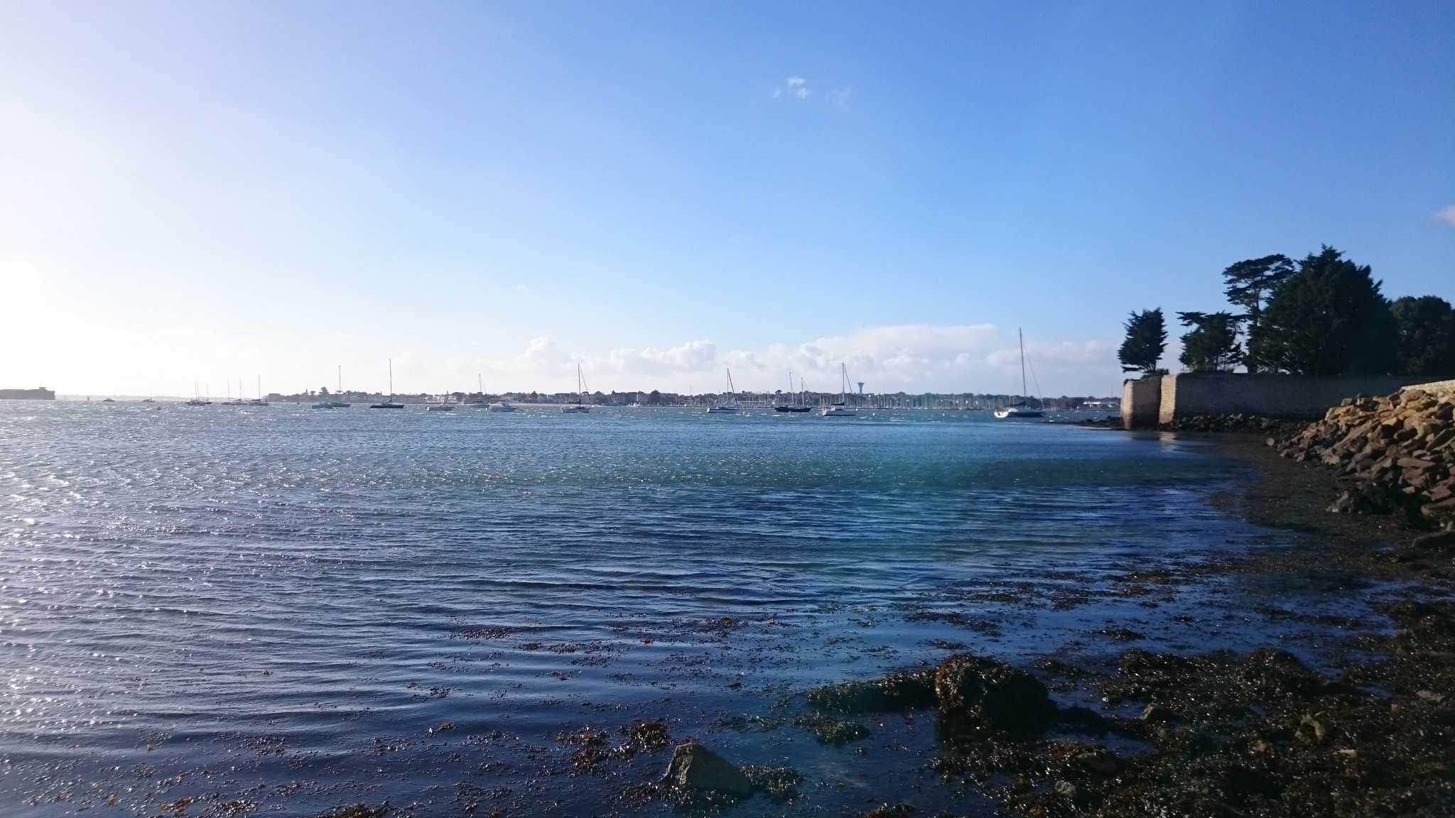 Le GPS est réglé sur ma destination : SNSM à Locmiquélic, on arrive sur place, on se gare, et on cherche la SNSM, une dame de 90 ans passé qui en fait 30 de moins et fait son petit tour quotidien nous y conduit dans une discussion qui parle du temps qu’il fait et faisait avant. La SNSM s’affiche devant nous, on prend congé, il est pile l’heure : 12h30 et de la SNSM sortent des dizaines de personnes, j’appelle Claude, pensant le trouver parmi ces personnes. Petit quiproquo, Claude me dit « Pourtant je devrais te voir »… Pris d’un doute, la mer me semblait en effet ne pas être de ce côté sur la carte que je consultait la veille. Je me renseigne auprès des personnes de la SNSM. Et si la SNSM est devant mes yeux, Locmiquélic se trouve de l’autre côté des eaux, je suis à Larmor Plage. Mince, retour à la voiture je change la destination : « Capitainerie à Locmiquélic »… 22 minutes avant d’arriver à destination.