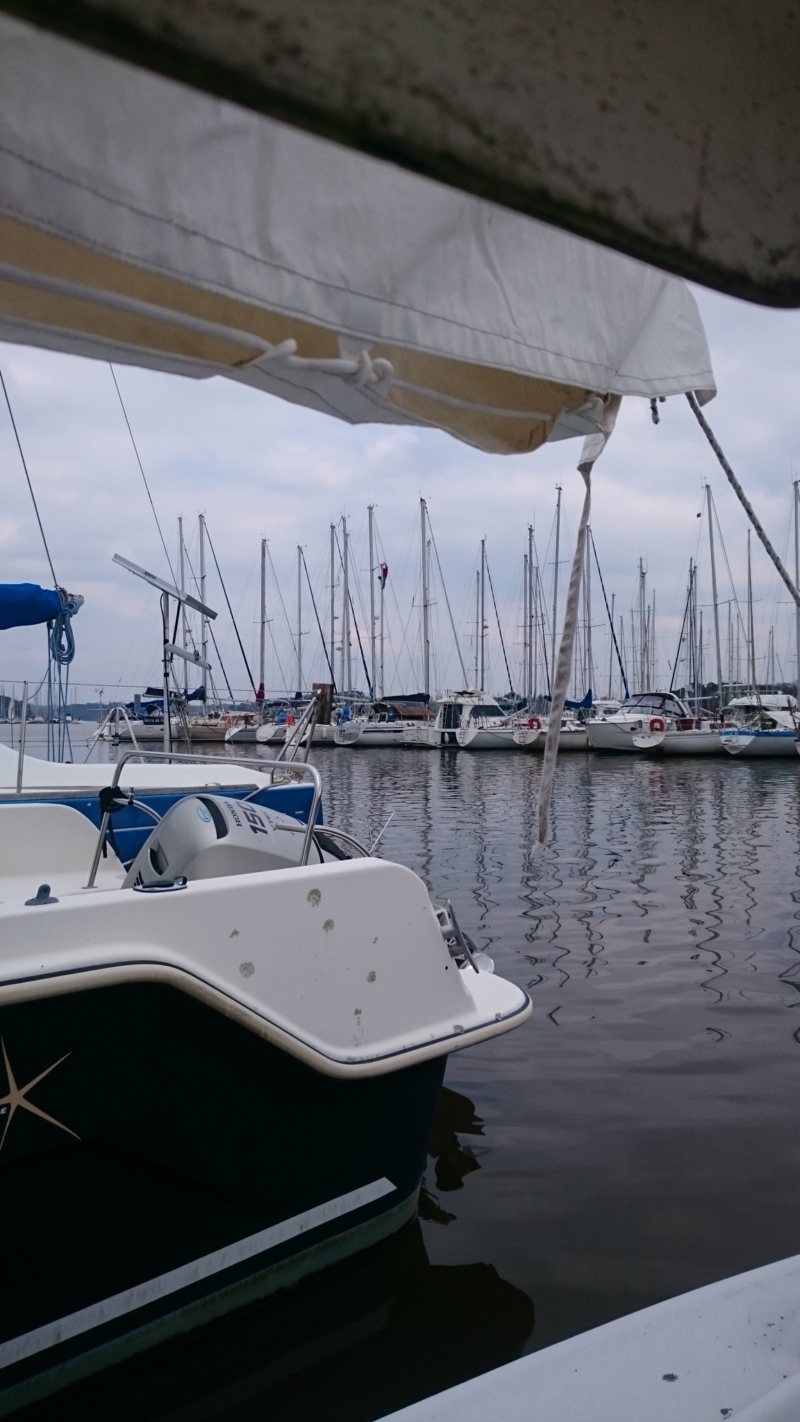 Pendant ce temps, mes voisins grimpent au mât (mais avec des marches dessus, c’est trop fastoche, hé !), hissent leurs voiles pour un checkup post-hivernal ou jouent de la perceuse. Personne ne quitte le ponton.