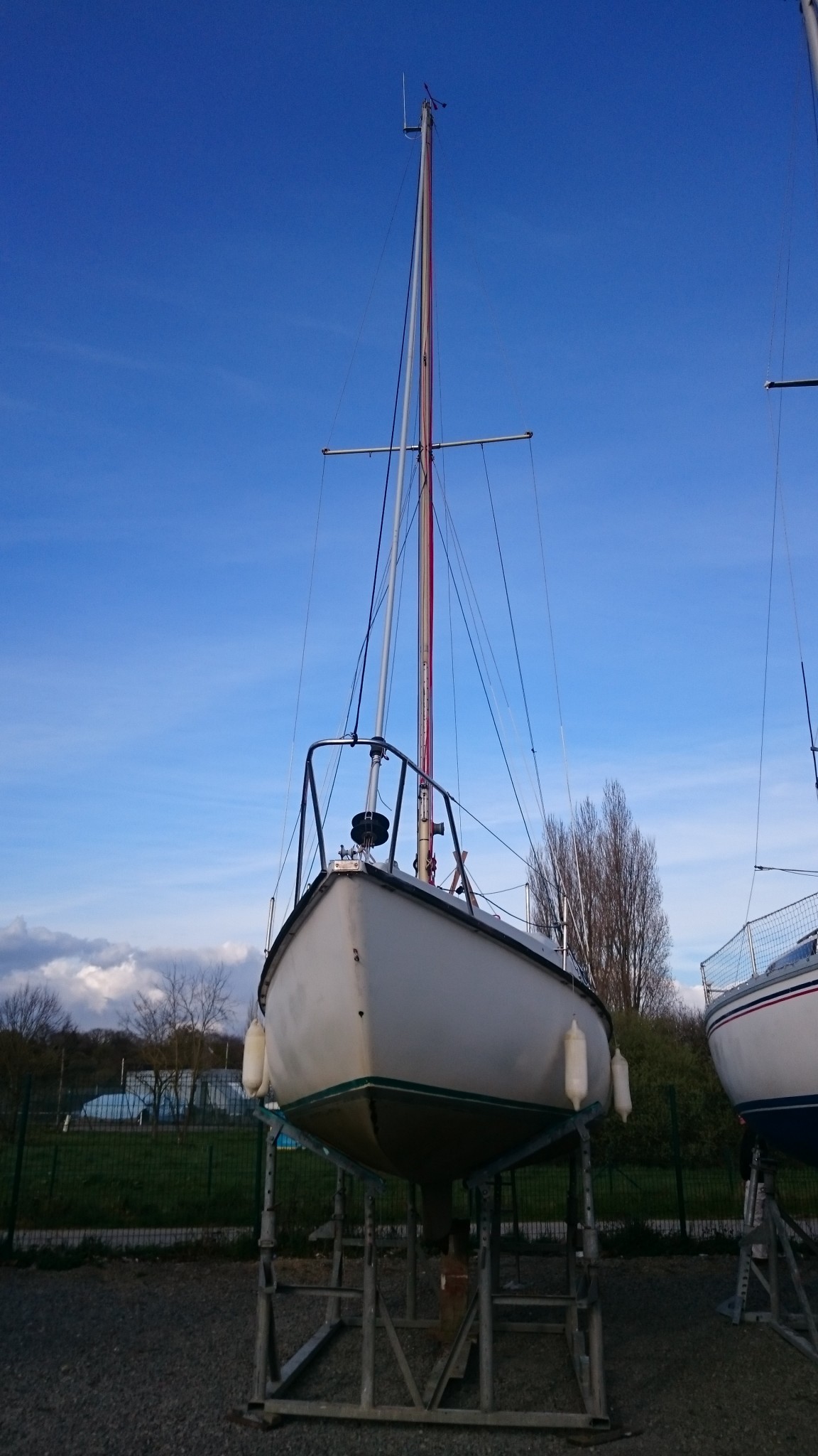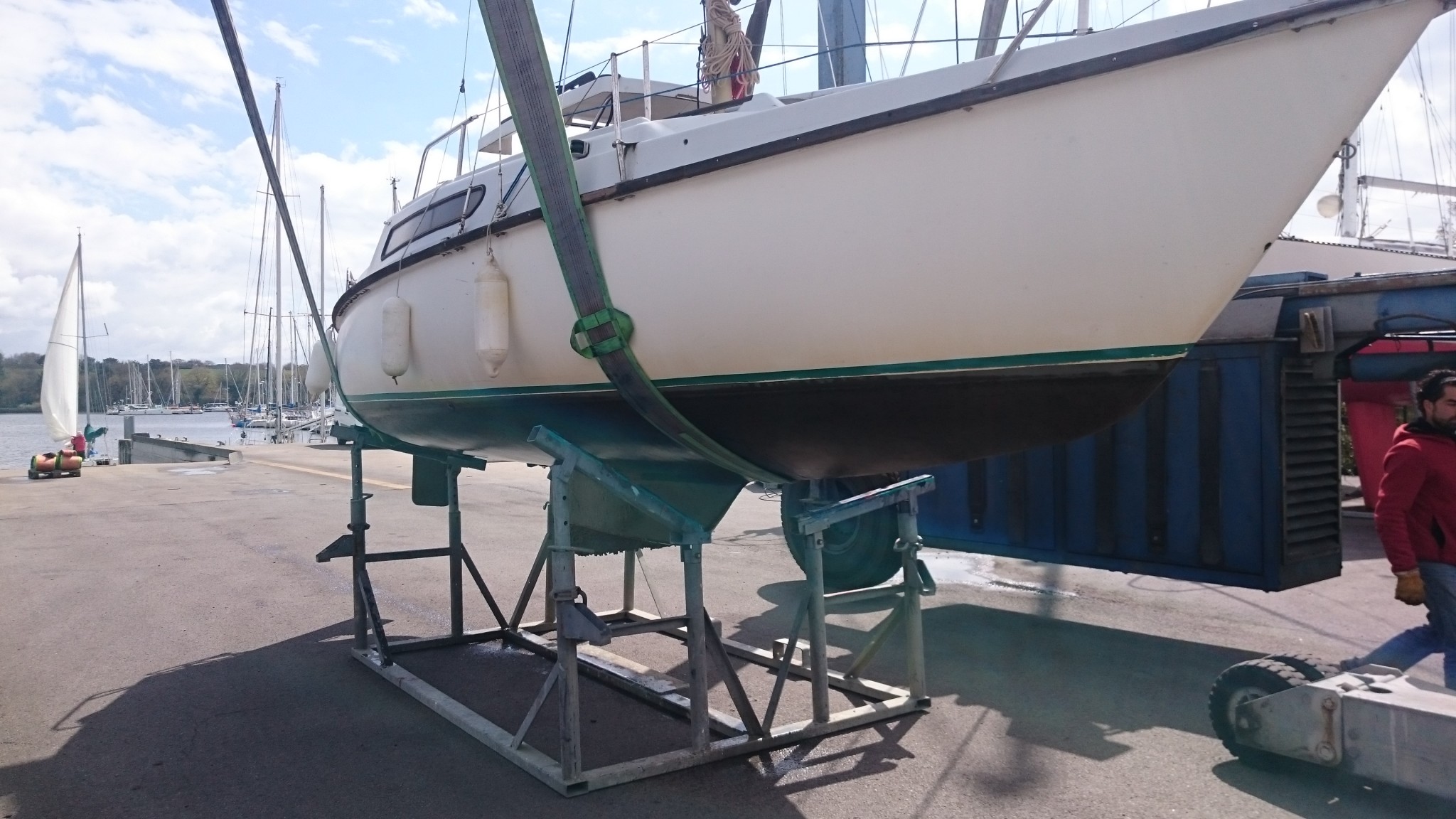 Aujourd’hui, on sort le bateau de l’eau pour une petite semaine de travaux chronométrés. Départ tôt le matin pour le port avec mon beau-frère magicien avec une peu de préparatifs en vue, un grutage, et un démâtage au programme.