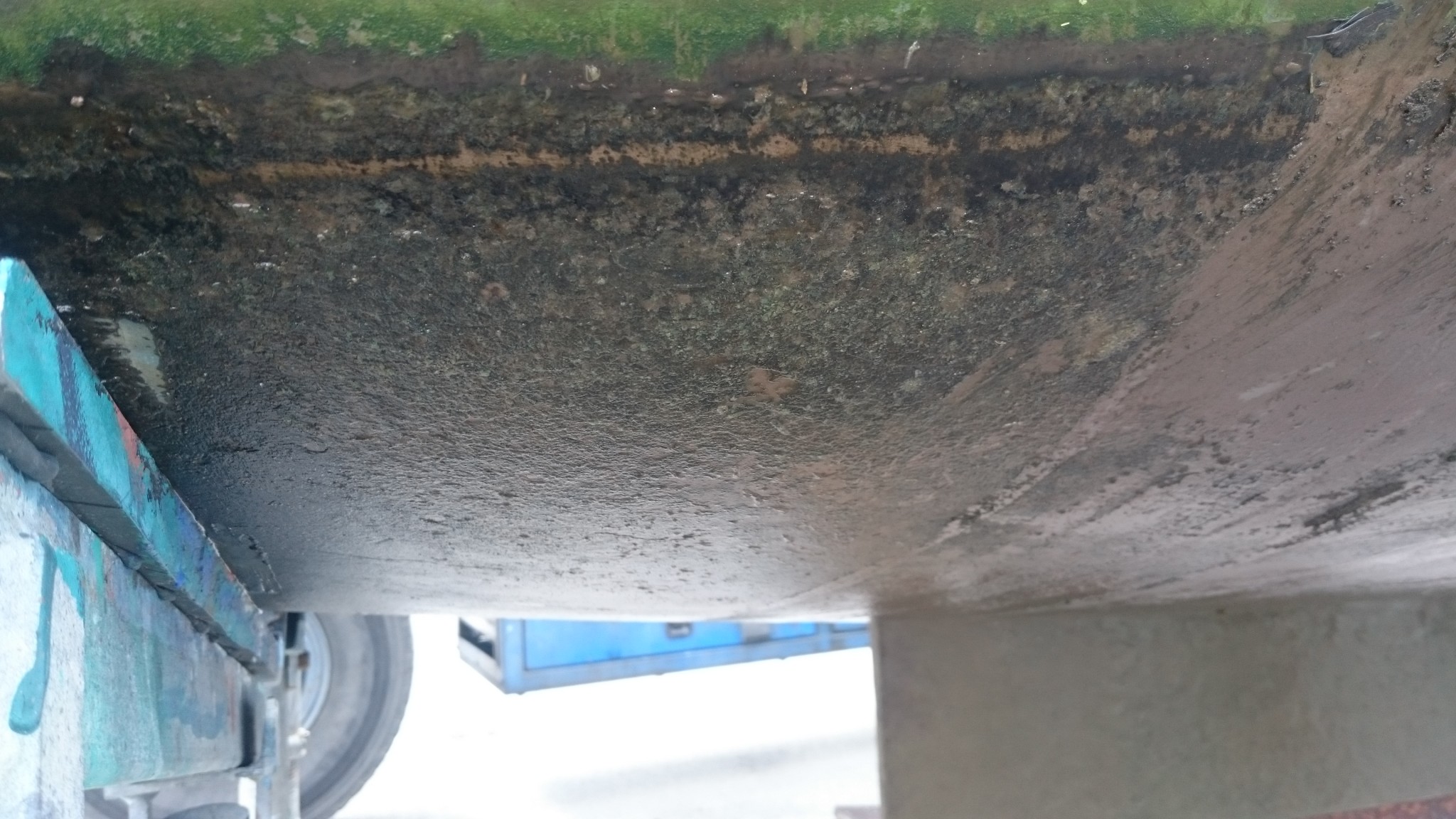 Petite surprise lorsque le saumon sort de l’eau : la dérive n’est pas totalement remontée, et de loin donne l’impression qu’un paquet de moule y a trouvé refuge. De plus près c’est encore plus curieux, je me demande si c’est organique ou une tôle avec des bulles de rouille… Après grattage, on dirait des bulles de vases imbibées de rouille. En tout cas, la dérive a vécue. Il faudra sans doute s’en occuper un jour prochain !