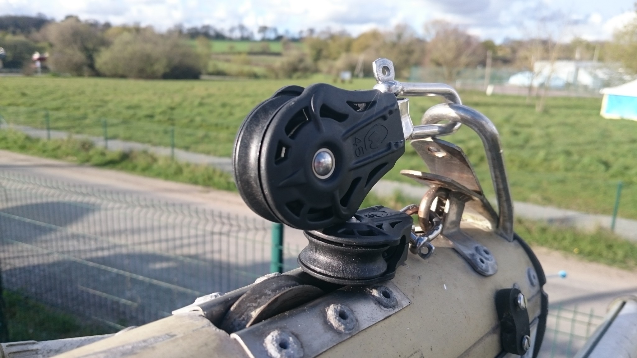 On retourne sur le pont avant la pause souper. J’ai quelques poulies à changer en tête de mât, et ça, ça ne mange pas de pain et ça marche tout seul.
