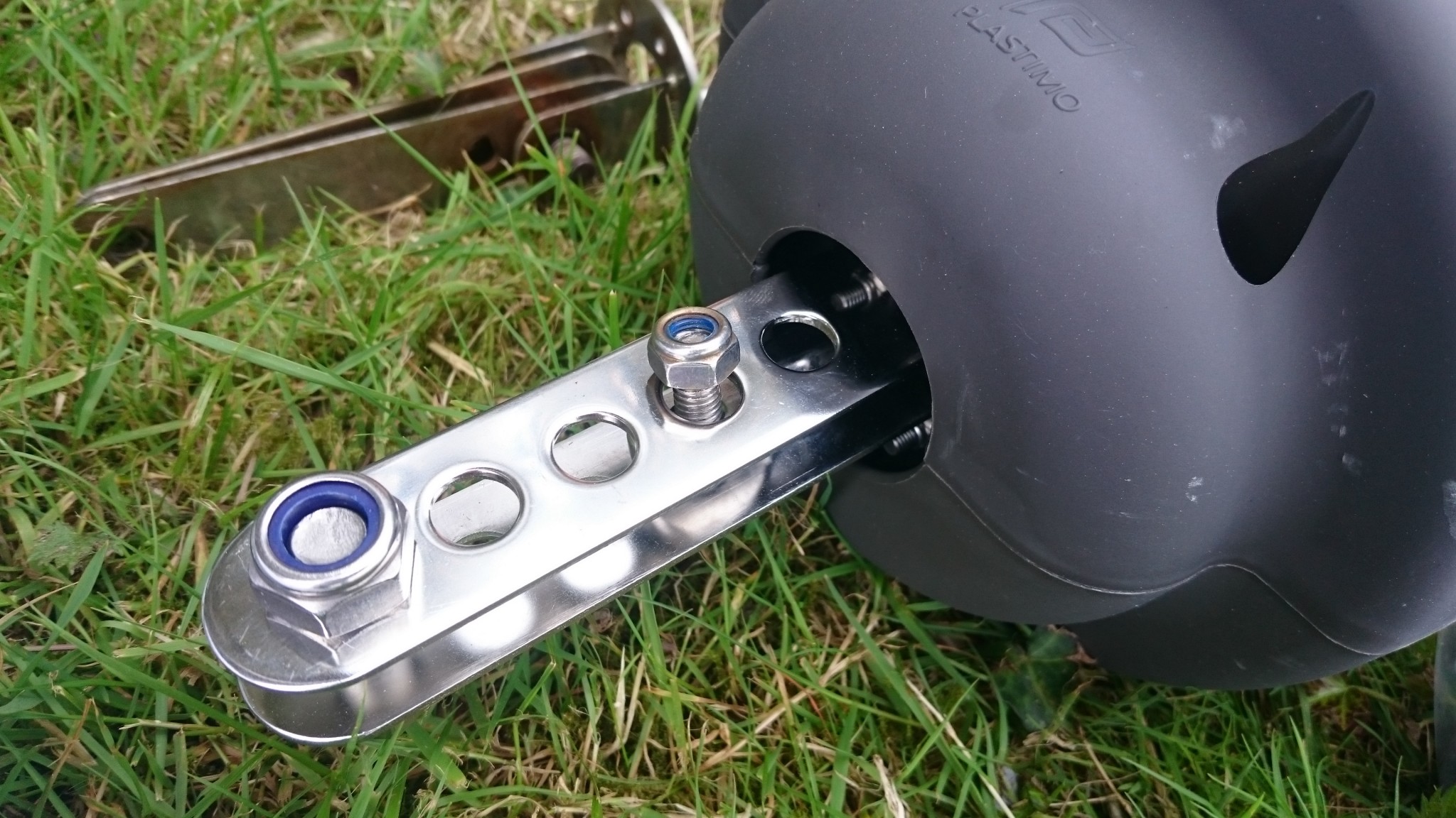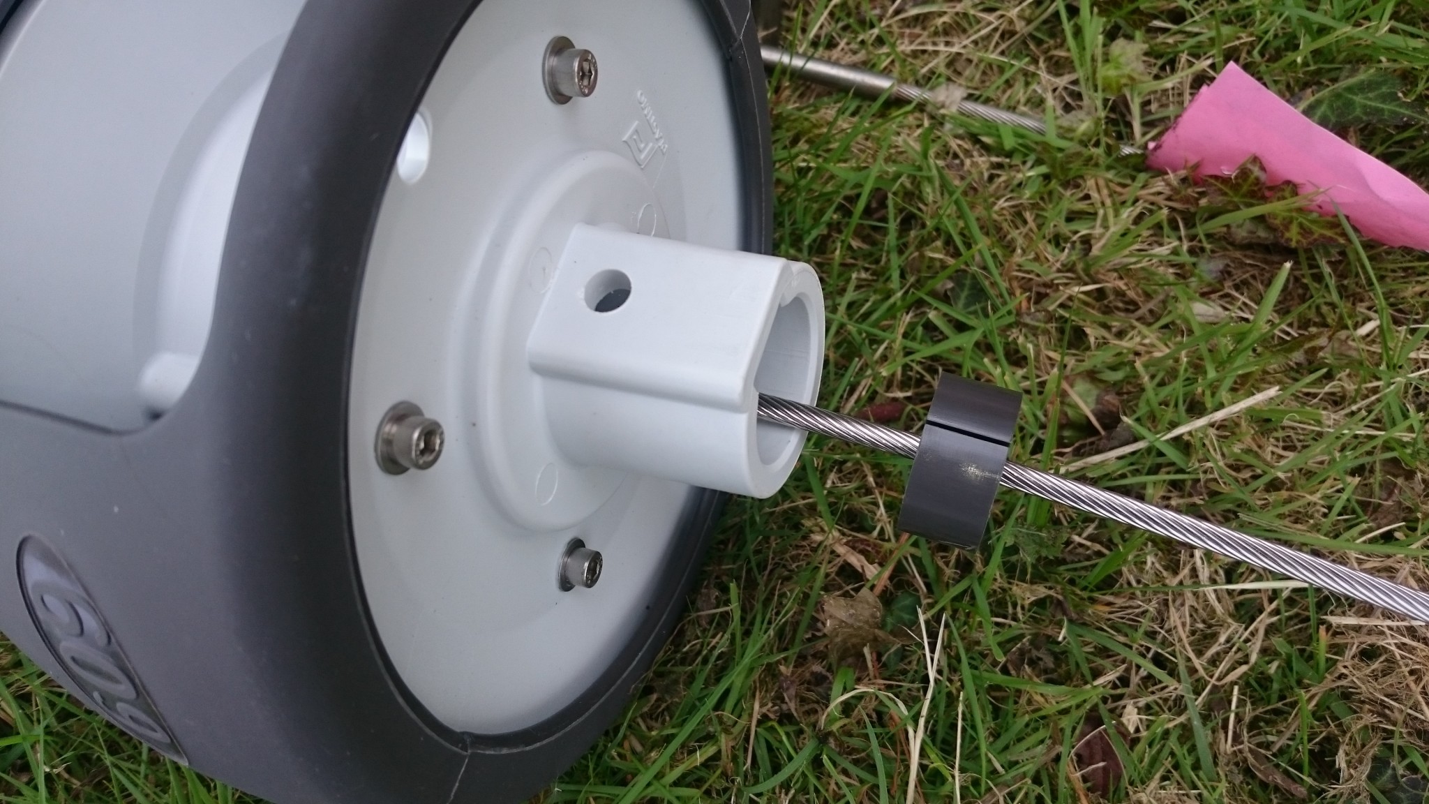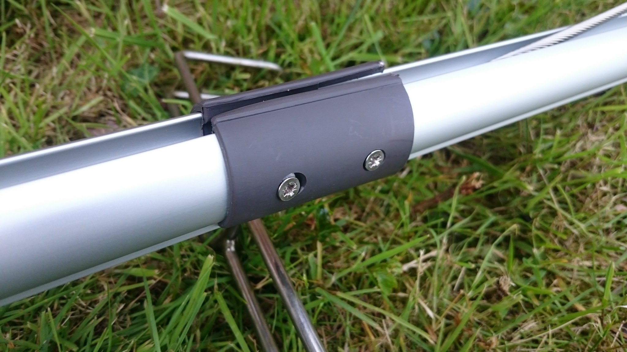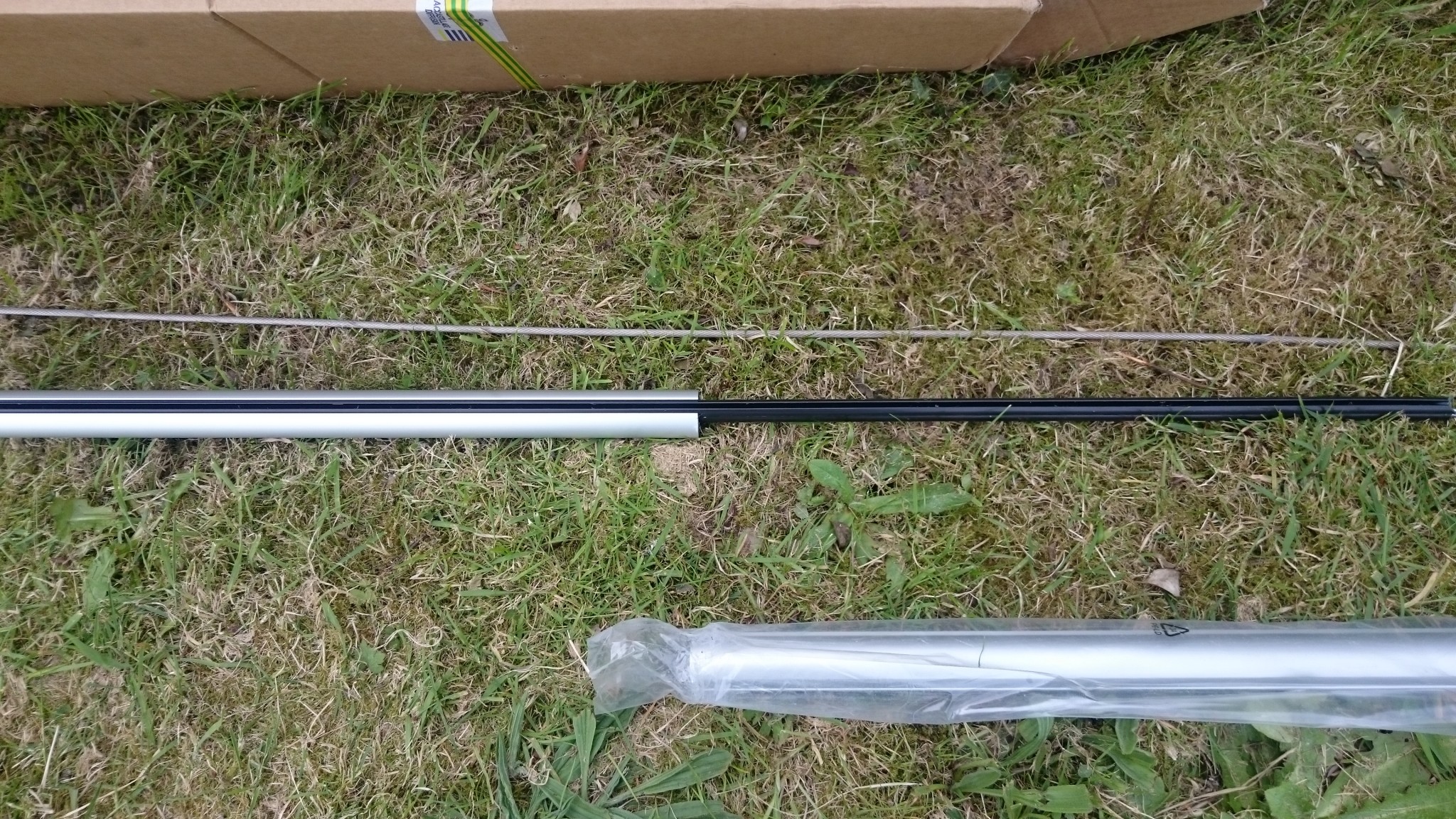 Pour remonter le mât on doit d’abord assembler l’enrouleur, et je le fais sur la pelouse à côté des sanitaires. Le point super sympa, c’est que ça fait plein de copains curieux avec qui discuter. L’enrouleur, un Plastimo 609S n’est pas très cher (de l’ordre de 500€), en tout cas pas mal moins cher que les enrouleurs de marques concurrentes. Mais comme toujours, on en a pour son argent : rien n’est ajusté, les trous ne tombent pas en face, un coup c’est trop long, un coup ça ne l’est pas assez, j’essaierai un peu toutes les combinaisons pour trouver ce qui marche le mieux ensemble, mais il reste deux profils bien mal assortis. Et ce qui aurait pu être une promenade de santé se transforme en ascension (c’est de saison) un peu ardue.