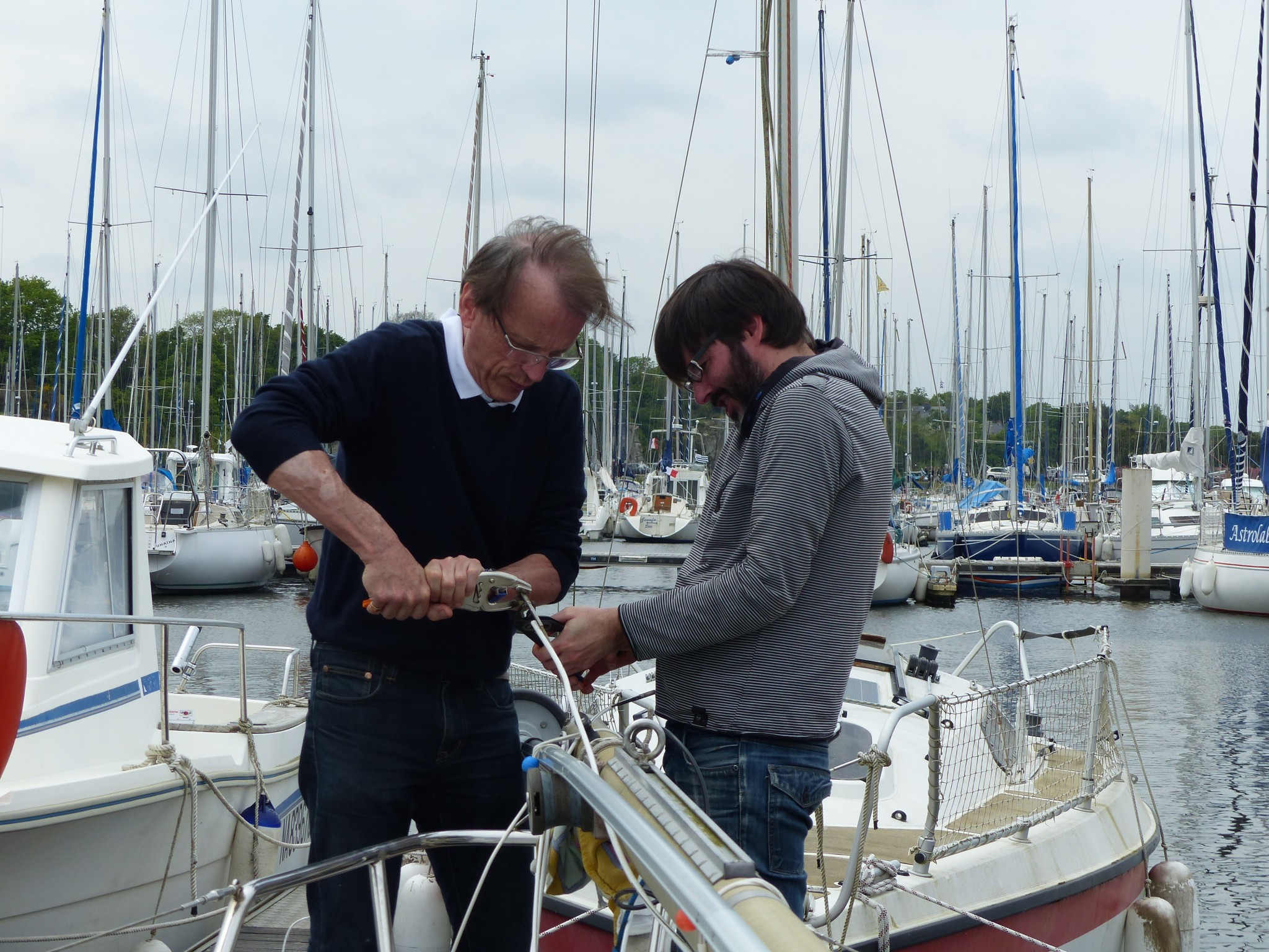 Pause déjeuner avec ma soeur et son homme, l’enrouleur n’est pas fini d’être assemblé, mais on n’en est pas loin. Ce seront eux qui se chargeront de terminer son assemblage pendant que je prépare le montage de mes ridoirs tout neufs. Pour ça, je dois démonter les anciens, et ça coince, un peu, beaucoup. L’écrou du hauban babord nous occupera l’après midi, et à la fin, j’abandonne. Pas de mâtage pour aujourd’hui.