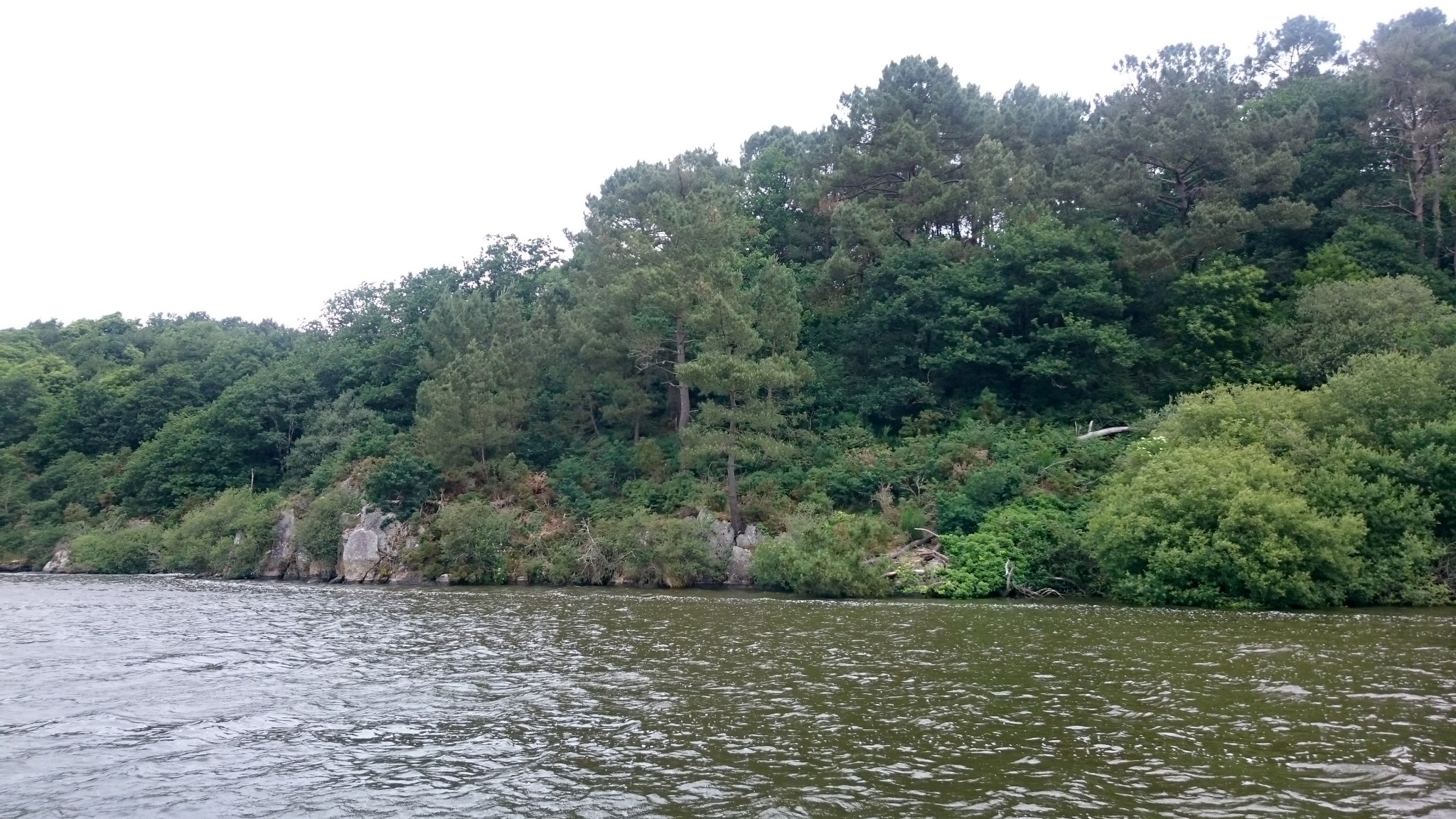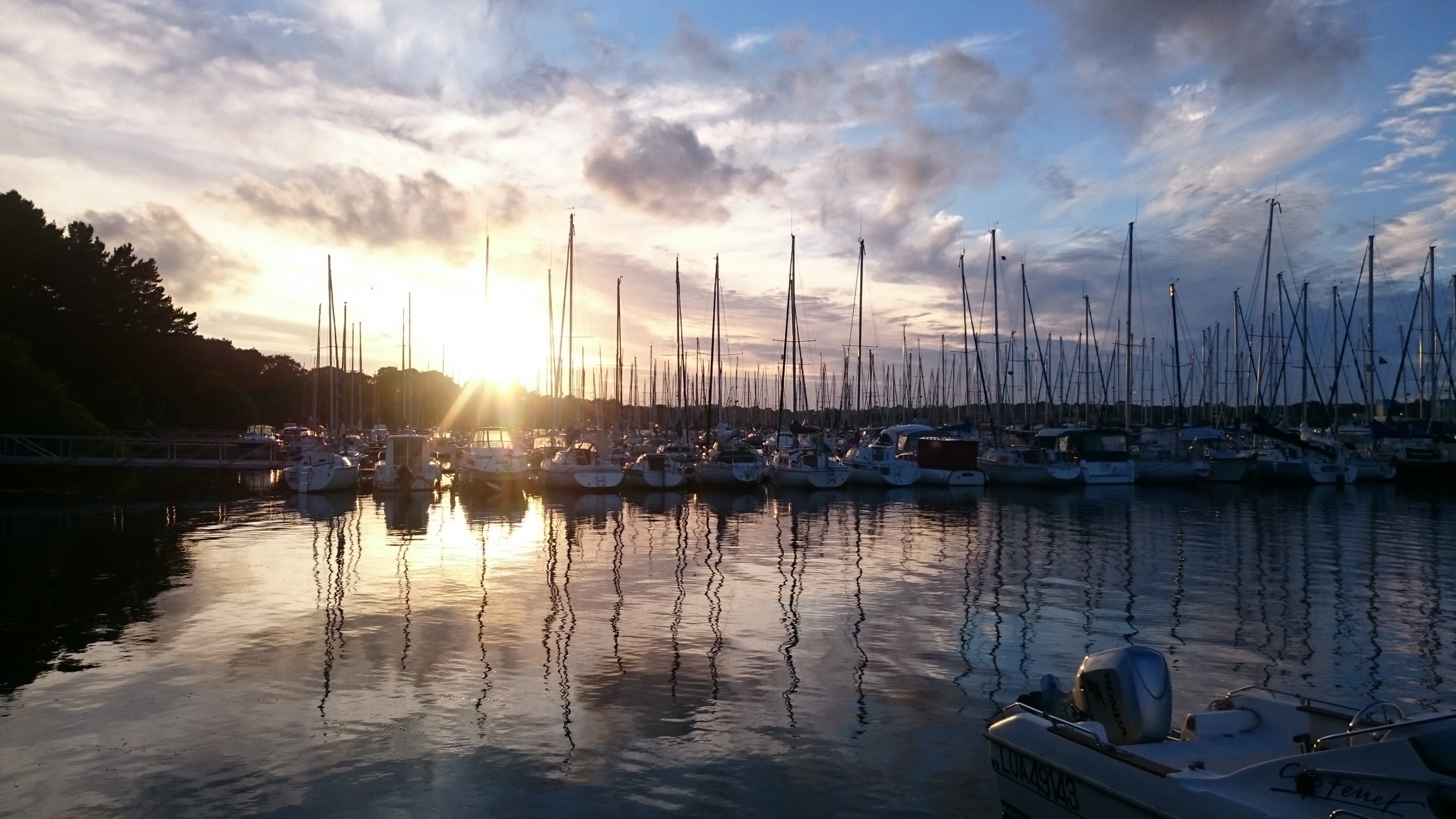 La pause du midi sera prise à la Roche Bernard pour pouvoir y faire mes quelques courses, j’ai du temps à perdre, je mangerai à la crêperie du port, en terrasse. Le temps est moyen, des éclaircies et quelques gros nuages, noirs parfois, mais il n’y avait pas de pluie d’annoncée. Sauf qu’arrivé à ma beurre sucre, la terrasse en panique rentre à l’intérieur. Il tombe trois gouttes. Je suis le seul encore dehors, un voisin avec son assiette en main me qualifie gentiment de « touriste », ce à quoi je lui répond gentiment que ça va aller. Le pari était risqué mais je finirai ma crêpe sans soucis et le temps de payer au bar, également en panique de la réorganisation des tables, la pluie aura cessé totalement.