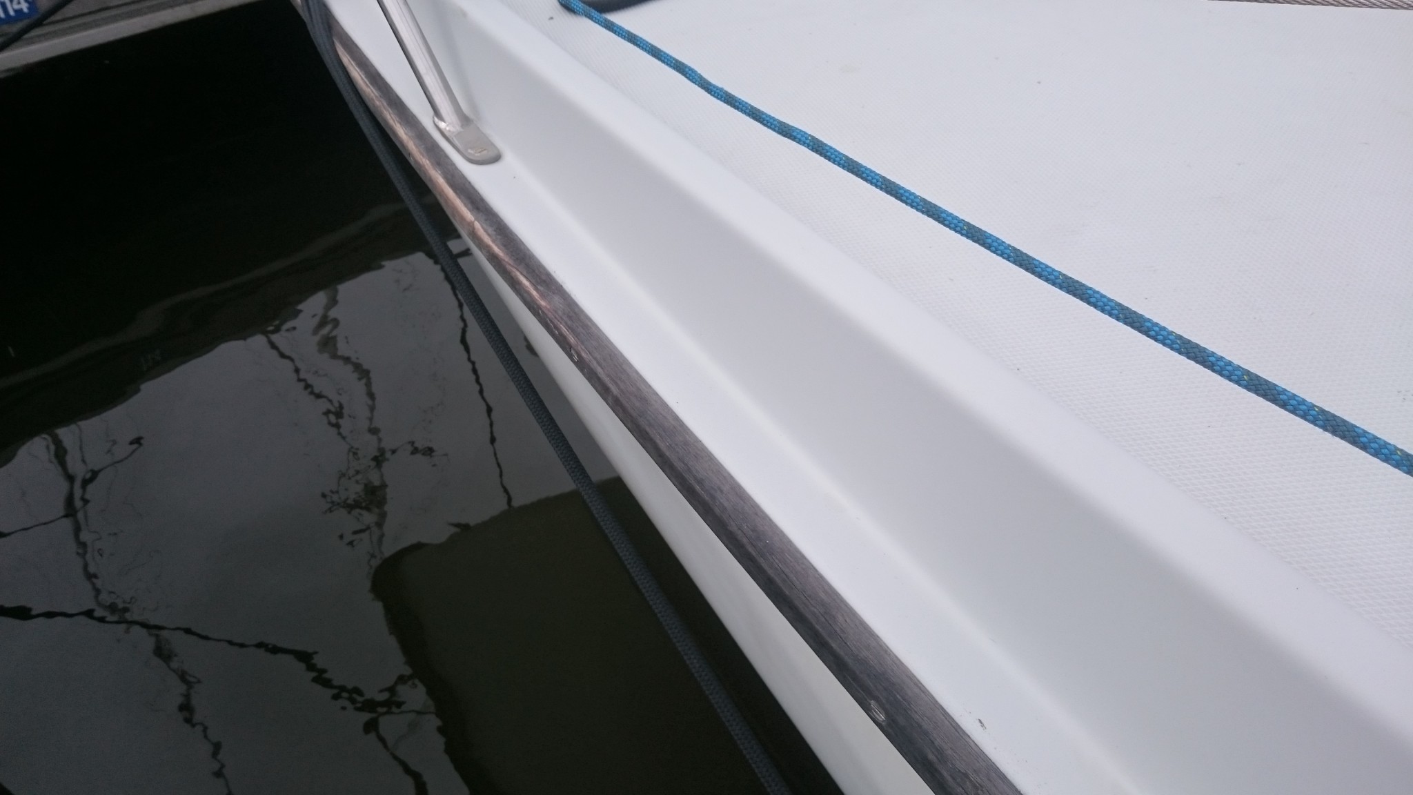 Il nous reste du temps arrivé au ponton, et si la météo est moyenne, ce n’est pas non plus désagréable, il fait bon et ne pleut pas. Avec les petits on nettoie le pont. La Toute-Petite aura effacé une dizaine de gros lichens dans l’anti-dérapant, armée du dos d’une petite cuiller en plastique, d’une brosse, d’eau et d’une brosse à dents qui fera parler quelques voisins de ponton. C’est un travail de précision que d’enlever les lichens dans l’antidérapant…
