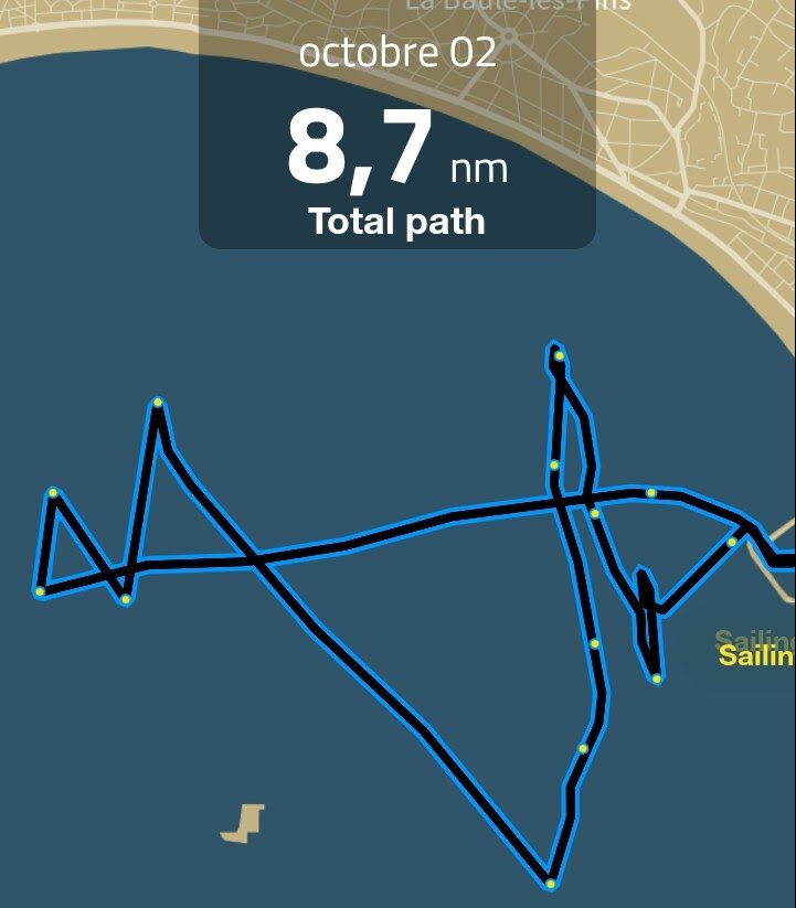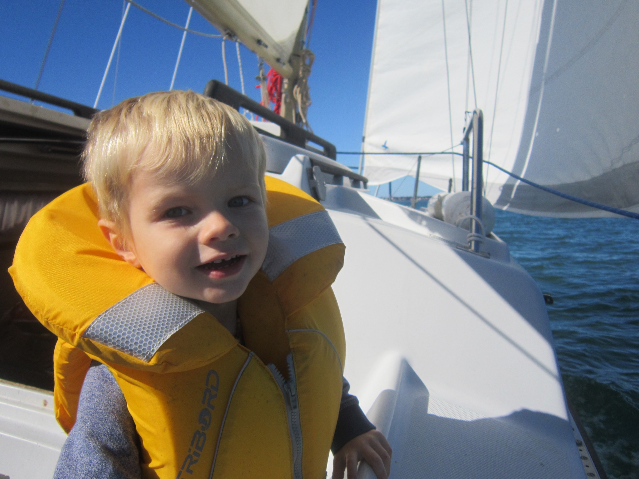 Mais les petits commencent à se sentir très à l’aise, je regrette un peu de ne pas les avoir accrochés au départ… On décide de remettre le cap sur le port : on affale la grand-voile, mais en gardant le génois, ça va presque aussi vite qu’au moteur, mais c’est tellement plus agréable. On aura quand même fait une bonne petite balade de presque 9 milles, en 4 heures de temps.