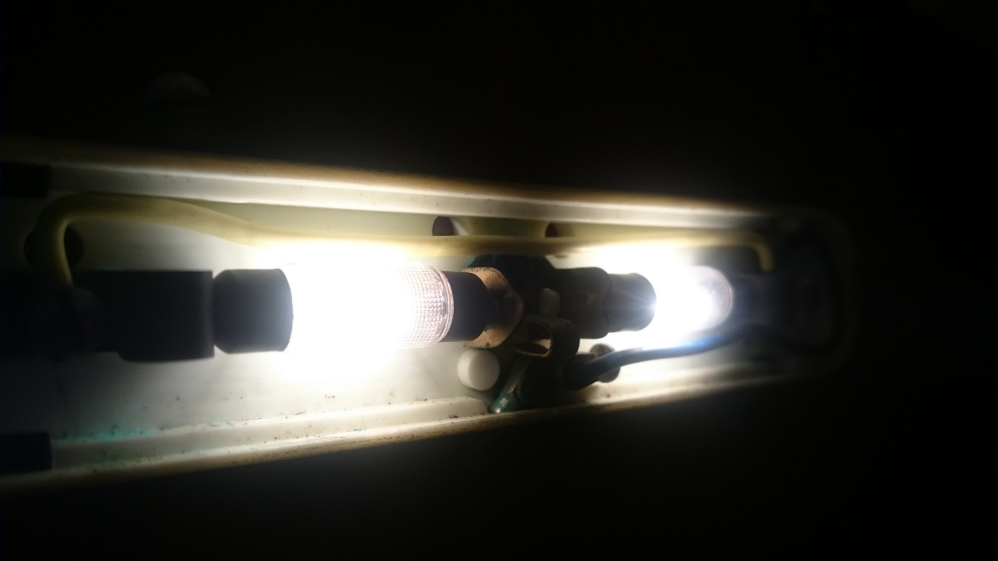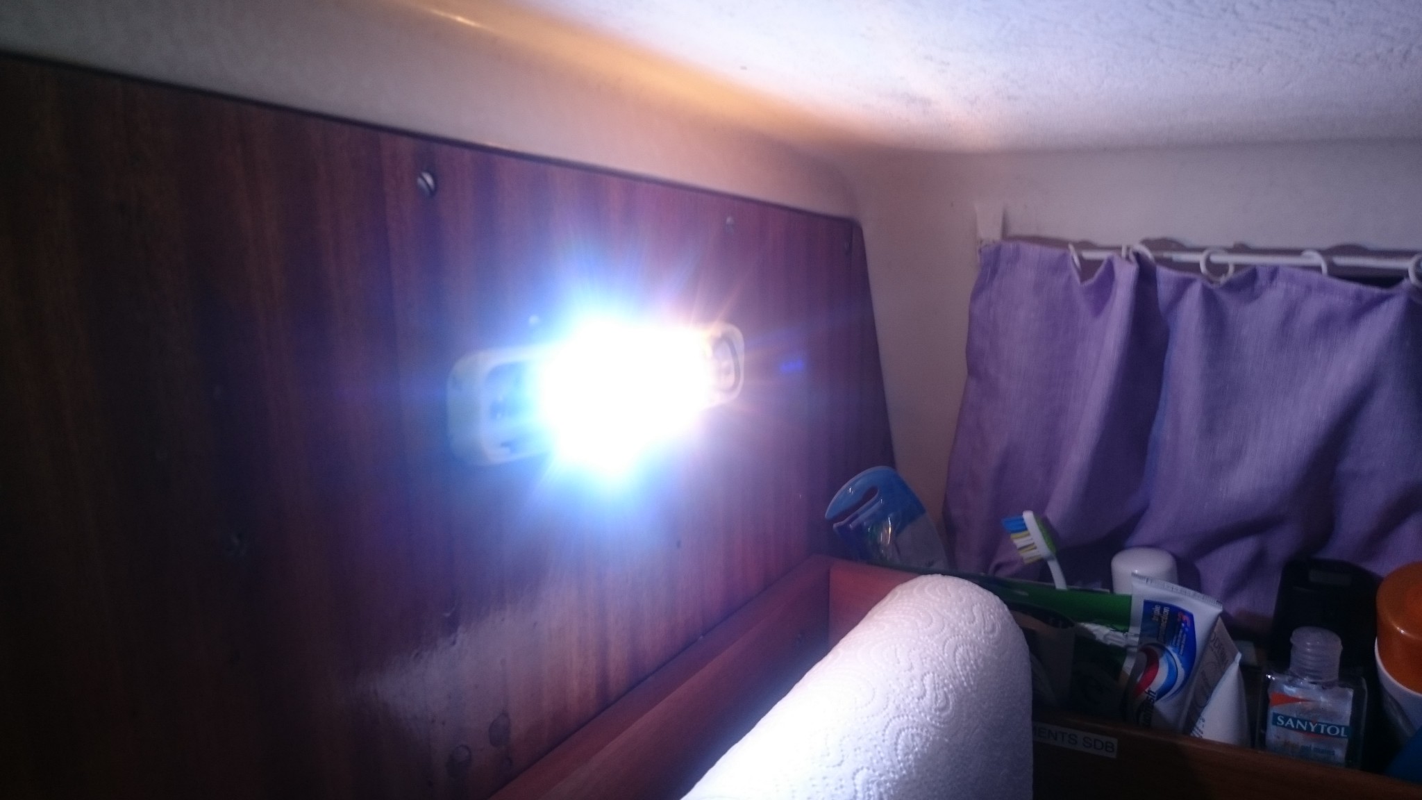 Je n’ai pas grand chose à faire à bord sinon tester quelques lampes navettes à led dans les appliques du bateau. Et c’est littéralement le jour et la nuit ! Et quelle belle lumière blanche, on peut maintenant lire sans lampe frontale ! Les photos rendent difficilement la différence, mais elle est flagrante, je peux donc passer commande d’autres lampes du même modèle pour tout remplacer à bord.