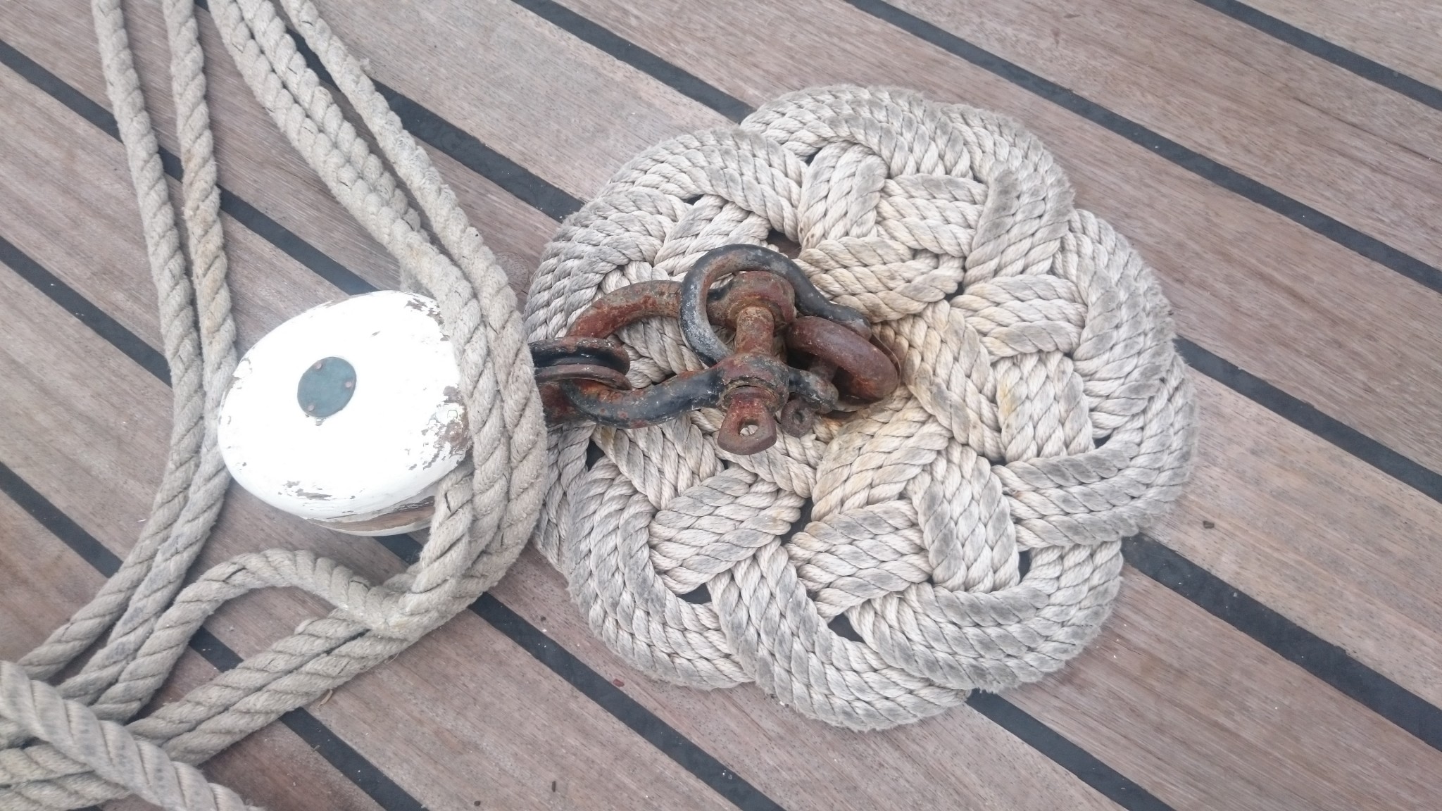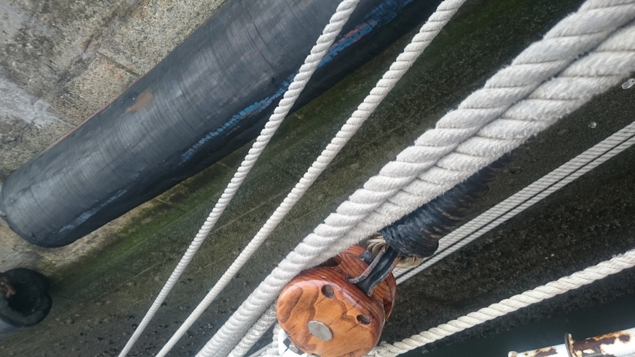 Le Belem m’y attend, j’ai un peu d’avance et mes coéquipiers du jour arrivent en groupe, eux avaient fait une voiture au départ de Nantes, snobant ma proposition d’une nuit de camping sur le bateau. Le capitaine et son second nous accueillent, nous font le brief de la journée, un point sur la sécurité, et très vite, on appareille. Pour quitter le bassin de Penhoët, il faut franchir une écluse qui est très longue à passer. Contrairement à Arzal, il y a beaucoup d’eau à vider, le niveau ne descend pas vraiment à vue d’oeil… Pendant ce temps un gars à cornemuse sort sur son balcon, il sera salué par tous les passagers et la corne de brume du Belem en train de larguer ses amarres. Très vite après, on commence à voir l’océan. L’air est assez humide, pas vraiment chaud mais on est comme des gamins sur ce gros voilier. On nous met volontiers à la manoeuvre (pour moi ça commencera par hisser le faux-foc), et à bord une équipe de tournage interview le capitaine. On apprendra le midi qu’il s’agit de l’émission « on n’est pas des cobayes » de France 5, ce sont les petits qui seront contents d’apprendre son retour (et moi aussi, on se fait chier le vendredi soir sans « Thalassa », ni « On n’est pas des Cobayes » ni « Echapées belles », quelle misère la télévision) ! Ils ont un drone qui finalement attire presque plus l’attention sur lui que le Belem… Le soleil fait son apparition en fin de matinée, et le Belem file à belle allure, passe devant Pornichet et y fait son demi-tour. On était à table au moment du demi-tour et on n’a rien senti. Un gros bazar comme ça, c’est stable ! Retour sous un grand soleil froid à 16h30, avec un éclusage plus rapide que le matin et un demi tour sur place dans le bassin. Le Belem, ça a l’air de se diriger un peu comme un catamaran, avec deux manettes de gaz.