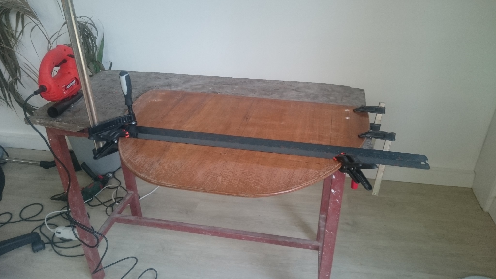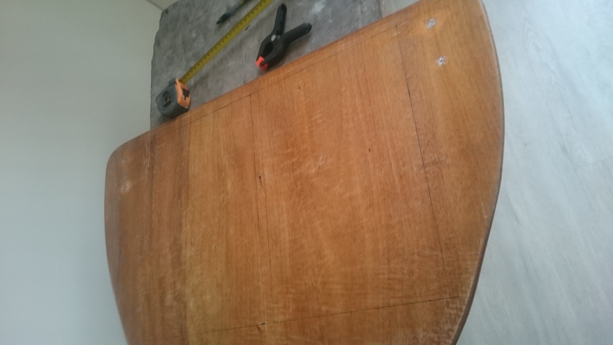 Arrive le dimanche, un coup très léger de papier de verre grain 180 pour retrouver une surface bien lisse, et je peux passer la deuxième couche sur l’hélice et l’embase. Aujourd’hui il pleut, je fais ça en intérieur, et ça sent bon ! Viendra une troisième couche sur l’hélice en fin de journée, et tant que j’ai de la peinture, je pense la surcoucher.