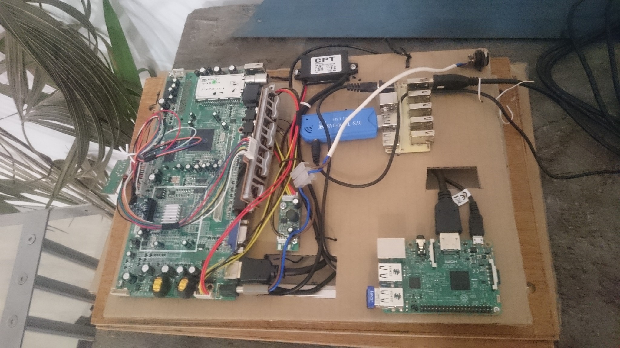 Mais ce n’est pas tout, j’ai toujours en projet ma station de nav à base de Raspberry Pi, aujourd’hui je joue pour la première fois avec une défonceuse. Je récupère le plancher de l’annexe qu’on a mis à la poubelle il y a trois ans pour en faire un boitier pour l’ensemble.. Le résultat n’est pas mauvais mais pas au niveau que j’aurais souhaité, j’aurai des pièces à refaire. Le plus dur est de fixer les pièces à découper pour qu’elles ne bougent pas. Ajuster au quart de millimètre la règle sur laquelle je me repose pour aller droit, et recommencer ad libitum pendant l’après midi. L’astuce c’est d’avoir le trait de coupe du côté de la règle, si on bouge et qu’on attaque la partie qui sera perdue, ce n’est pas grave, on pourra revenir le long du trait de coupe. L’autre astuce : couper les parties les plus critiques tant qu’on a encore du bois autour, dès qu’on travaille sur des petites pièces, c’est bien plus difficile de maintenir la défonceuse droite.