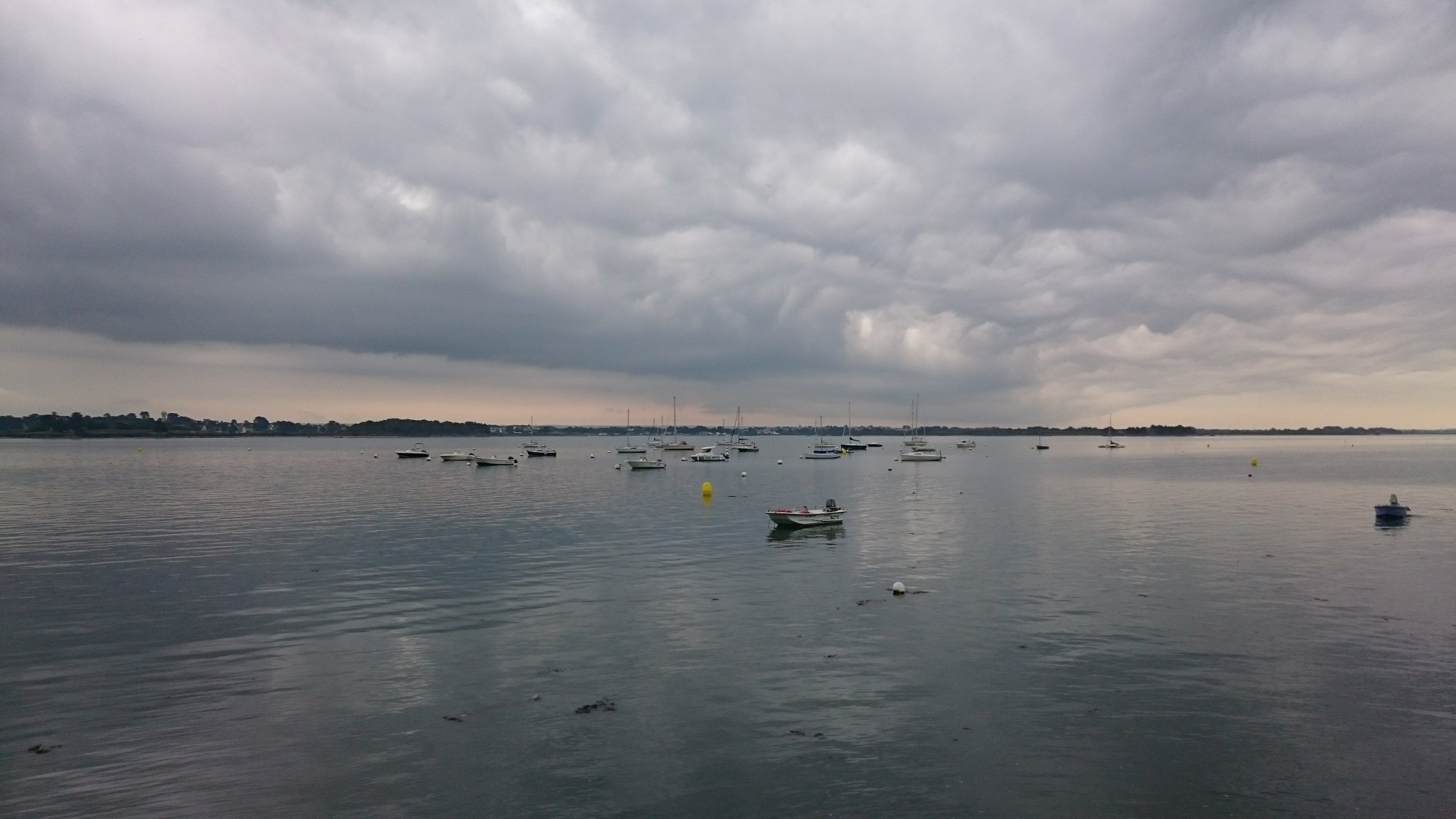 On prendra un coffre devant l’Île d’Arz, Patrice fera le taxi en cherchant les équipages pour nous emmener sur l’Île. On a le projet de boire un coup, mais sitôt arrivés, l’alarme incendie résonne dans l’hôtel qui – un peu en panique – ne nous recevra pas. Décidément, on ne veut pas beaucoup de nous dans le Morbihan :)