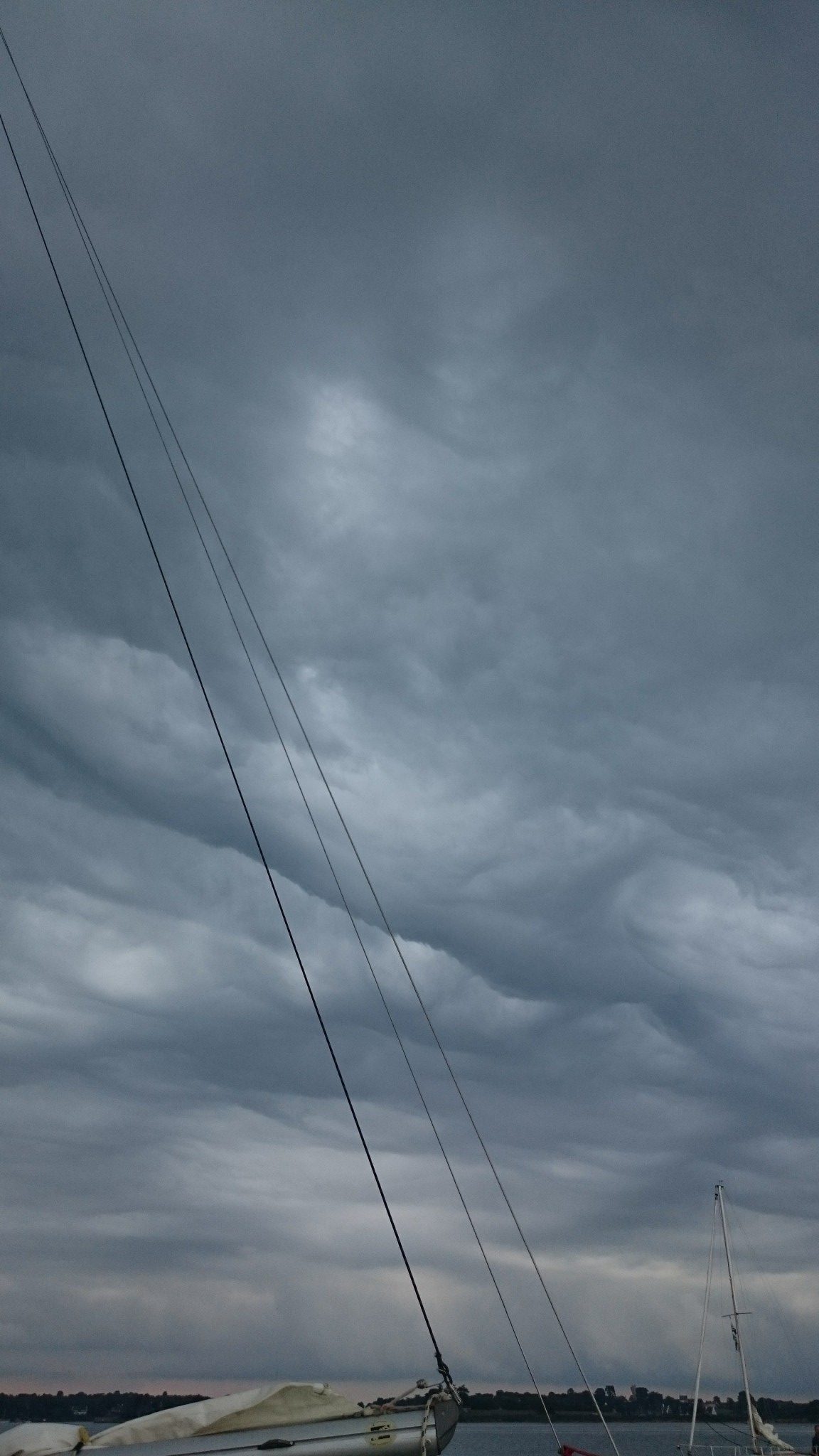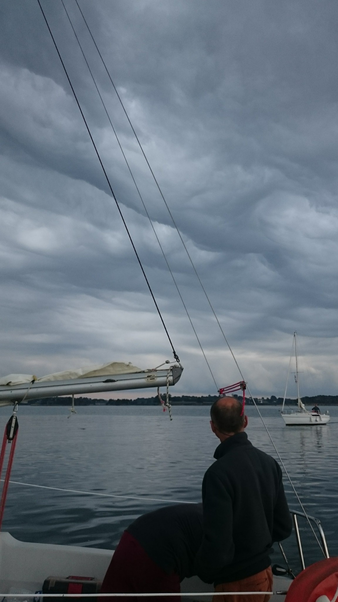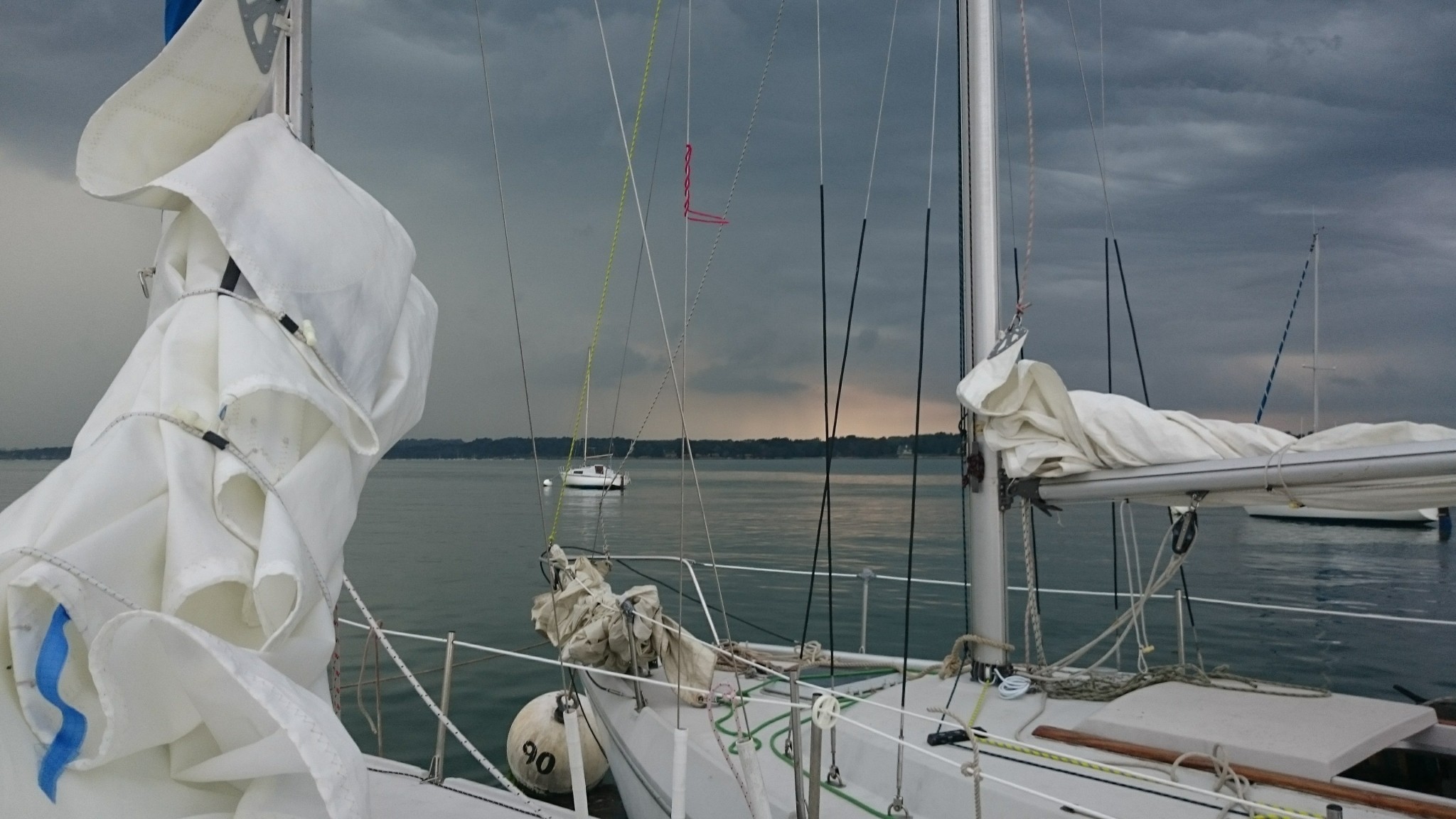 et les éclairs au dessus des mats fichaient un peu la trouille, malgré que l’on ait dérivé le mât dans l’eau avec la chaine entourant le pied de mat et plogeant dans l’eau