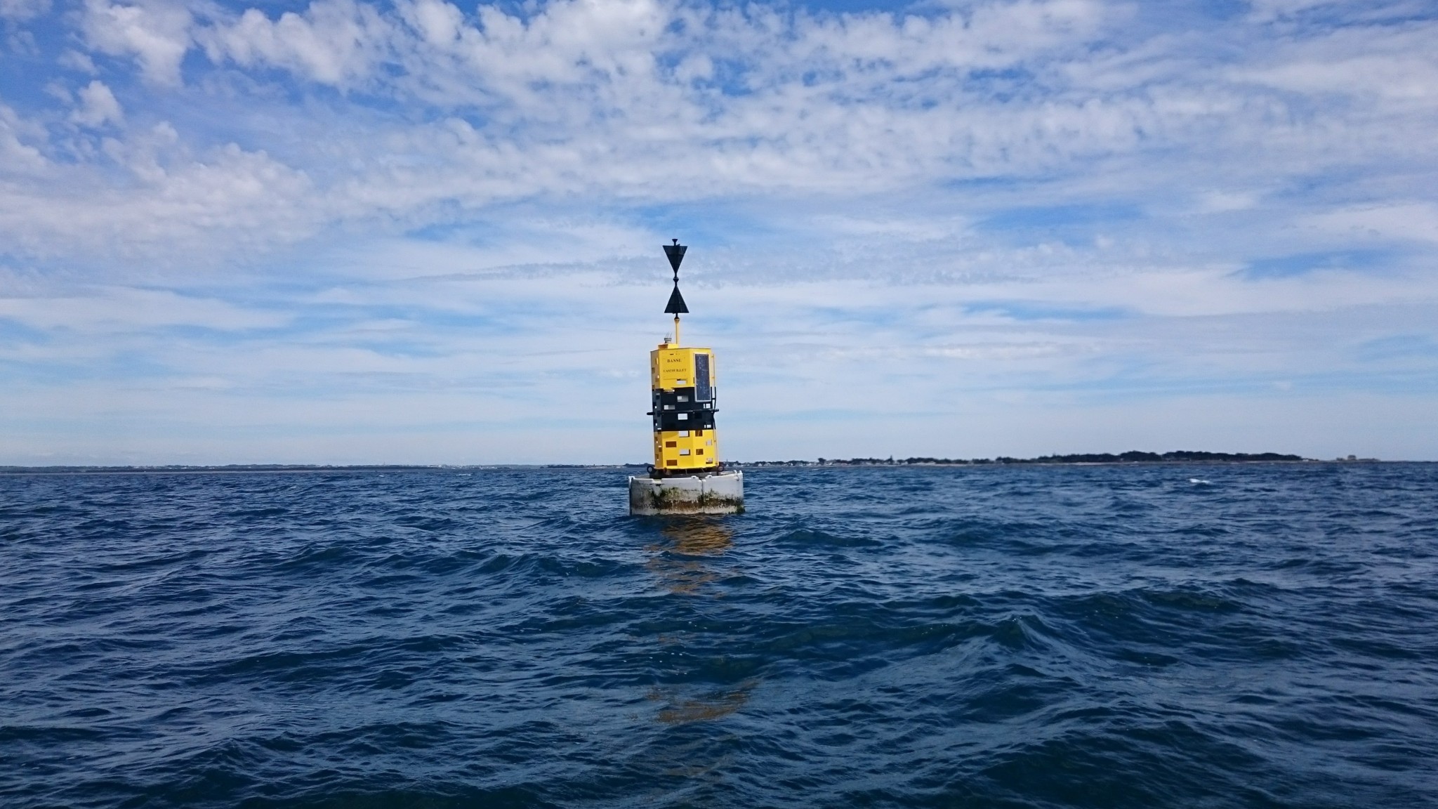 On quitte Dumet avec un vent franchement établi, cap plein sud sur un bord de travers qui décoiffe. On passe la pointe du Croisic le temps de le dire. On va chercher la cardinale « Basse Castouillet » pour lui tourner autour du bon côté, on a de l’eau mais si je peux rester un peu plus longtemps sur ce bord, je ne m’en prive pas. Ça marche !