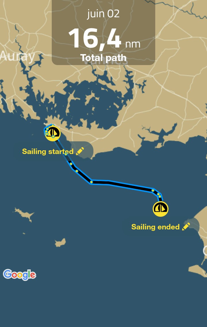 34,5 milles en 9h de temps, mouillage et déjeuner compris.