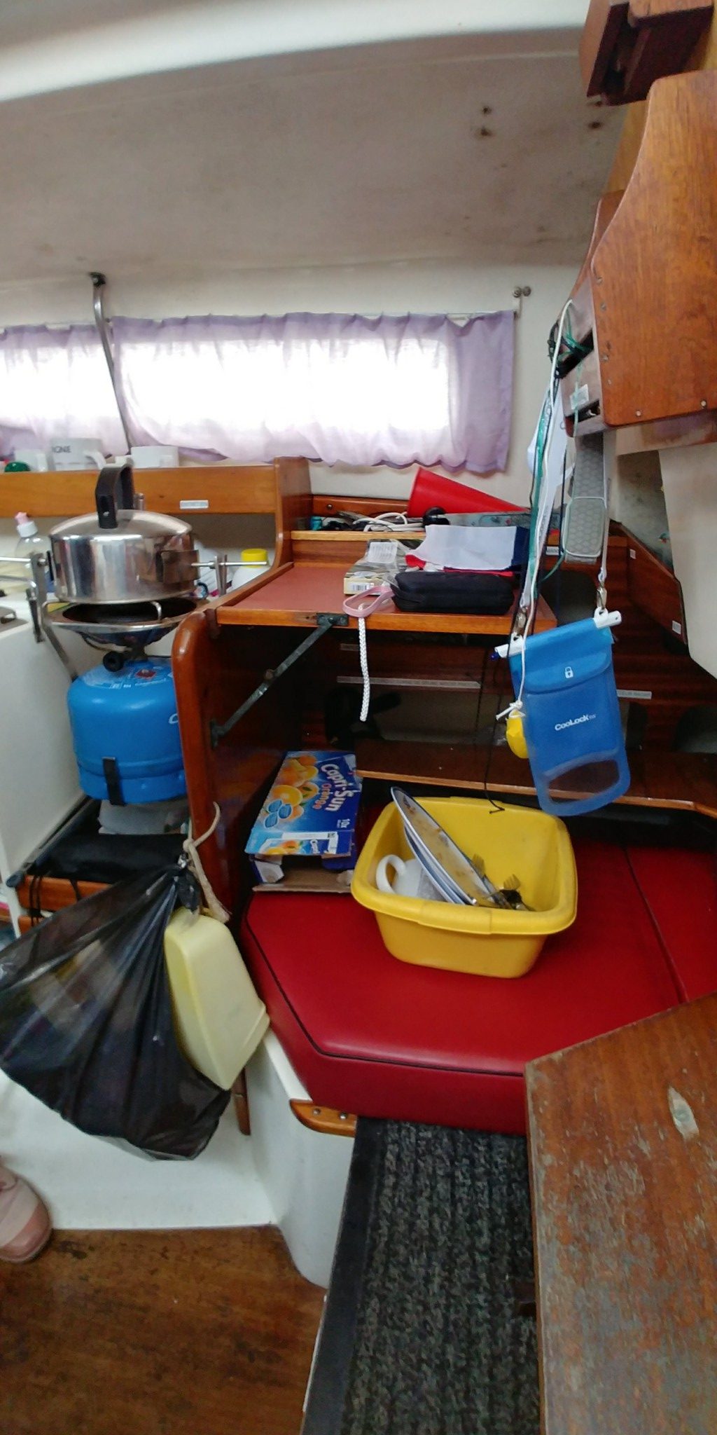 Pendant ce temps, on a passé une petite journée en famille en janvier pour un piquenique sur l’eau bien frais et légèrement humide. J’ai porté le moteur en révision qui m’a été rendu il y a deux semaines scruté de fond en comble et plein de belle graisse bleue qui tâche tous les pantalons qui s’en approchent. Moteur dont j’ai refait l’antifouling la semaine suivante. Mes voiles étaient stockées dans notre chambre, et j’ai passé à l’adoucissant mes écoutes et tous les bouts que j’ai pu démonter (l’an prochain on s’occupera des drisses). J’ai aussi mis à jour ma station de nav avec la dernière version d’OpenPlotter qui désormais se met à jour automatiquement sans devoir tout réinstaller. Et puis j’avais mis en charge ma batterie qui montrait quelques signes de faiblesse en fin de saison.