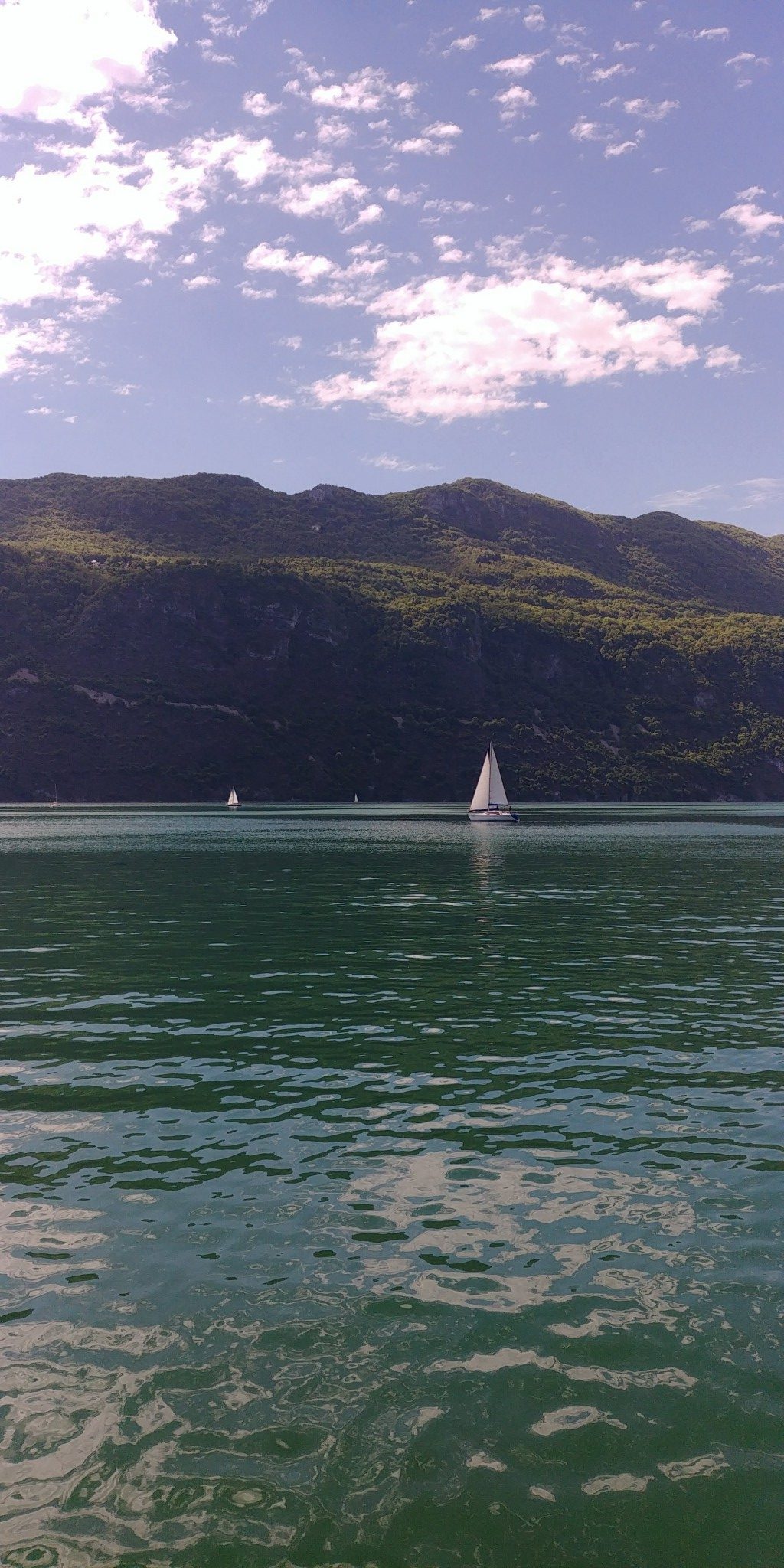 On remonte jusqu’au 27 avril, pas pour naviguer, mais avec un petit évènement nautique tout de même :) Ce jour là, on se rend avec un collègue à Aix les Bains en Savoie pour rendre visite à des clients. En sortant de rendez-vous on a un peu d’avance, qu’on décide de passer sur les bords du lac du Bourget. Je vois à l’entrée du port un bateau qui ressemble quand même beaucoup à un Edel 4. Et je décide d’aller à la rencontre de son propriétaire. Rencontre très sympathique, je discuterai avec une femme qui vient juste de remettre son bateau à l’eau et qui, étant donné le temps a décidé de ne pas rentrer trop directement au ponton. Son Edel est de 72 et on a le même point de vue sur le bateau, ses forces et faiblesses. Elle doit faire la tall ship race sur le Belem cette année, joli programme ! Sympathique rencontre !