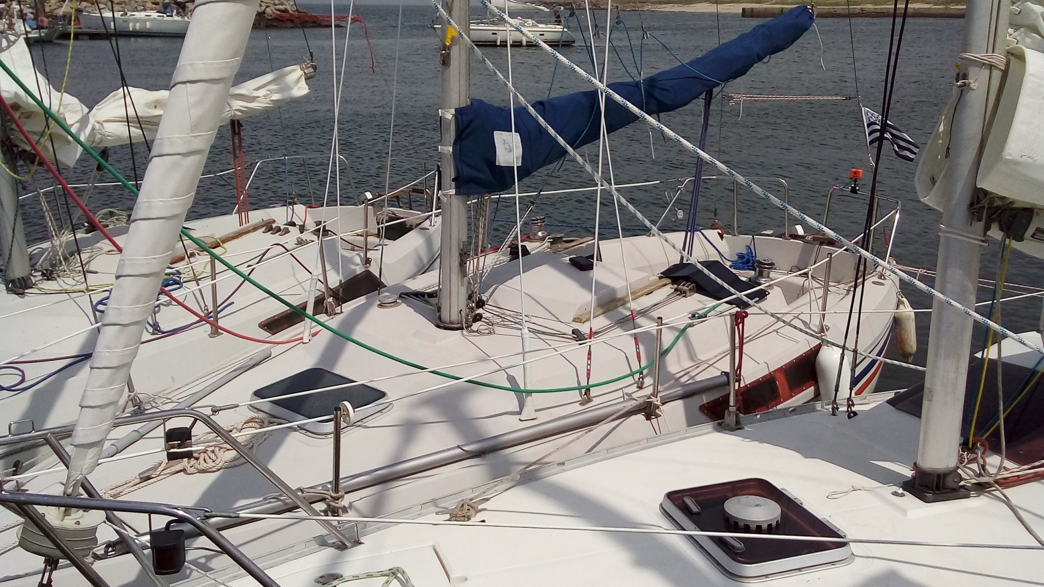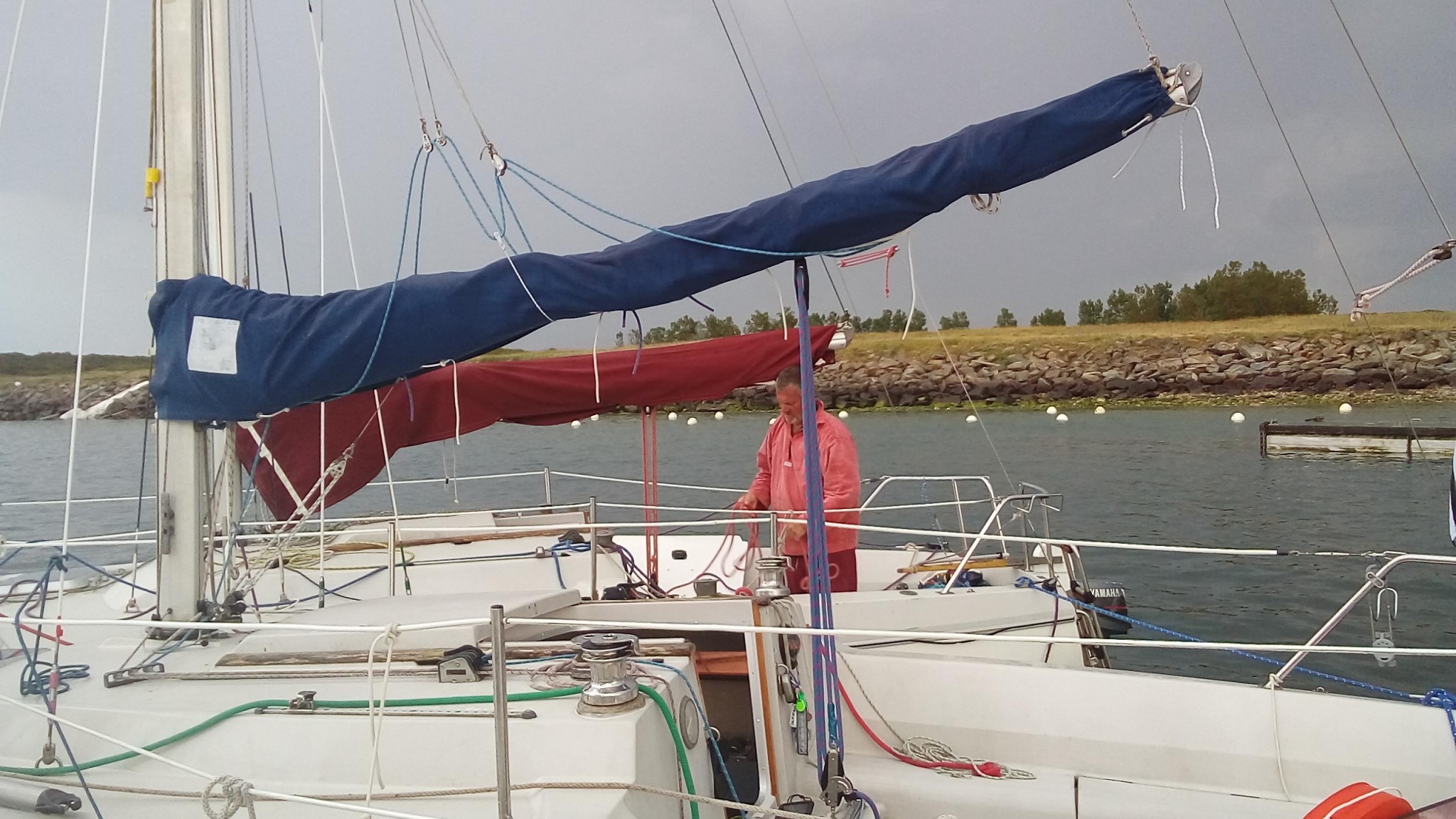 On refera un passage à terre, l’occasion de quelques courses au moment où les magasins de l’île ouvrent et d’une terrasse avant que l’orage ne nous rejoigne pour quelques minutes humides.