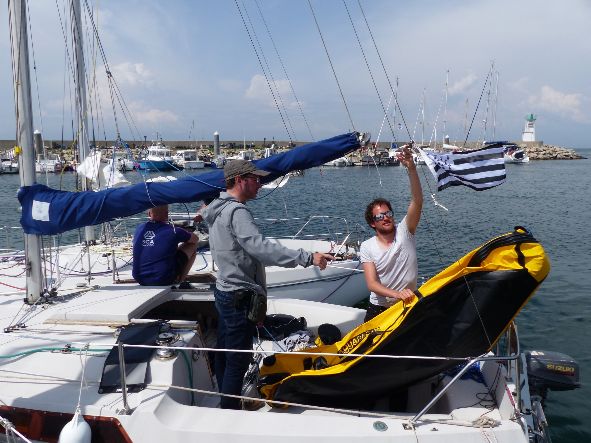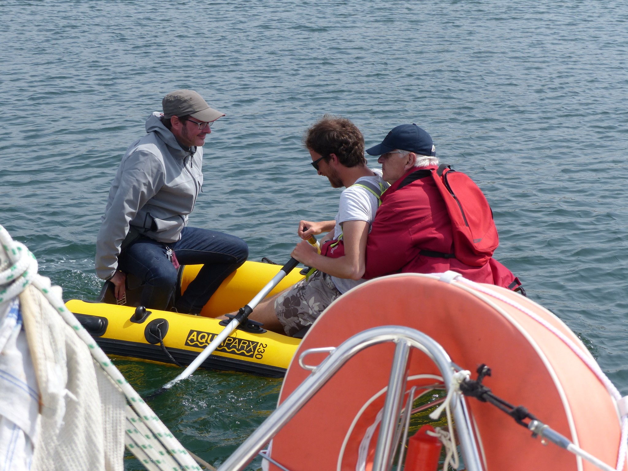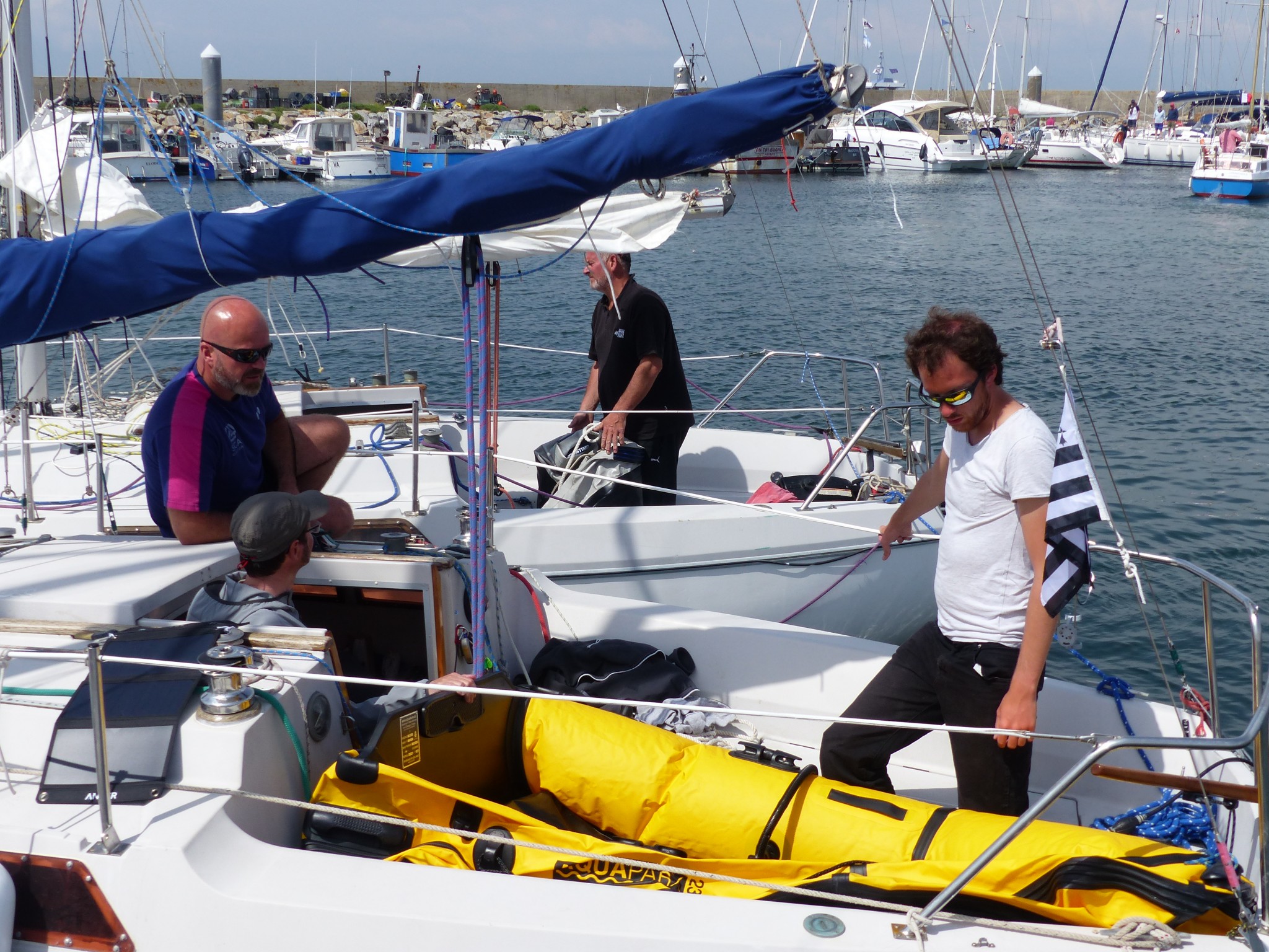 On s’amarre à la première tonne, tandis que les autres brios nous rejoignent l’un après l’autre. Lionel se présente à moi, c’est qu’avec la barbe en moins, je suis sans doute méconnaissable :) Et on passe à l’apéro (premier du jour) dans le cockpit de Calimero.