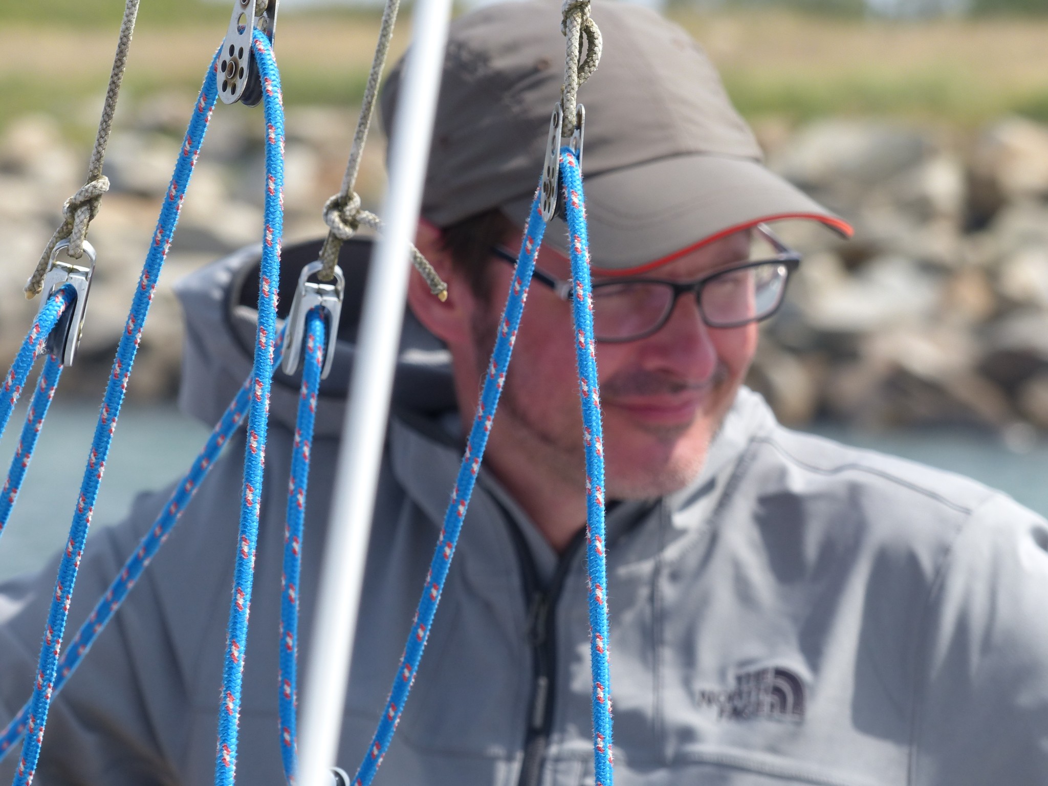 Le vent reste relativement stable sur tout le trajet, quelques légères rafales, quelques molles, mais Pignouf fera la route à une moyenne de 3,3 noeuds, ce qui – étant donné les conditions – est tout à fait honorable (même bien plus que ça) ! Quand je pense que l’an dernier je fermais systématiquement le convoi, et que c’étaient les autres qui revenaient me chercher… ça s’annonce assez glorieux cette année, limite gênant !