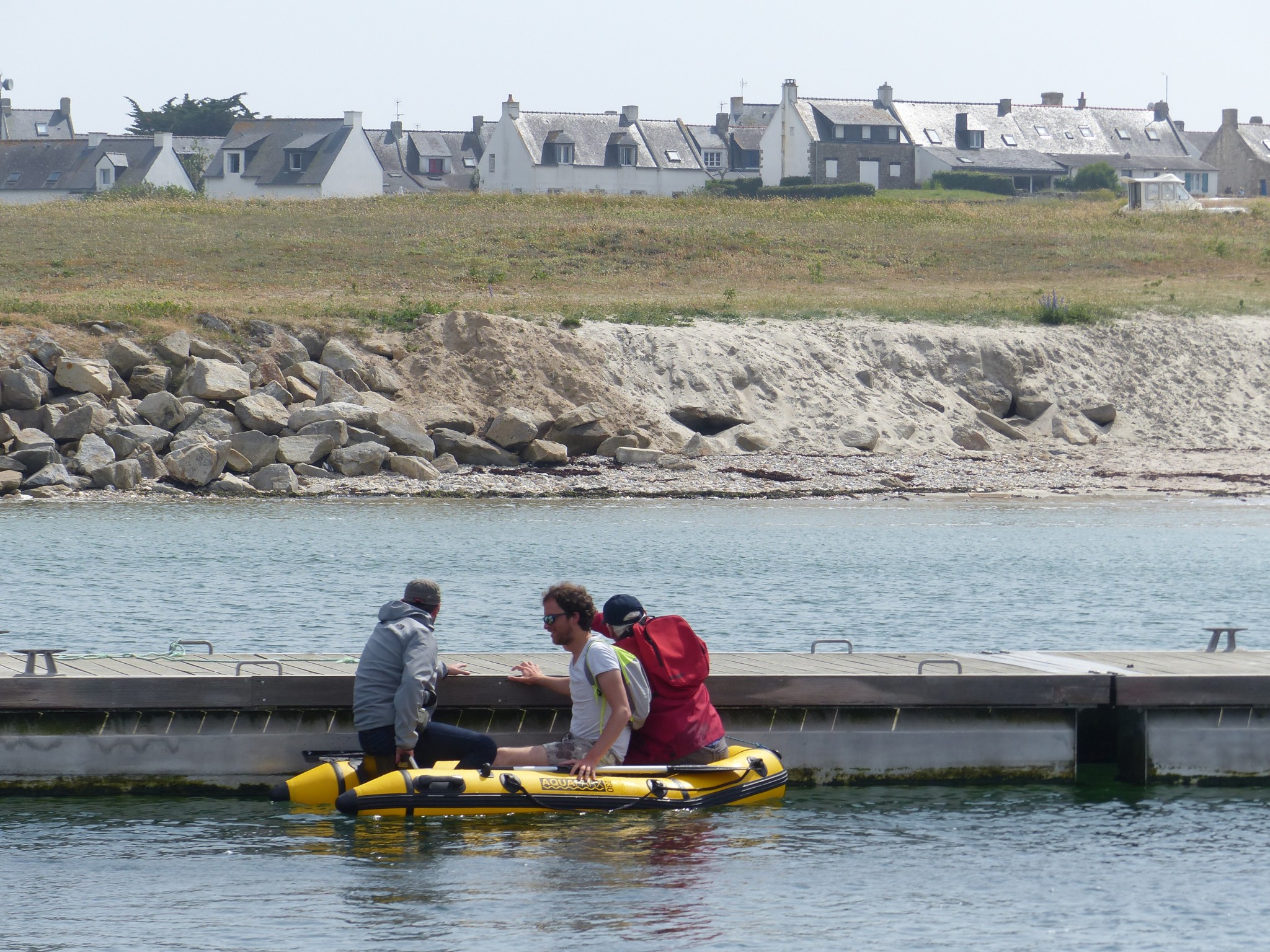 Puis les annexes se gonflent et on rejoint le ponton, qui à marée haute, ne rejoint pas totalement la plage. C’est un peu bête, il ne manque pas grand chose, mais suffisamment pour aller rechercher l’annexe pour faire les quelques décimètres qui nous séparent de la plage sans se mouiller. On restera volontairement élusif sur un petit évènement qui se produit alors, de même qu’on ne s’étendra pas sur ce qui nous fera revenir plus tôt que prévu au ponton. Disons que les années se suivent, et se ressemblent assez curieusement (d’où le titre de ce billet) !