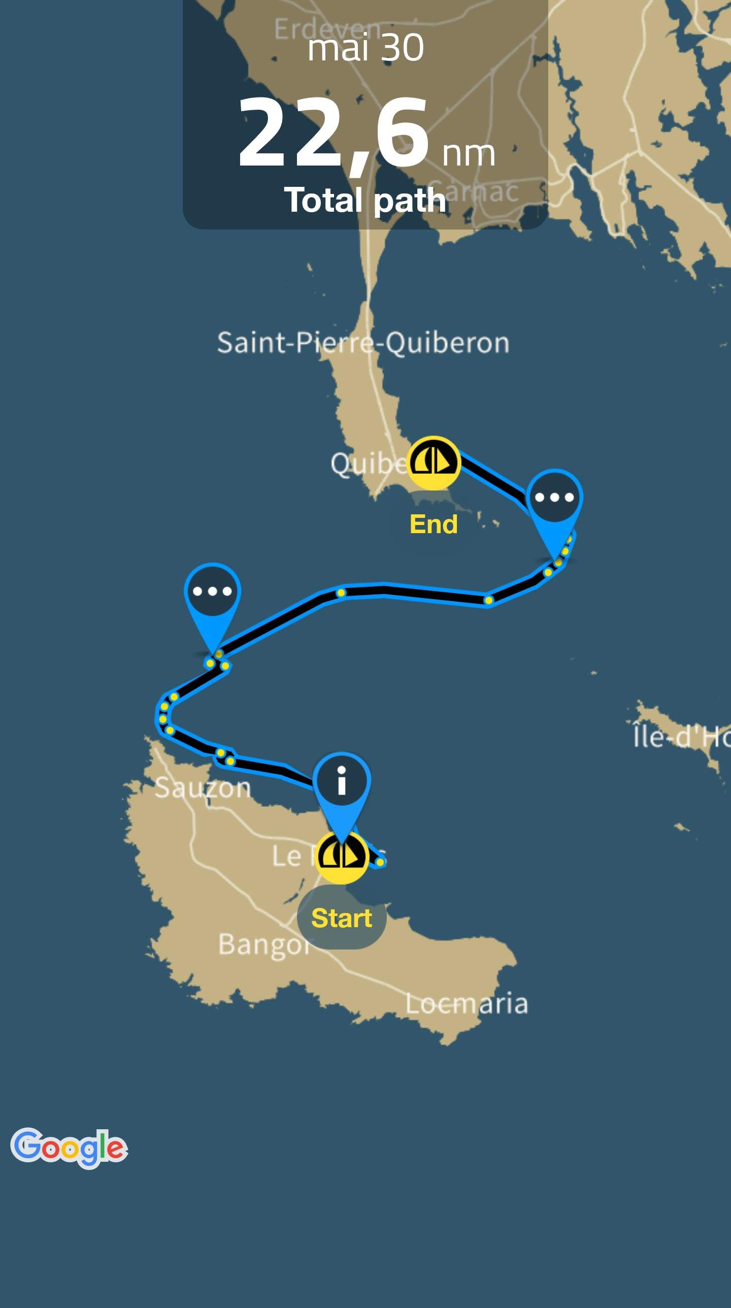 13,8 milles parcourus, 4,2 noeuds de moyenne (fond)