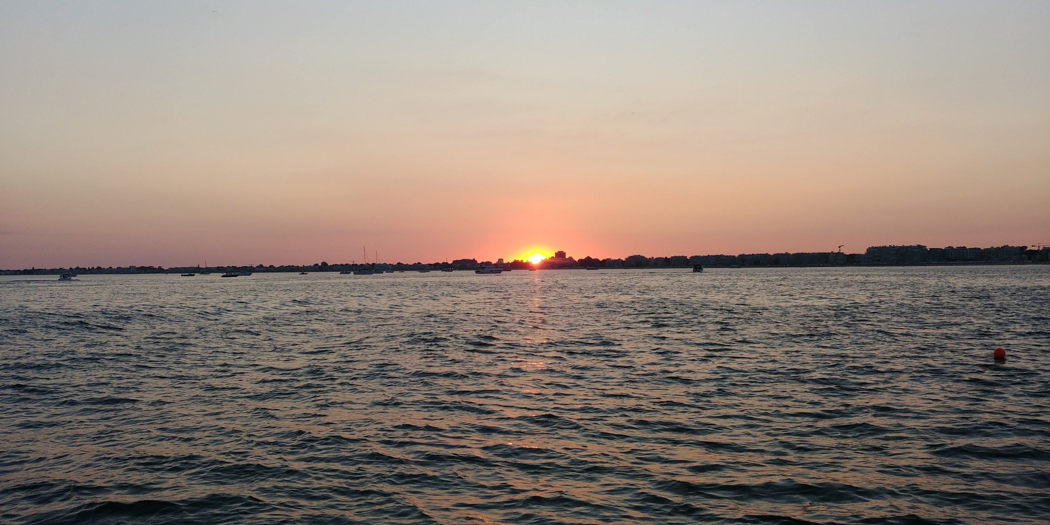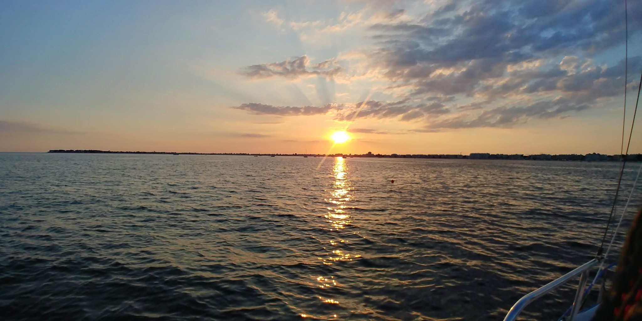 On ne se laisse pas abattre, on met les gaz et on envoie même le génois sous ce vent bien frais. Et il y a du monde partout ! Tout le monde à fond les manettes ! Et tout le monde n’a pas ses feux de nav ! Entre le vent et les vagues d’étraves sur lesquelles on surfe sans ménagement, le bateau n’est pas très simple à mener, fait quelques embardées mêmes (j’ai du 8 noeuds sur la trace, et je veux bien le croire)… rien d’irrattrapable, mais ça donne un peu l’impression en vélo de rouler le long d’un tuyau d’arrosage : faut rester ferme sur le guidon / la barre. Et plus on avance, plus on est nombreux, plus on se concentre, plus on ralenti vers ce qui apparaît comme être l’entrée du port…